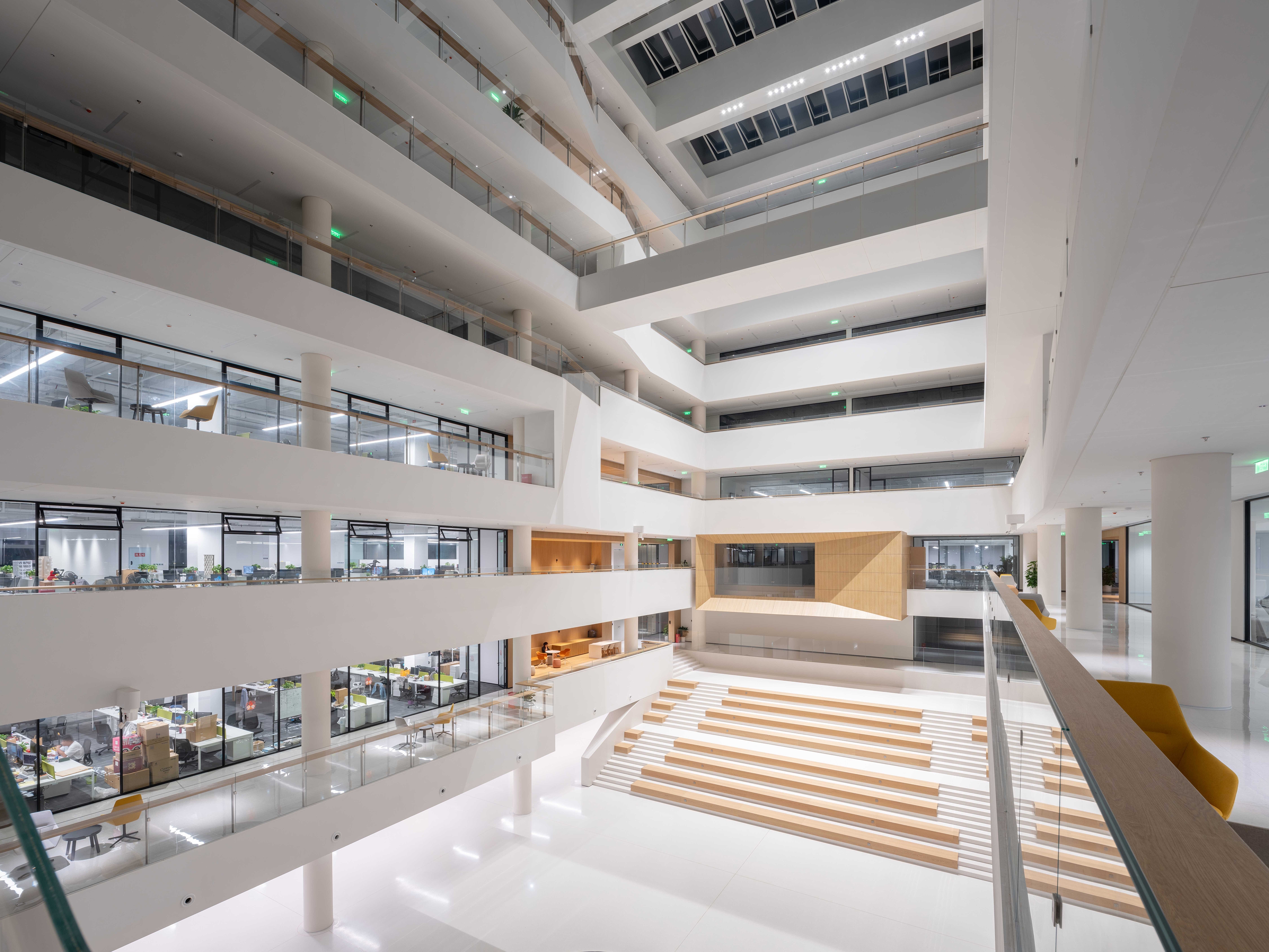 Sustainability ApproachAn intelligent multi-protocol system (KNX/DALI/0-10V/DMX512/motion sensors) dynamically manages lighting across spaces. Real-time adjustments optimize brightness and color temperature based on seasonal daylight patterns, peak occupancy periods, holiday schedules, exhibition needs, and VIP receptions. The reception lobby employs integrated DALI+DMX512 protocols to switch between seasonal operating modes, while public zones and offices combine automated timing with infrared motion detection for localized control. This 365-day adaptive strategy enables “lighting on demand,” eliminating unnecessary energy use. Centralized remote management via the building-wide control platform significantly reduces operational burdens while maximizing conservation.Facility managers continuously optimize system parameters, enhancing security and reducing costs.