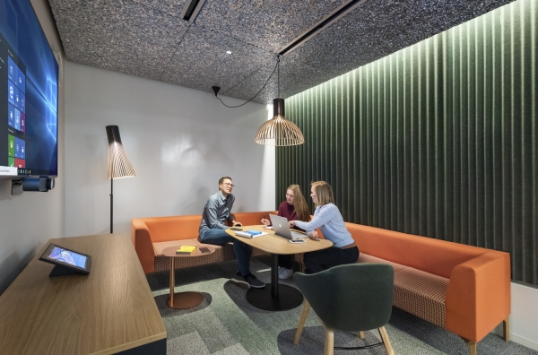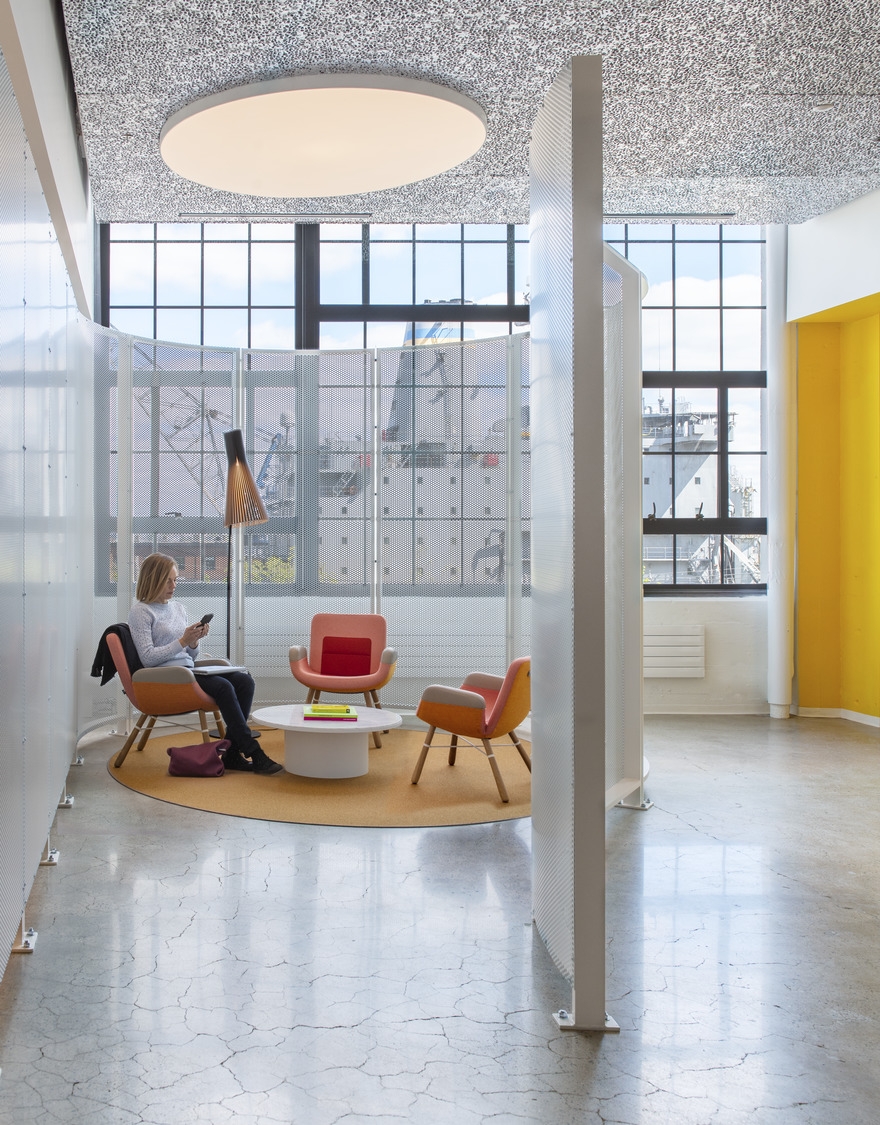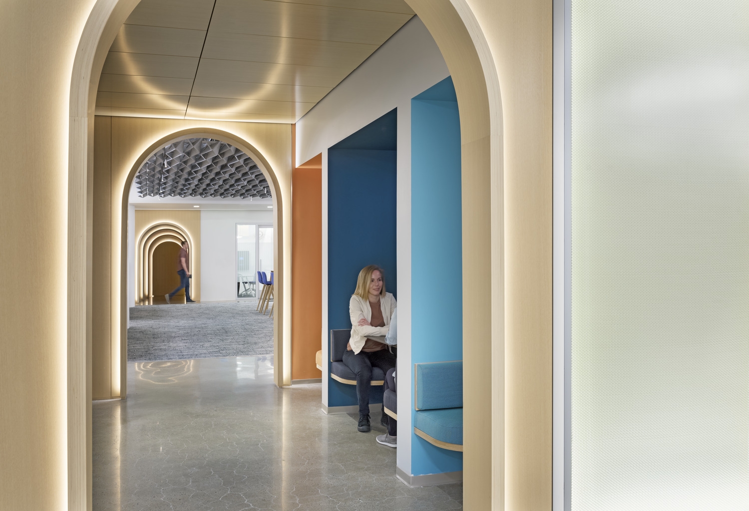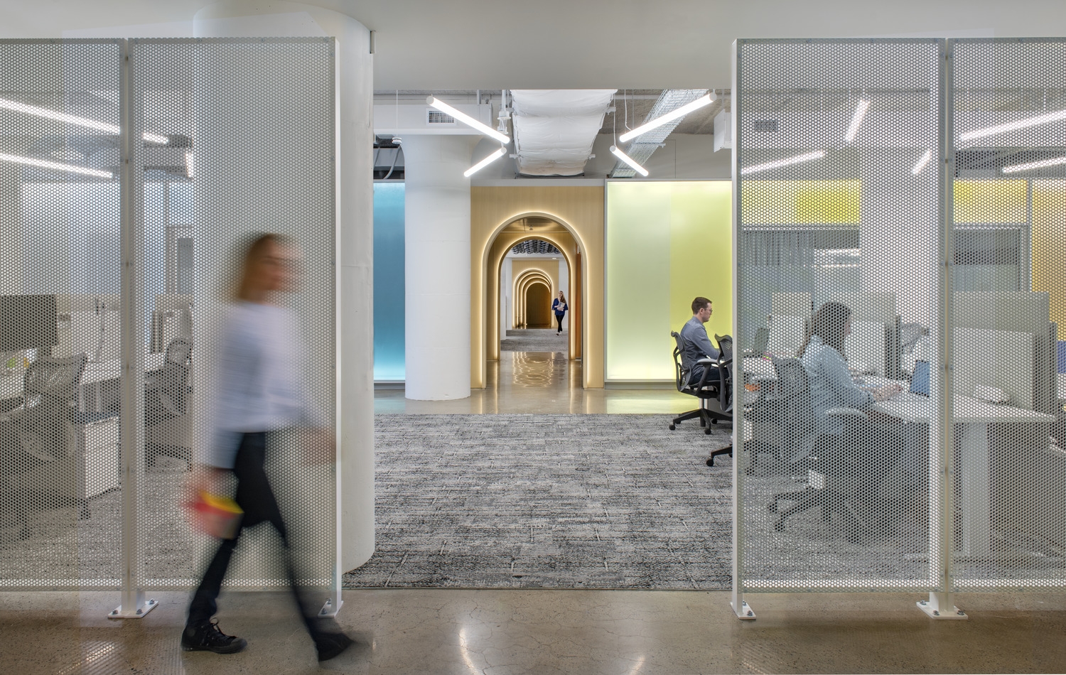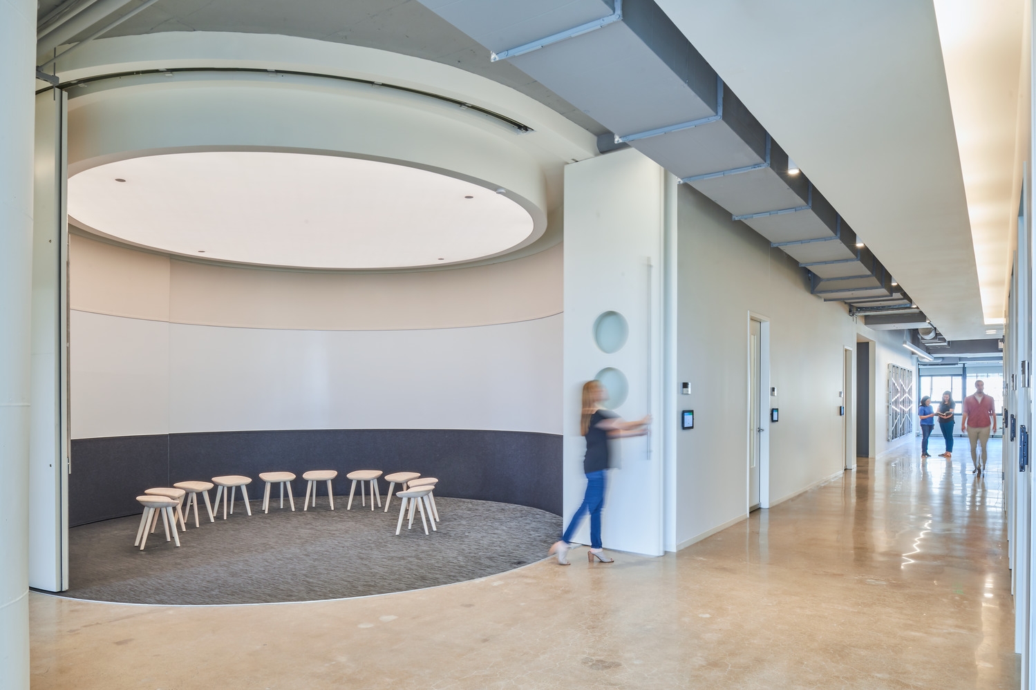 Entry DescriptionMeant as a space for public interface, Autodesk’s BUILD space includes multiple areas for congregation, collaboration, and work. An espresso bar and “Thinking Studio” form the entry, featuring a 55’ long direct-indirect ‘pill’ shaped pendant, a color-changing cove, and articulated pendant uplights to illuminate an expanded metal mesh ceiling. Six additional meeting spaces in the core all employ foamed aluminum ceilings, with unique lighting for each space, save for one room – the cylindrical “Kiva,” which features a luminous ceiling employing programmable, tunable white nodes floating just above the stretched fabric.The project includes two large open office spaces; In one, linear fixtures arranged in tandem with a clever baffle design to deliver a visually dynamic, yet comfortable luminous environment. Connection to the west wing office space is created through glowing arches, leading to a luminous core wall of backlit Panelite, and a herringbone pattern of glowing tubes.