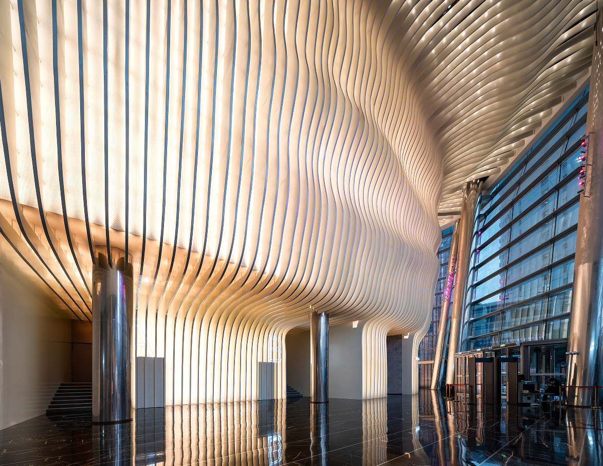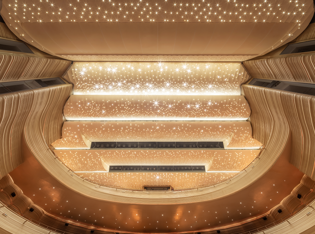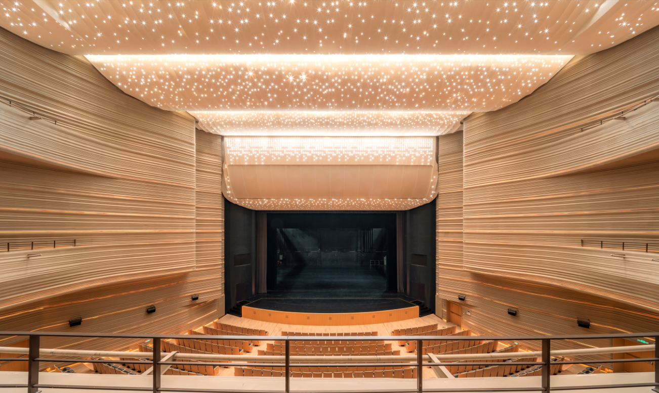 Entry DescriptionThe AIA Grand Theatre, situated in Shanghai Hongkou’s North Bund area — known as the "Oriental Broadway" — enjoys an exceptional location adjacent to the Huangpu River. As a contemporary cultural venue designed to meet modern demands, it combines multiple functions, including entertainment, art appreciation, cultural retail, exhibitions, and educational programs. Beyond offering high-quality theatrical performances, the theatre connects the city and invites audiences to savor leisure time beyond the performances. Inspired by the design concept of a "shimmering, translucent jewelry box," visitors experience a sense of discovery as they gradually reveal the treasures within upon stepping inside.The theatre comprises three above-ground levels and two basement levels, with the main entrance located on the ground floor. The lobby, themed around "The Growth Imprint of a Shell," features triple-height striated decorative surfaces that emulate the organic patterns of a shell's exterior. Integrated lighting creates a soft pearlescent glow. The auditorium serves as the theatre’s striking centerpiece. When audiences step inside, it evokes the experience of gradually unveiling treasures within a jewelry box.