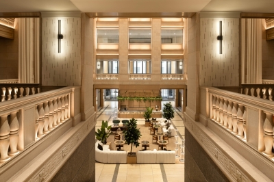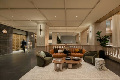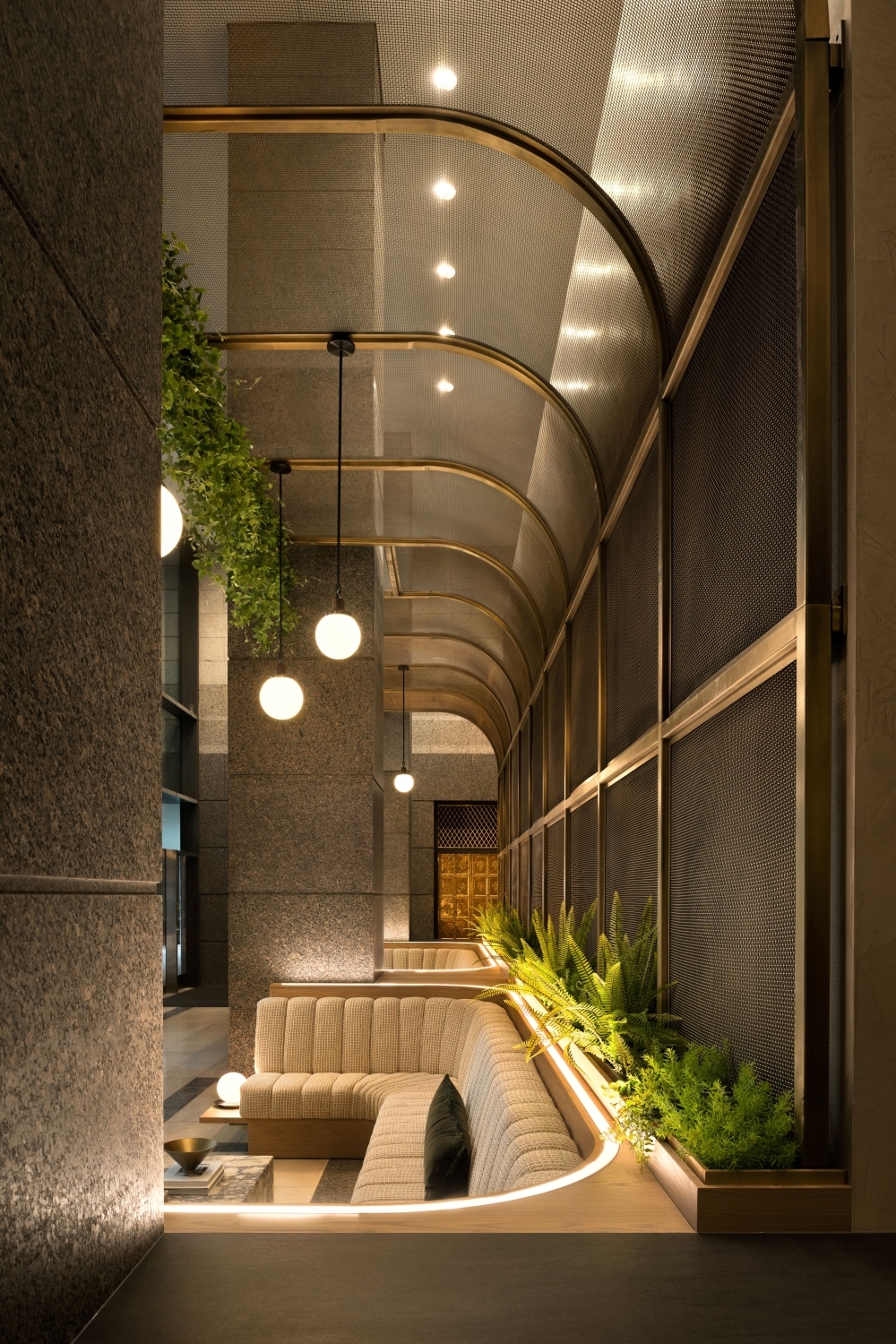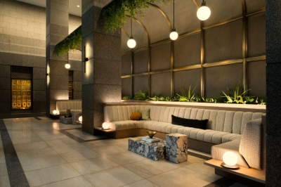 Entry DescriptionLocated near Chicago's Riverwalk, this lobby redesign transforms an underutilized space into an avant-garde hotel-inspired amenity. Atmospheric lighting plays a pivotal role, blending warm 2700K illumination with post-modern and historic architecture to evoke European hospitality.