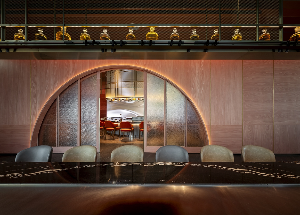 “Zhi Yun”, meaning “Aged through time, essence refined,” is a teppanyaki dining space nestled high above the city. Rooted in Eastern philosophy and tranquility, the brand blends contemporary aesthetics to craft a sensory journey rich in ritual. From the moment the elevator doors open, every detail—from music, scent, utensils, and uniforms to the interplay of light and shadow—unfolds to shape the rhythm of the space. Lighting plays a pivotal role in this experience, guided by the design concept: “Flavors of time, slowly brewed and illuminated.” It leads guests into an immersive narrative where taste and time intertwine through light.