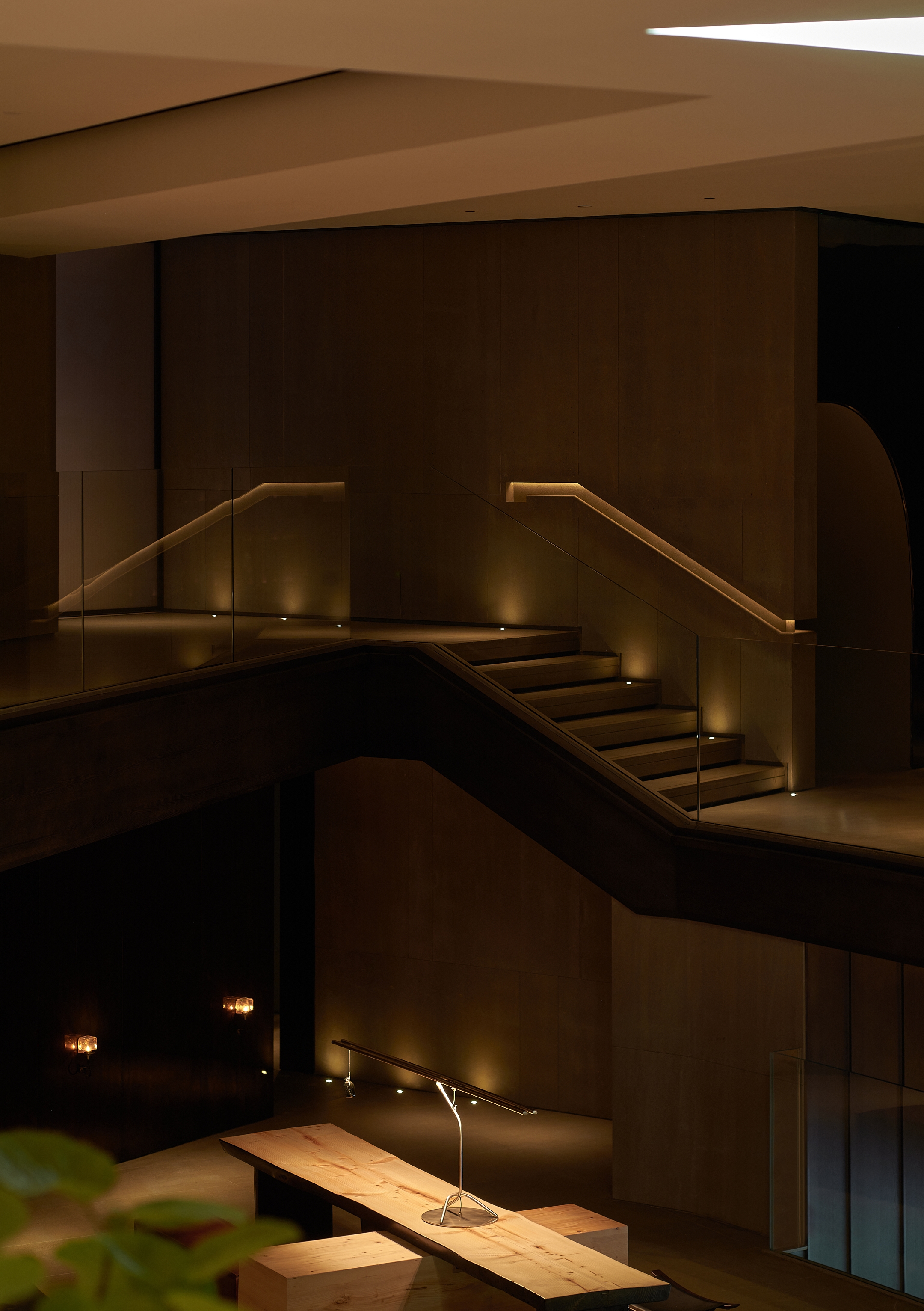 Sustainability ApproachThe design makes use of strategic and minimal lighting, ensuring that only essential lighting fixtures are used and placed in ways that amplify the space without excessive energy consumption. The use of recessed downlights with anti-glare louvers and dimmed lighting further suggests an energy-efficient approach to minimizing power usage while maintaining the atmospheric effect.