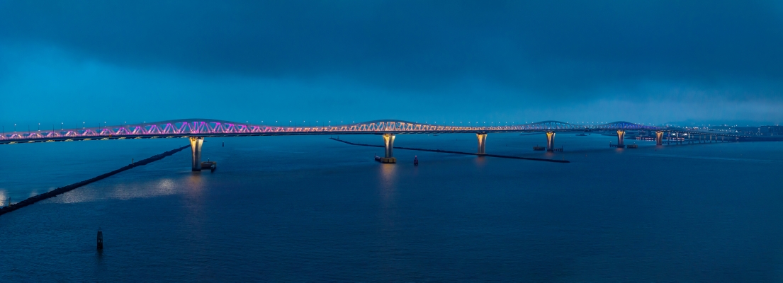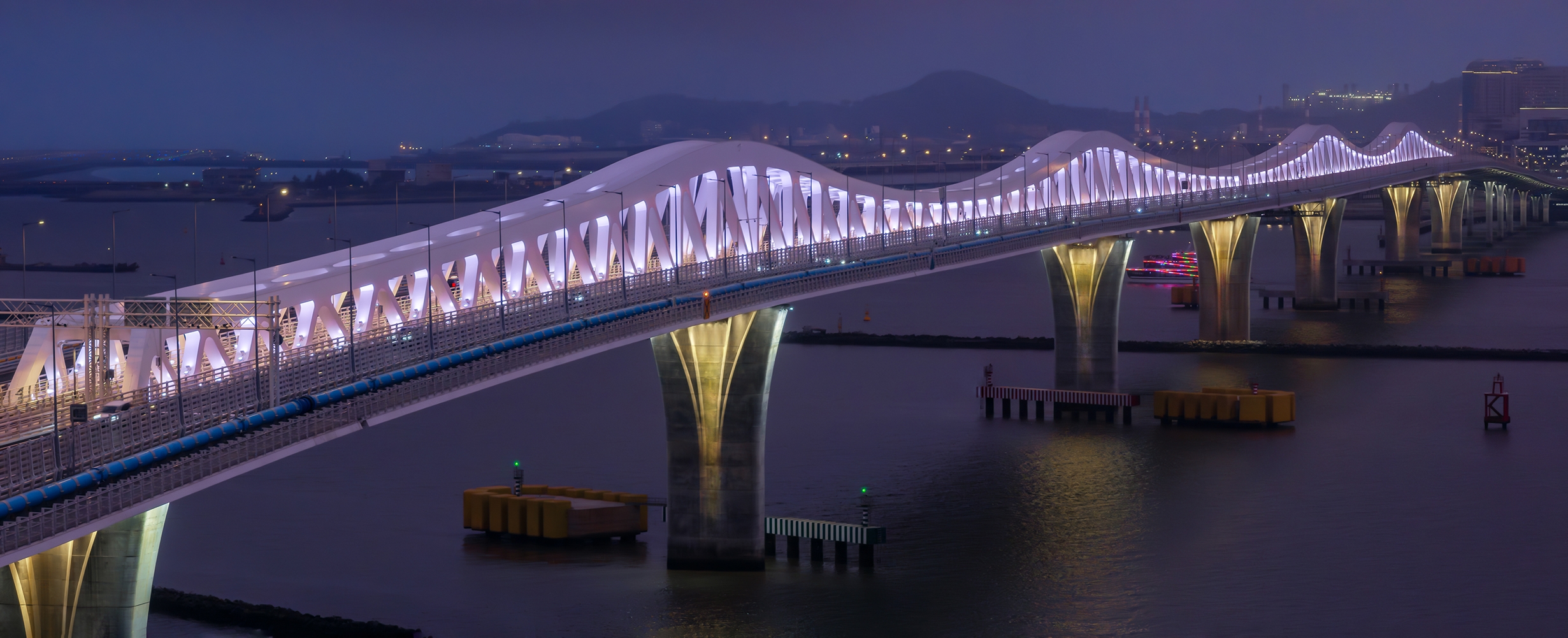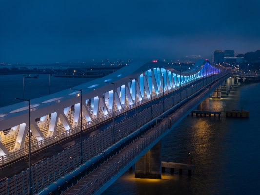 The nightscape design seamlessly blends with nature, weaving in elements of humanistic care and social responsibility. It transforms the bridge into a symbol of compassion, a luminous connection between hearts. The lighting adapts to mirror the rhythmic pulse of the tides, evoking the ebb and flow of life, while using minimal power and meticulously calibrated light distribution to create an elegant, tranquil ambiance akin to a moonlit sea.