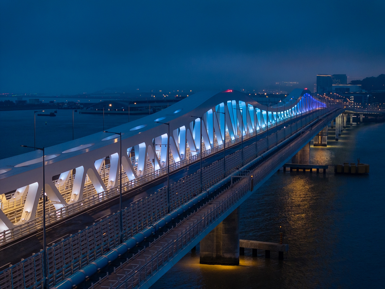 Sustainability ApproachLighting is a symbol of the prosperity of Macau, one of the world’s largest gambling hubs. Located within air traffic control and shipping lanes, the bridge faces strict restrictions on light direction, intensity, and glare, requiring a careful balance between visual impact, safety, and energy efficiency. The design follows rigorous energy-saving and environmental standards. Using modular prefabrication and overhead hoisting during construction, the project minimized disruption to water areas and ecosystems. Eye-tracking data analysis led to the reduction of 2,508 fixtures, cutting total power consumption by 32%. In six lighting modes, the energy-saving mode uses 35kW, while the major holiday mode uses 339.1kW. The final design includes 15 types of fixtures, 2,491 units, and a total power consumption of 339.1kW.