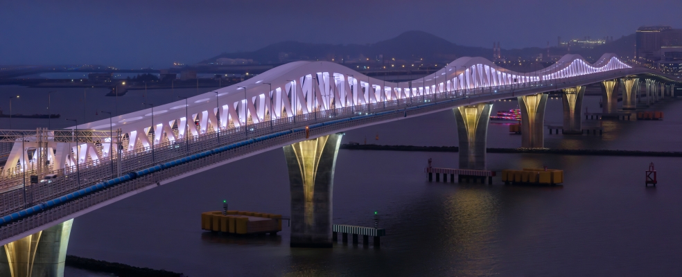 Entry DescriptionThe Macau Bridge, stretching 3.085 kilometers, gracefully links the Macau Peninsula to Taipa Island, holding the title of the world's longest inclined steel truss-steel box composite continuous beam bridge. Its sleek, wave-like white surface draws inspiration from the bay that Macau gazes upon.