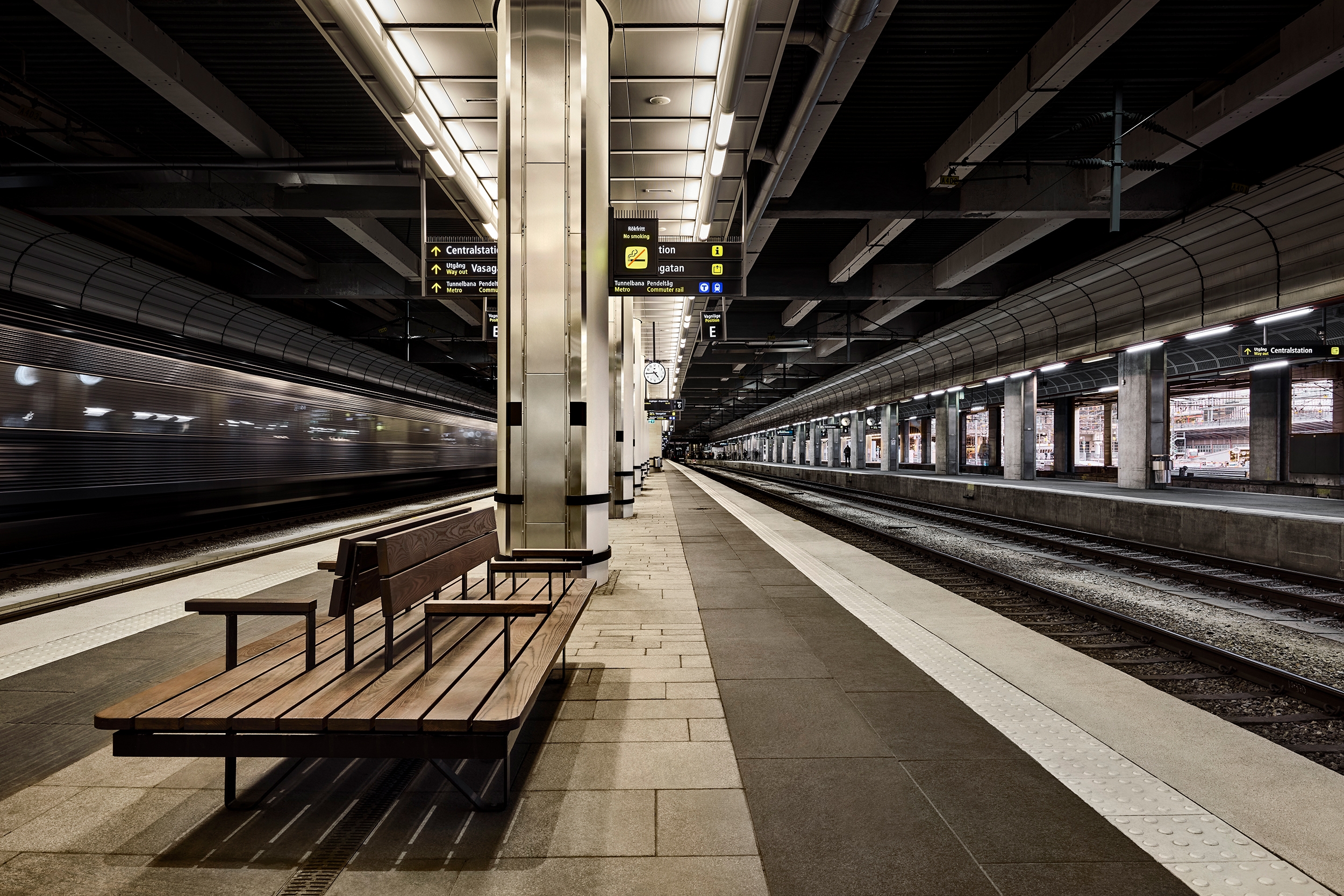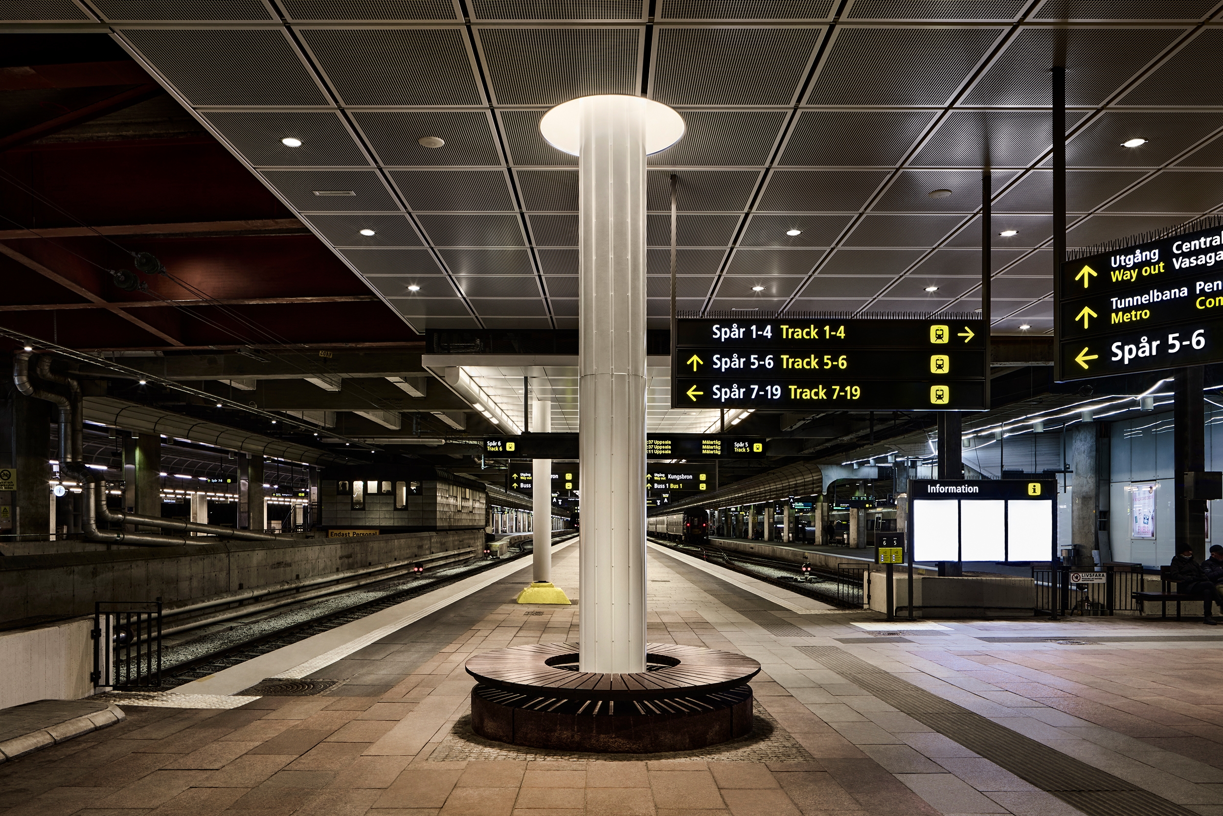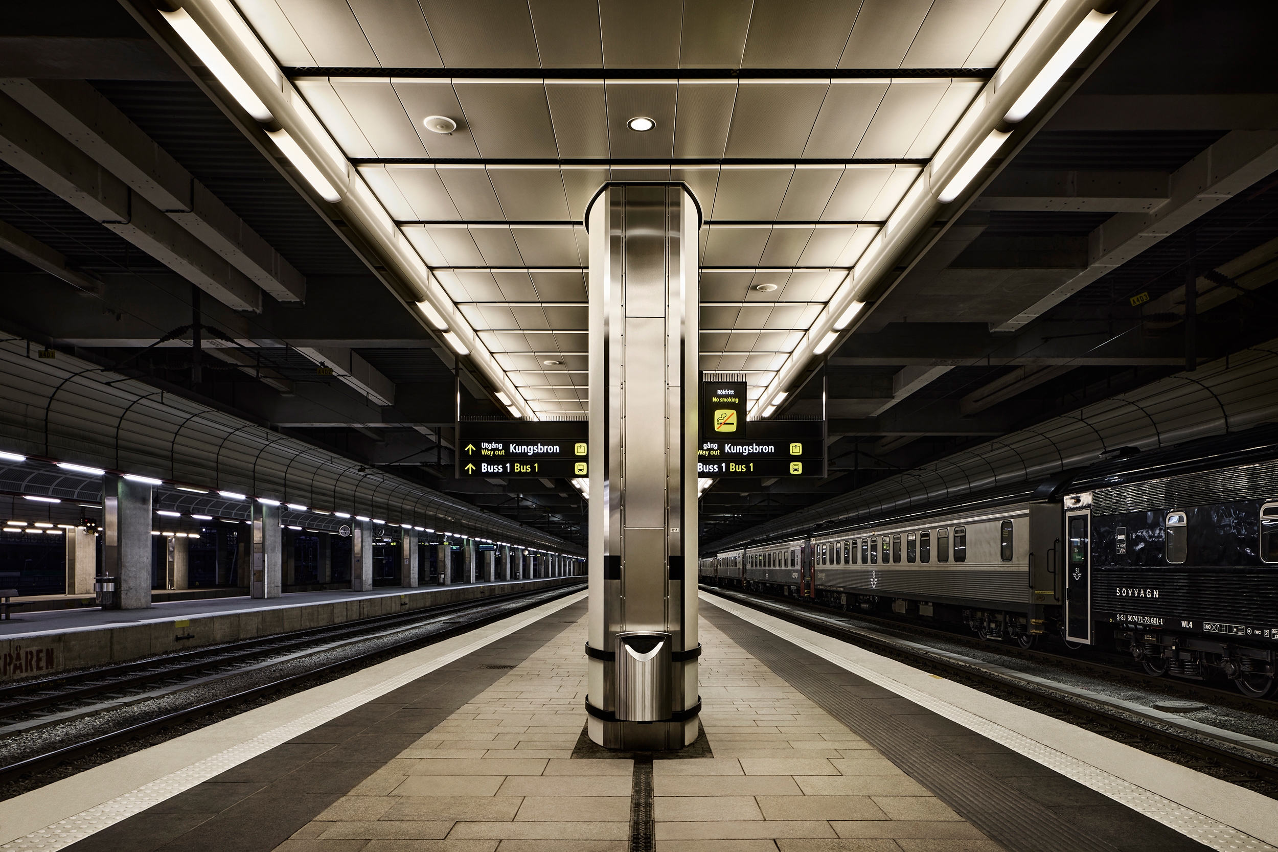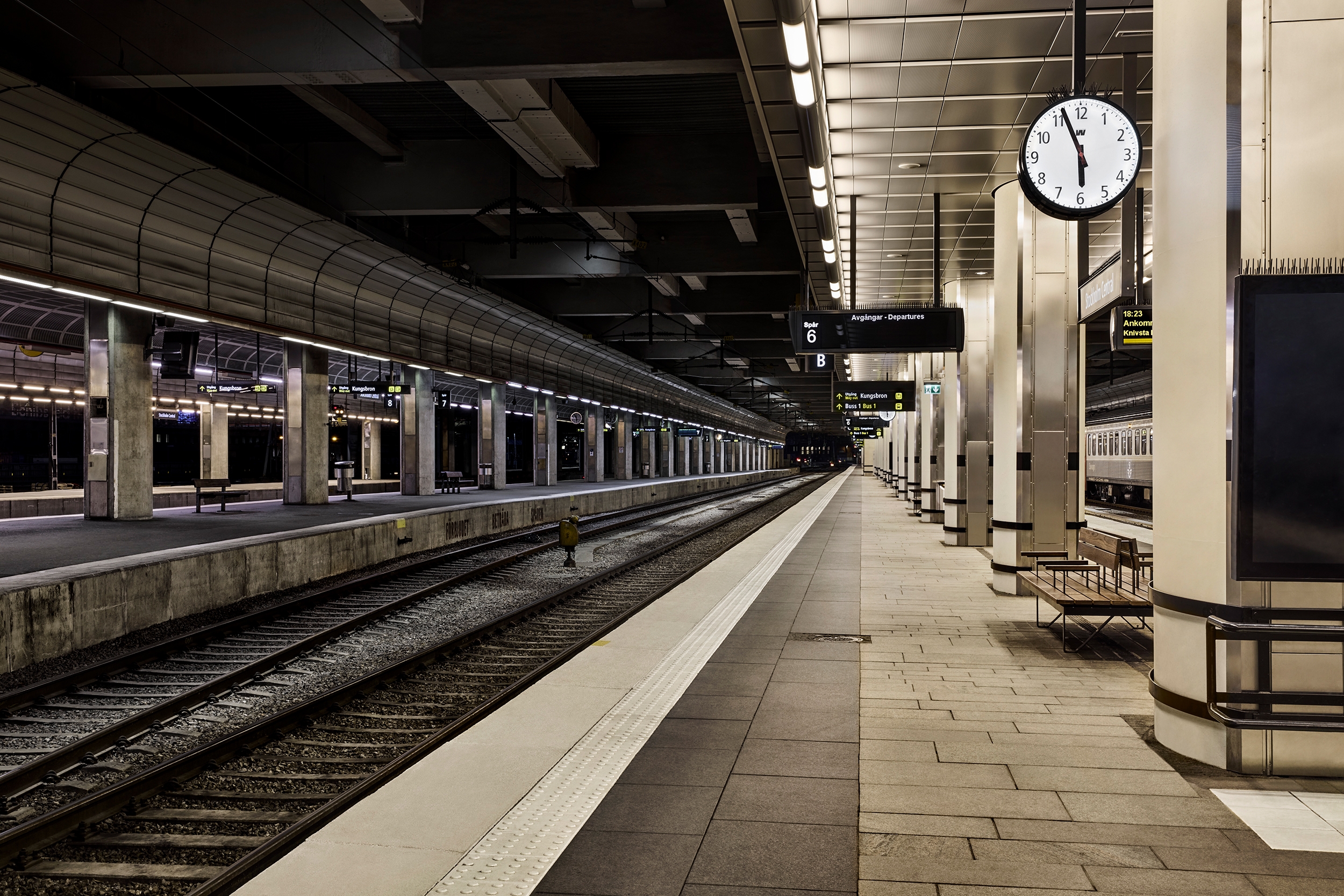 Entry DescriptionAs part of the intentions to revitalize Stockholm Central Station into a more welcoming and elegant gateway to the capital, a lighting strategy was developed that would add functionality and architectural quality to the station’s platforms.