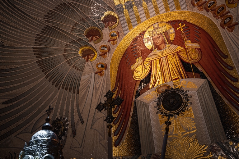 The lighting is implemented on three levels. Diffused light evenly illuminates the icons and frescoes, creating a cohesive visual effect. Accent lighting highlights the details of the paintings, enhancing their expressiveness. Low-power, non-optical luminaires create delicate glimmers, accentuating the relief and texture of the enamel, highlighting its gold and glass elements.