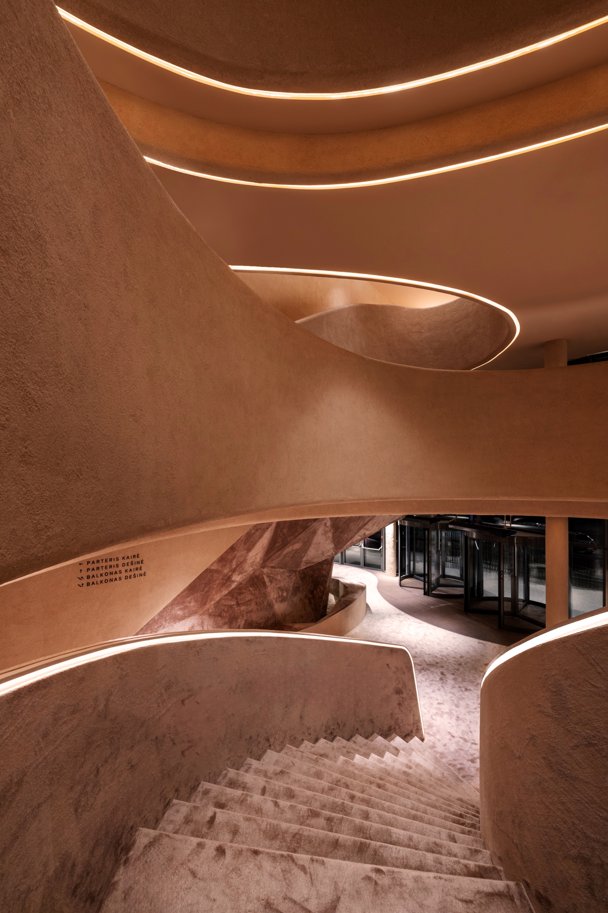 Entry DescriptionKlaipeda State Music Theater is a dialogue between heritage and contemporary architecture, where the historic building and a newly built volume merge into one fluid whole.Architects envisioned the renovation not as a conventional theater interior, but as an inviting, warm space that softens the boundary between public and artistic experience.The old theater was carefully restored and now opens into the new structure, creating a seamless journey for visitors.The new main hall stands out with unique hand-crafted clay walls, whose texture and rhythm evoke the movement of sea waves – a subtle reference to Klaipeda’s coastal identity.This tactile surface not only carries symbolic meaning but also offers a natural, earthy presence rarely seen in performance spaces.Warm tones and carpet-like textures climbing from floor to wall create an intimate atmosphere, in contrast to traditional theater formality.Lighting design plays a central role:in the main hall, spotlights graze the clay walls, bringing their wave-like texture to life with reflected light. In the atrium, cove lighting emphasizes curved architectural elements, while downlights with varied optics in corridors and common areas create theatrical, stage-like effects that still preserve coziness.A restored heritage chandelier in one atrium links past and present, becoming a luminous symbol of continuity within the renewed theater