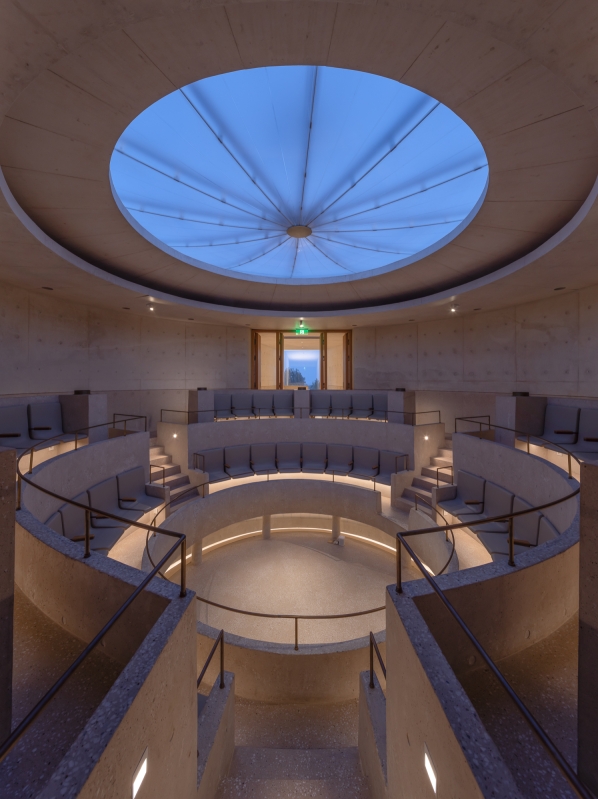 The lighting design ingeniously leverages sound propagation principles linked to "Divine Sound" to shape light paths, incorporating techniques such as light guiding, light concealment, light penetration, and light floating effect creation. Adding to this, the auditorium’s roof features a semi-transparent, liftable canopy with dual functions: it acts as an environmental regulator while serving as a floating landmark. When illuminated at night, the canopy glows as a striking visual focal point—masterfully integrating "Divine Sound", light, the auditorium itself, and the surrounding environment into a cohesive sensory experience.