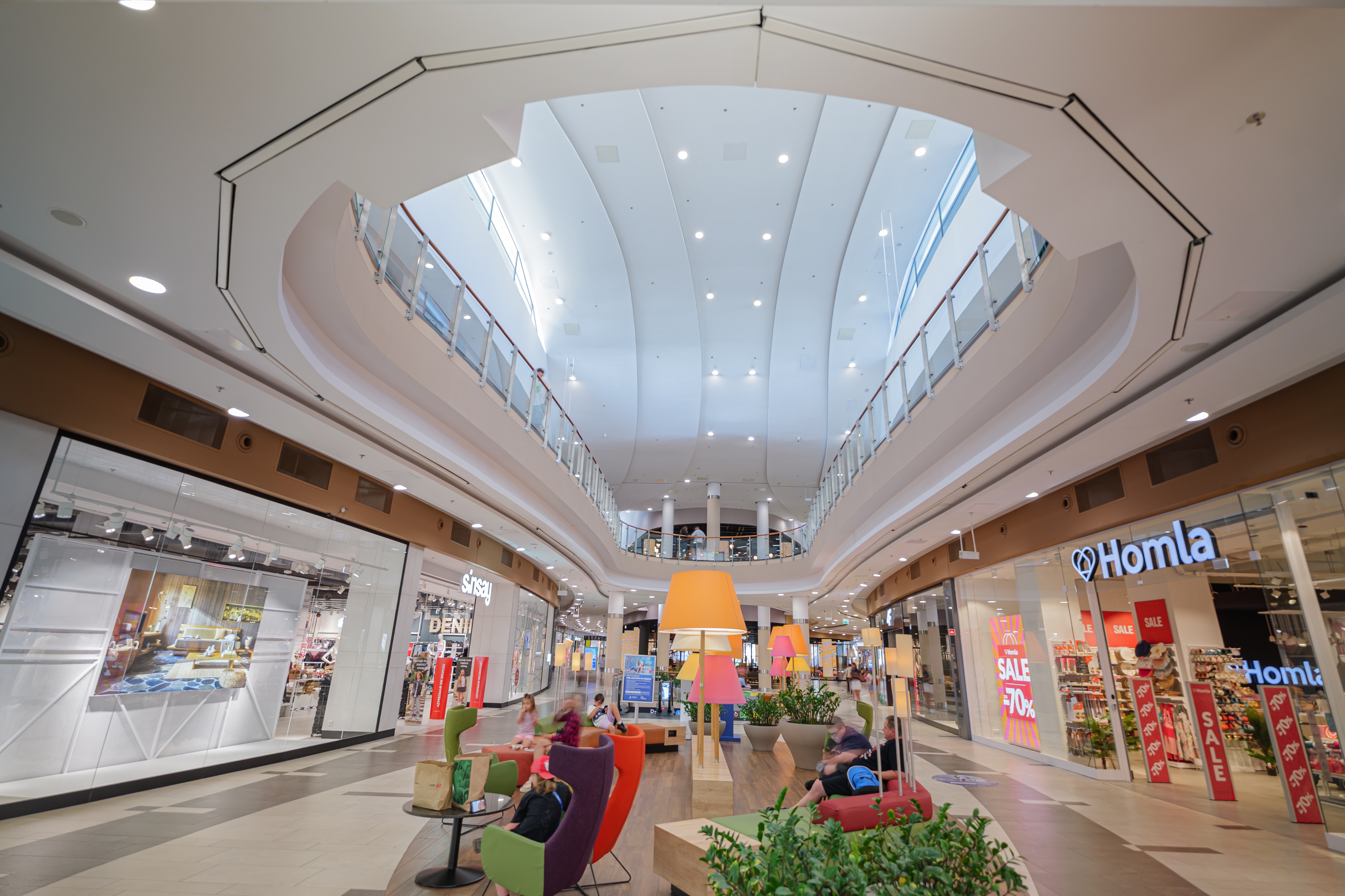 Sustainability ApproachSustainability was a driving force. By reusing existing infrastructure and retrofitting with advanced LED luminaires. The new system delivers over 60% energy savings compared to the former installation, achieved through TW-tech. combined with daylight sensors and adaptive controls. This ensures that artificial light is only used when needed and always at optimal levels. The integration of daylight-filtering foil reduces solar heat gain, lowering cooling demand and preventing excessive indoor temperatures of up to 39°C previously recorded in sun-exposed areas. This dual effect of reducing energy consumption for both lighting and air conditioning significantly lowers the building’s carbon footprint. The result is not only an improved visual and emotional quality for visitors but also a long-term sustainable solution that enhances operation efficiency for the mall