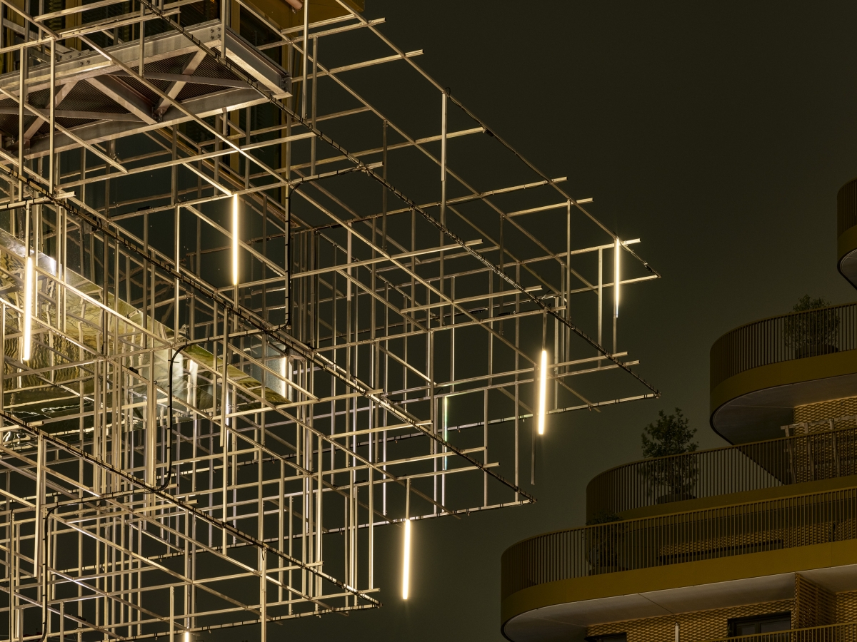 Sustainability ApproachThis project is facing two contradictory nocturnal concerns where human uses shall deal with the protection of biodiversity from lighting pollution. A calendar programming plans different illuminations according hours and seasons. Over the night, the building is switching off gradually. We suggested light spectrums taking biodiversity seasonal activities into account with a concept of reciprocity which is dividing the year in two periods : one where the biodiversity is highly protected into the darkness (biodiversity-friendly) and the other one where human enjoys its needs of artificial lights (human-friendly). Each vertical lighting bar was also angled and controlled in order to avoid intrusive reflections in dwellings. For the rest of the project, the rooftop, the stairs and the lift are litted by low and integreted sources which are limiting material and electricty consumption.