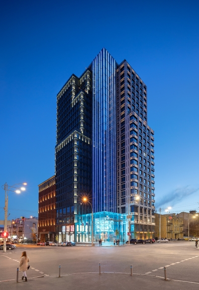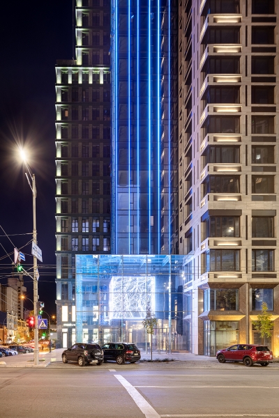 After dark, the most modern museum technology for illuminating exhibits is virtually imitated in the form illumination, when several beams of light of different widths are aimed to maximize the shape of the light.