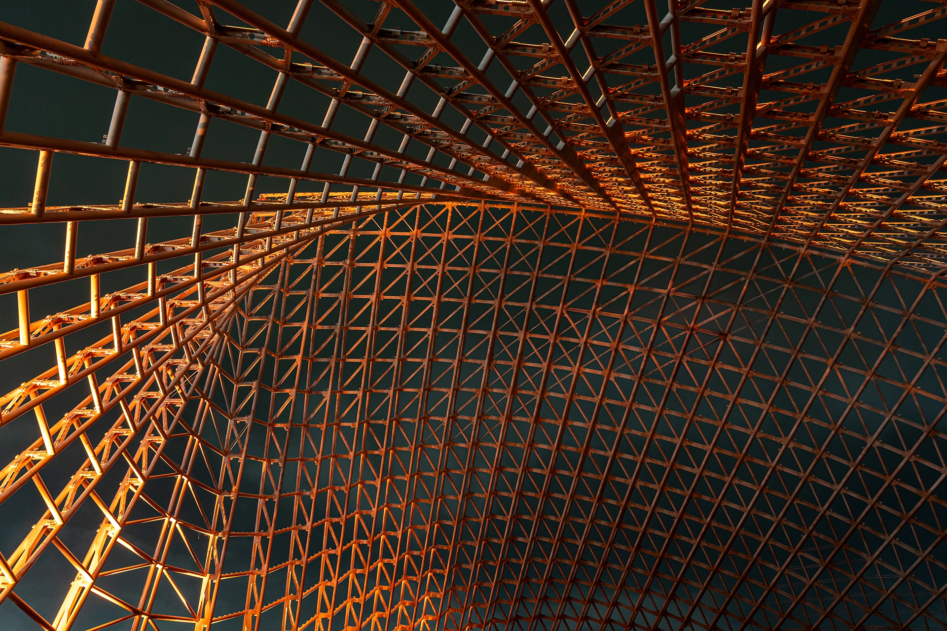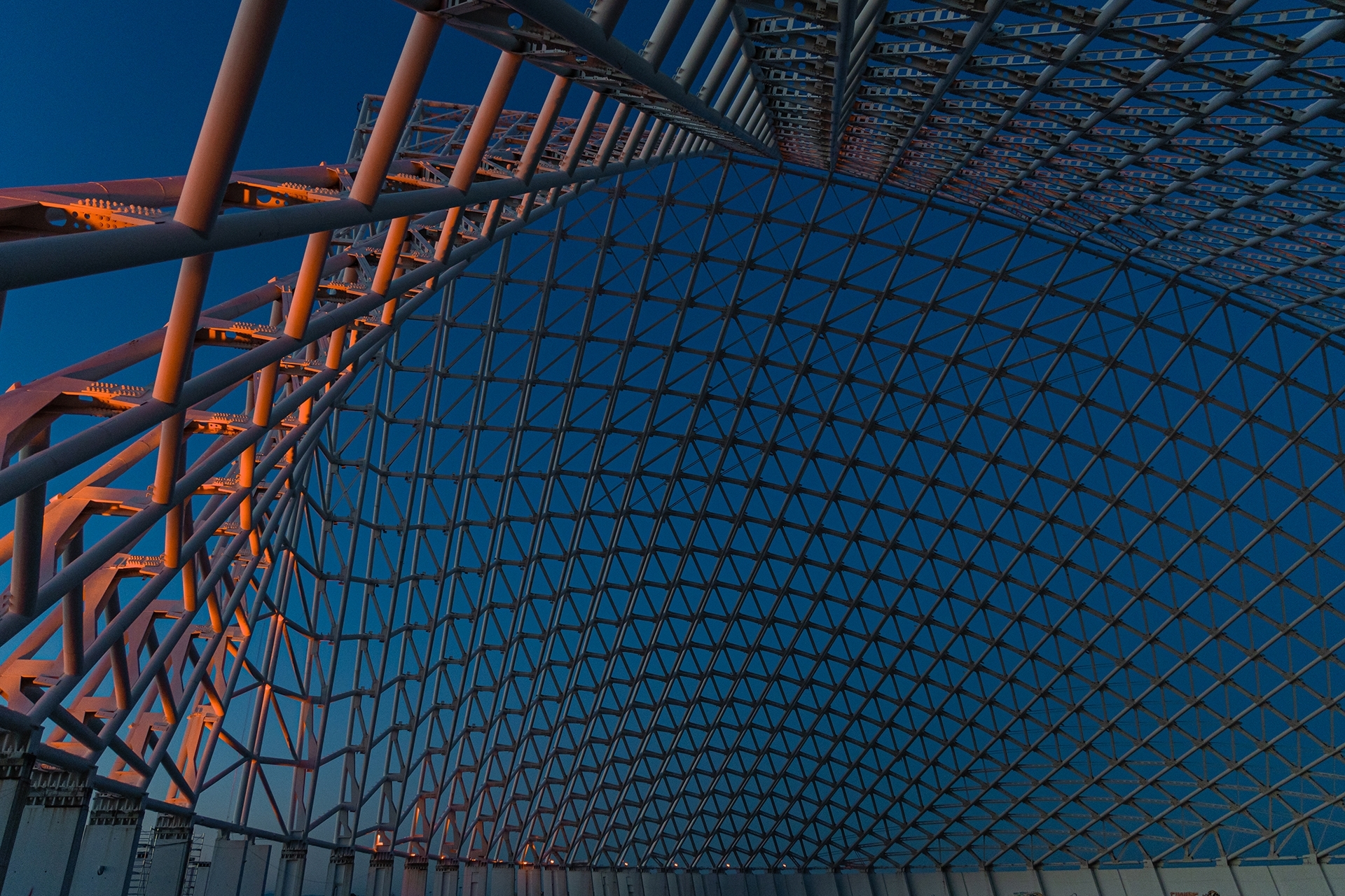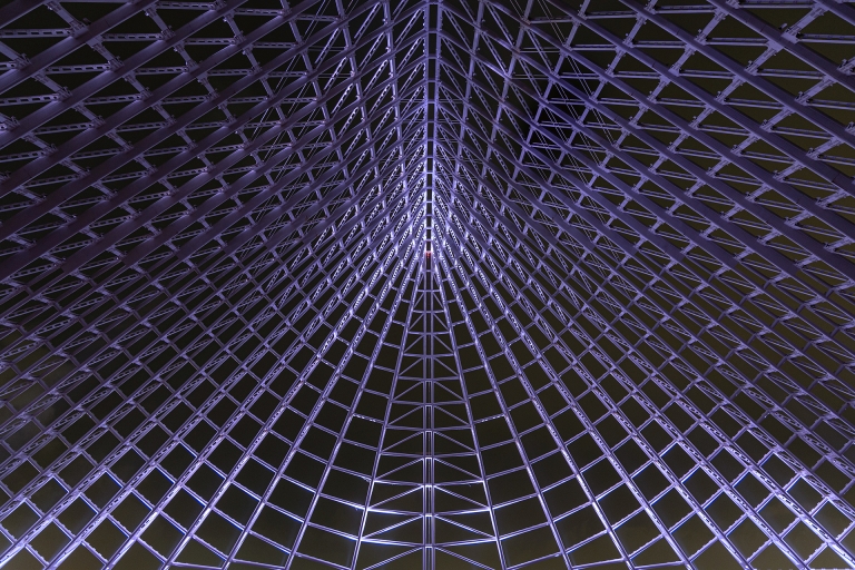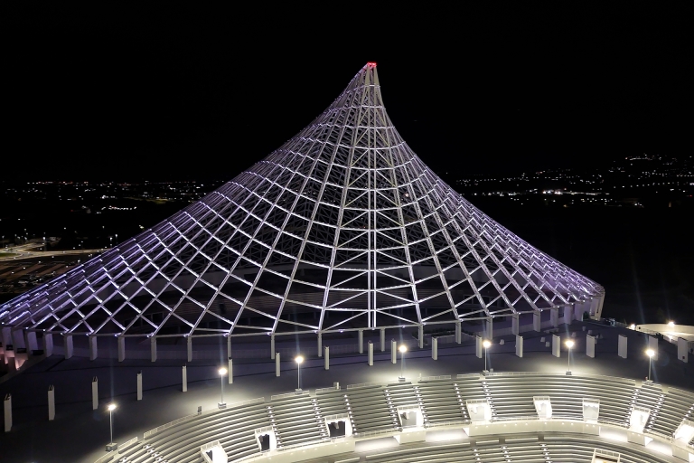 The lighting design follows a dynamic concept that balances brightness and color tones, blending static and moving effects. The sequence begins with warm shades reminiscent of a sunset, gradually shifting into the cool, radiant tones of a waxing moon. These hues then evolve into soft light blues and deep midnight tones, evoking the serenity of a starry sky, before slowly fading and returning the structure to the quiet embrace of darkness.