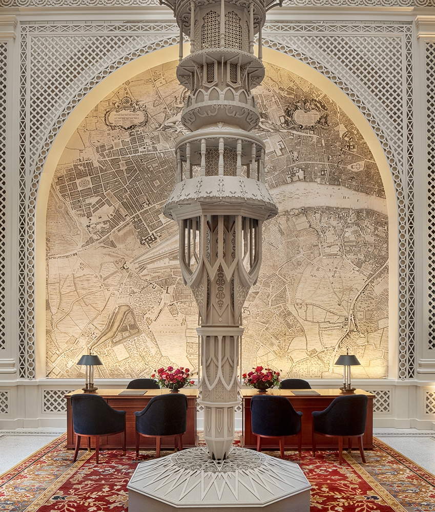 Interior Design Company Raffles London at The OWO: The Office of Thierry W Despont. The Guerlain Spa/Swimming Pool and Wellness Areas: Goddard Littlefair. The OWO Residences by Raffles: 1508 London (Public Areas and Apartments Base Build) & Winch Design (Penthouse)