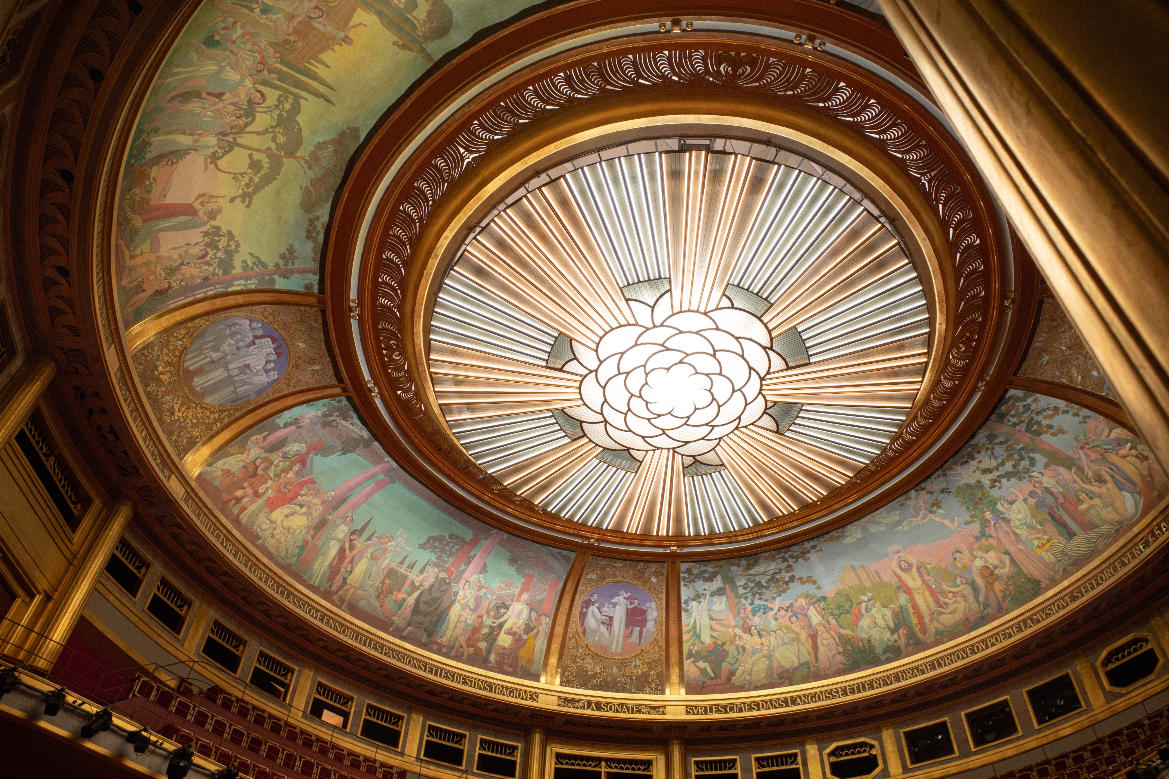 Entry DescriptionThe new lighting concept provides a more "organic" rendering depending on the sit in the audience, thus causing a unique experience. From the stalls, the symmetry and purity of the graphic lines are revealed. On the 2nd balcony, the gaze will linger on the detail of the gilding and on the original structural assemblies. A way of paying tribute to the incredible « ArtDeco » craftsmanship of 1912.