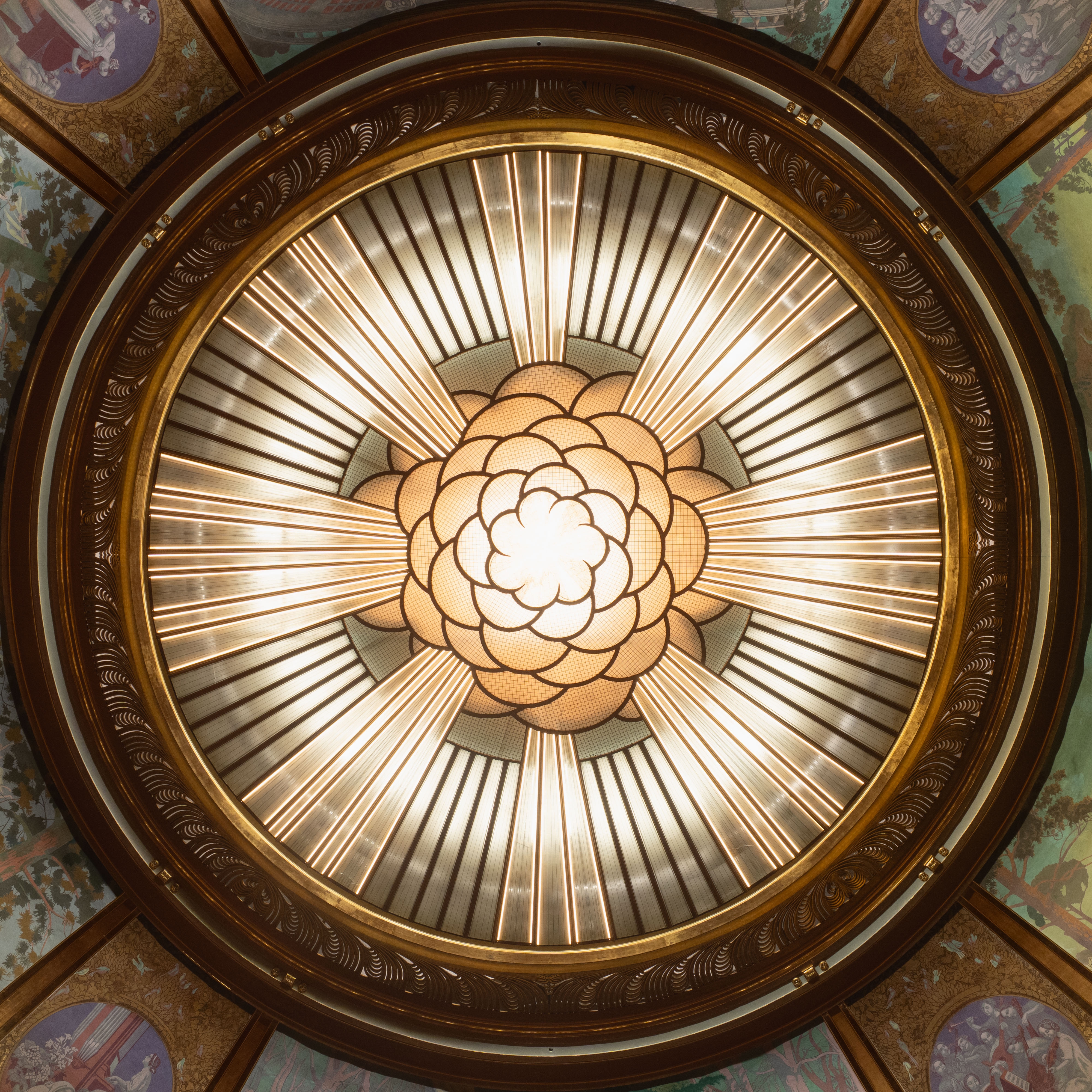 Here, the shape of the glass roof had to be used to reflect and diffuse the light. This new staging enhances the paintings and subtly highlights every detail of the dome that had never been revealed before. When the lights go down, a vibrant sun will shine on the audience. This theatrical blackout, this unique effect precisely timed, becomes the visual identity of the TCE. At this moment, the new dome asserts its belonging to the show, perfectly linking the audience to the stage in light and time. In this path, it substantially leaves its heritage part to become a scenographic object with an infinite graphic palette, thought as a real creative tool for stage lighting designers.