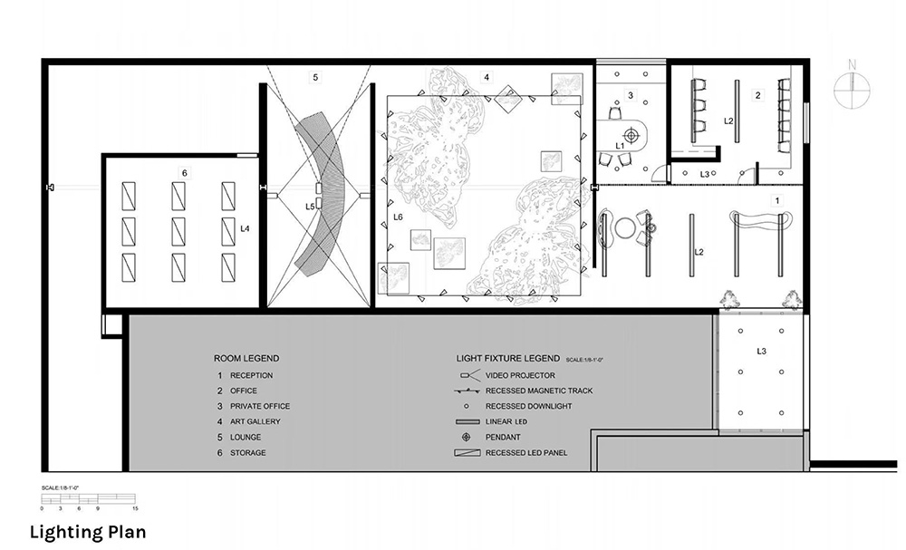 Sustainability ApproachThe project embraces sustainability by reusing existing architectural elements and reclaimed materials. In the reception, reclaimed wood slats and glass structures create a warm, layered entry, complementing the gallery’s character while remaining adaptable for future use. The gallery employs the existing track lighting system, upgraded with energy-efficient technology to deliver precise illumination while minimizing waste. The concrete floor was polished to enhance reflections without adding new finishes. In the art lounge, projections animate the walls directly, leaving the architecture unchanged. Collectively, these strategies reduce material impact, prioritize reuse, and demonstrate how light itself functions as both medium and sustainable resource.
