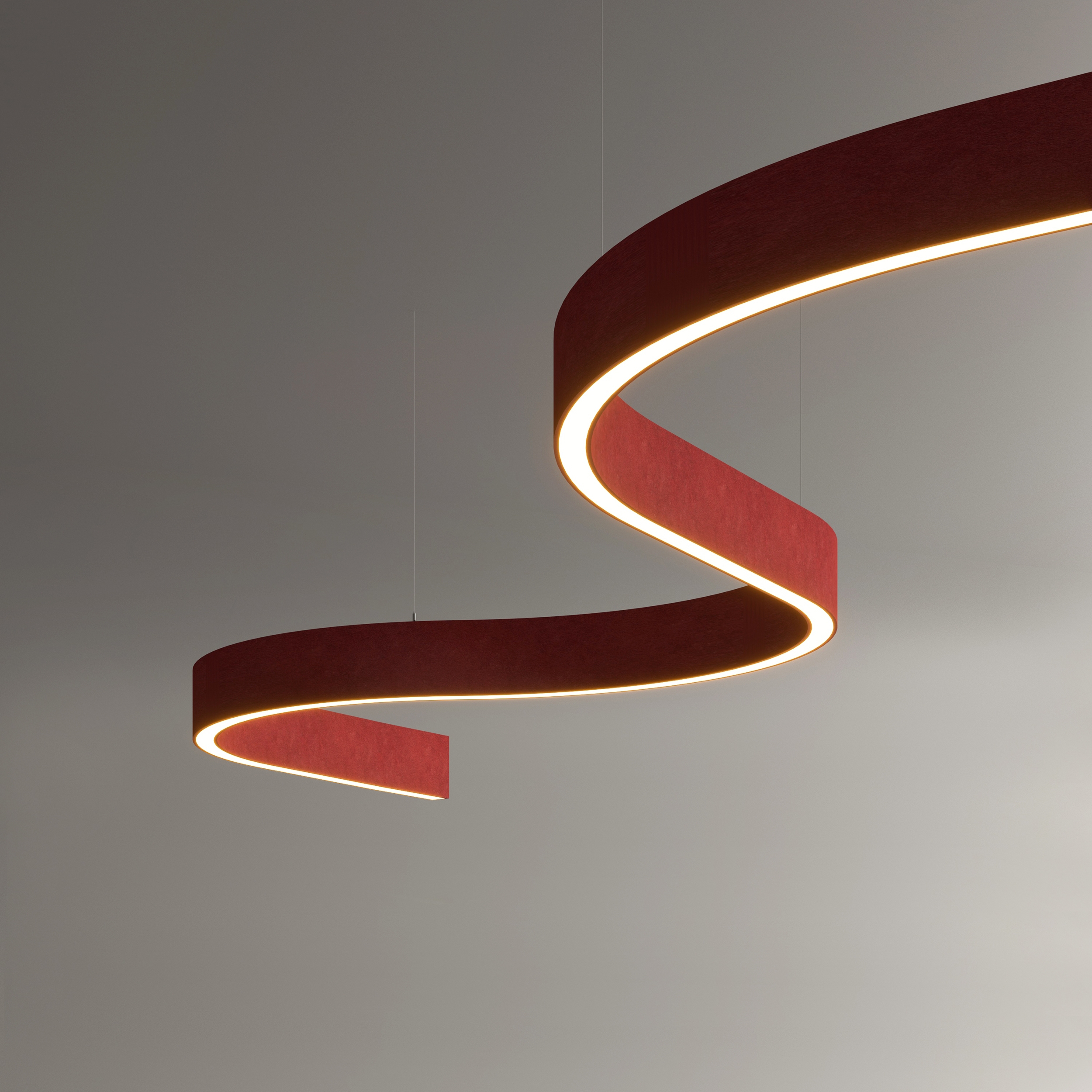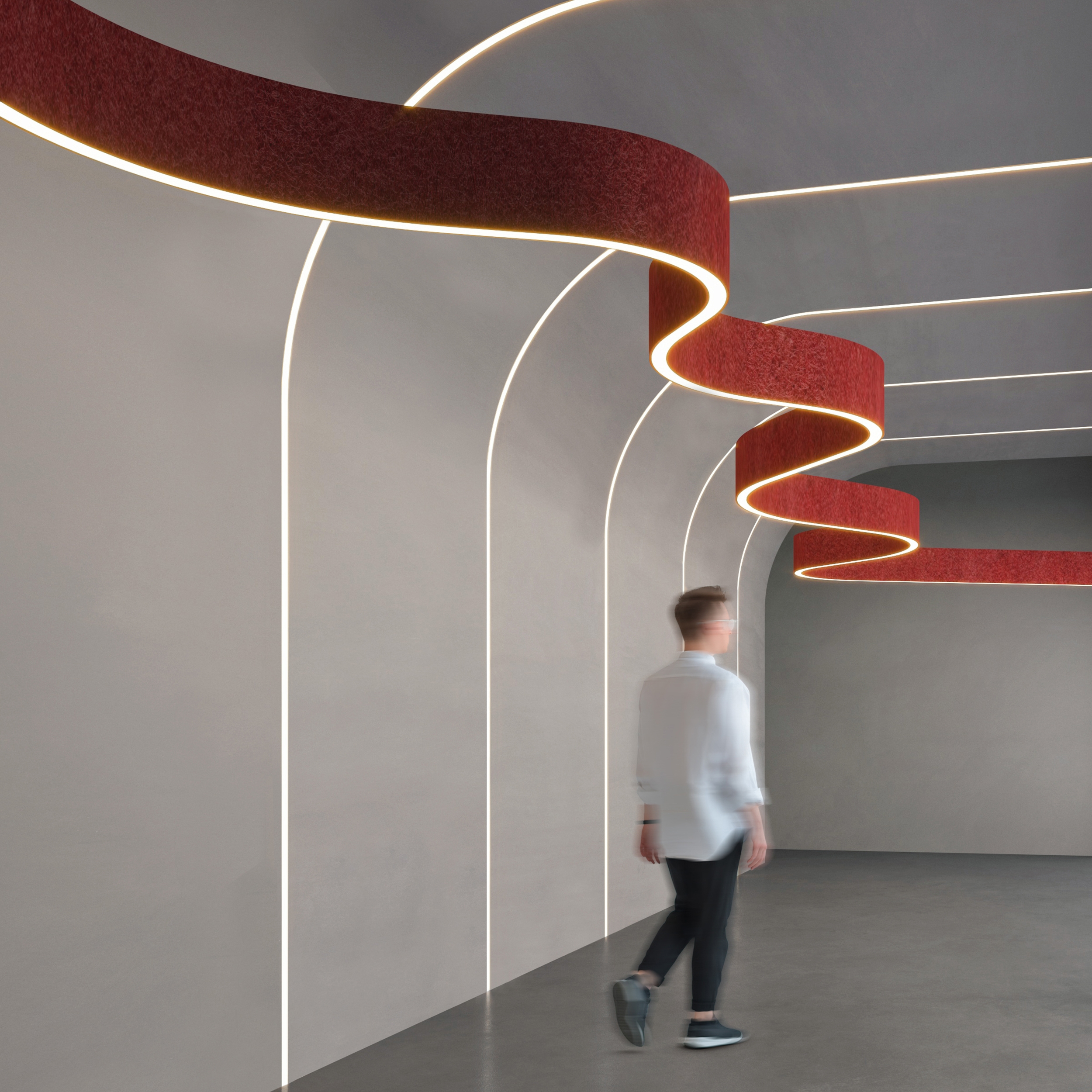 Curvia Seal delivers high-performance outdoor illumination with IP65-rated protection, combining durability and refined aesthetics to withstand the elements year after year. Curvia Acoustix merges light and sound management into a unified solution, using sound-absorbing felt to reduce reverberation and enhance its sculptural presence. Meanwhile, Curvia XYZ unlocks expansive design possibilities, offering flexibility in connecting arcs, lines, and angles to shape customized lighting compositions that flow effortlessly through architectural spaces.