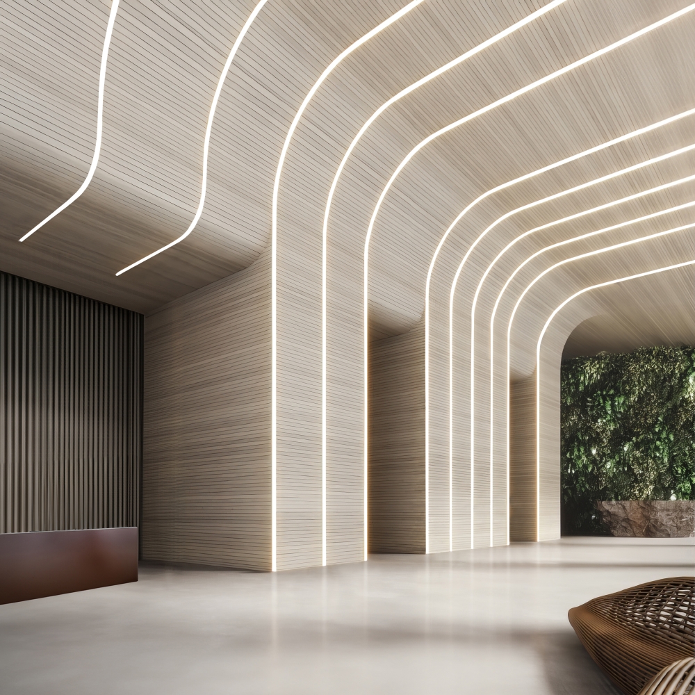 Blending fluid form with flawless function, the Curvia Seal, Curvia Acoustix, and Curvia XYZ product lines set a new benchmark in premium curvilinear lighting.