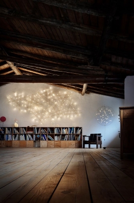 In the Pòta! series, light is the focal element around which slender, voluminous yet light structures take shape, and in which the lighting units are spread to create a contrasting interplay between order and disorder.