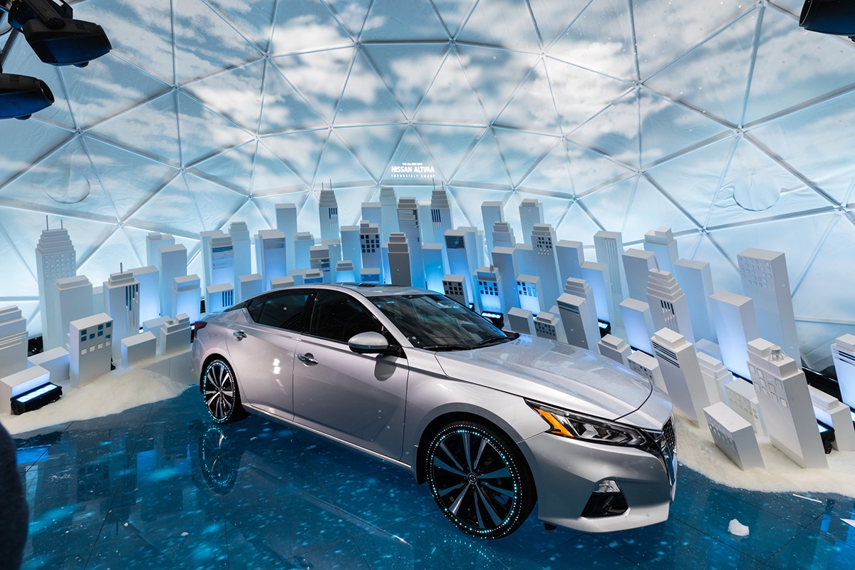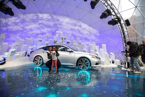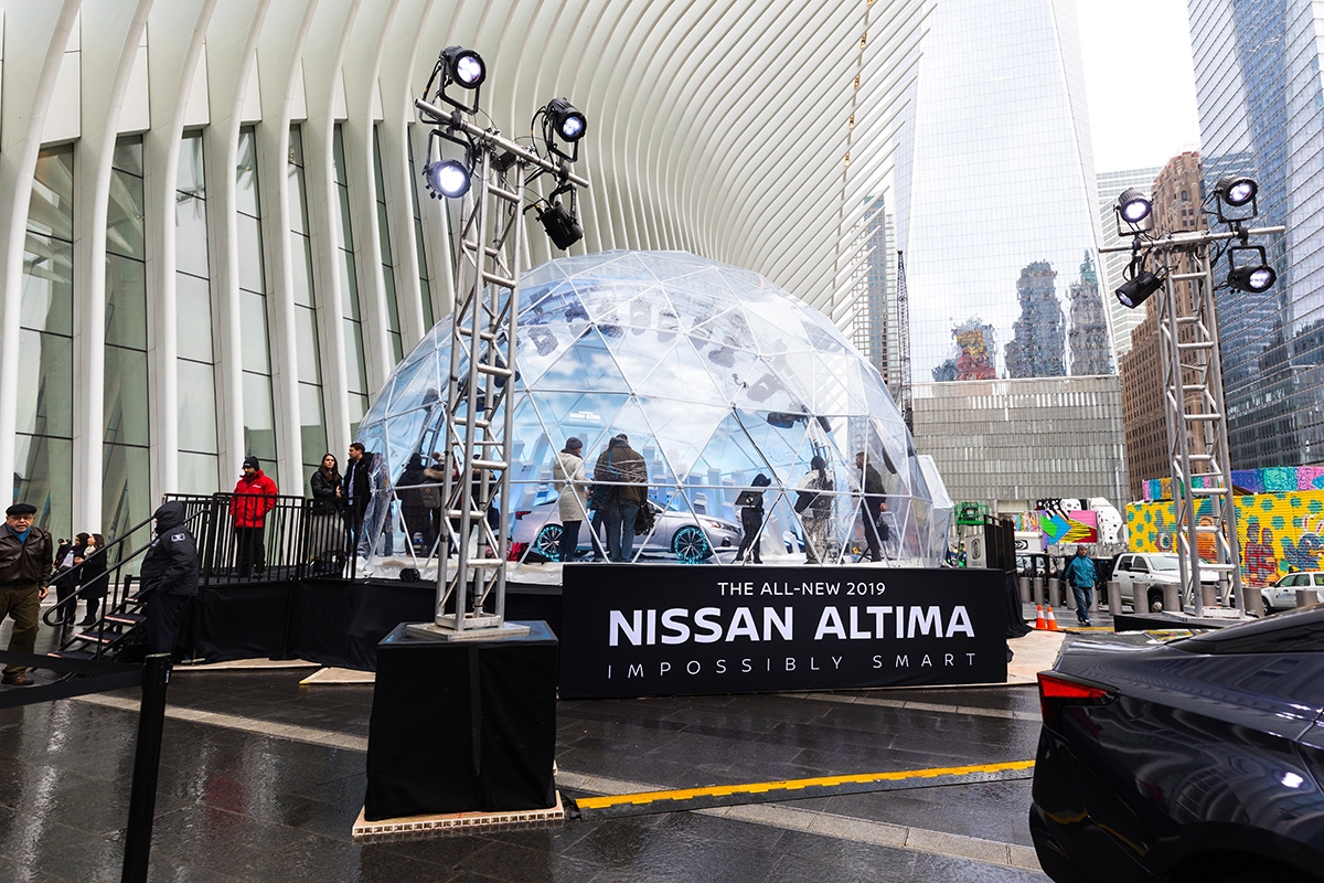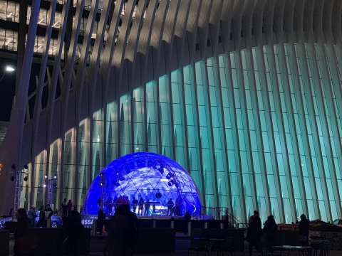 Design One brought in create a memorable experience for the public. Nissan hired the creative agency to create the worlds largest Snow globe in front of the Calatrava's World Trade Center Station during the Christmas Season. The lighting transformed the Globe from a sunny day into a cloudy day then into a stormy day that included artificial snow. Christien Methot was the design one lighting designer on this project and with his extensive theatrical experience, he and his team were able to bring the environment to life.