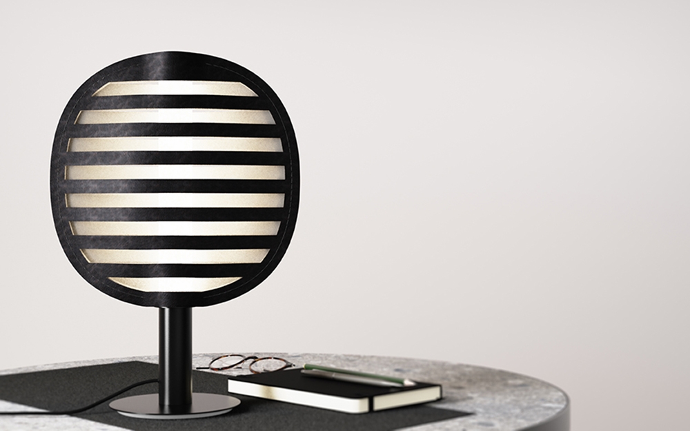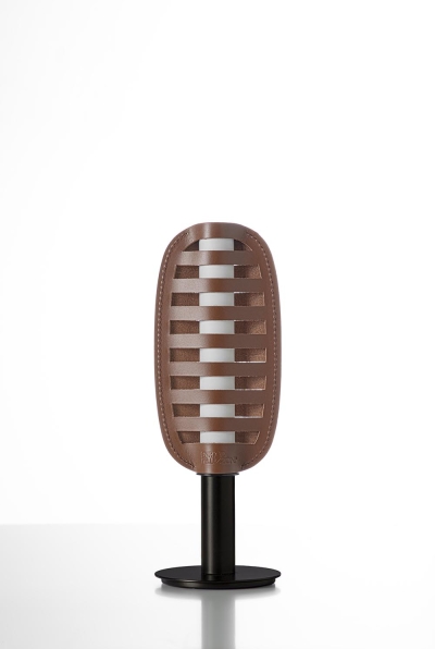 The leather and eco-leather lampshade is made exclusively from production scraps left over from the creation of other furniture pieces by the company, ensuring efficient resource reuse. This approach not only cuts waste but also makes Lume a model of responsible, circular design with minimal industrial and environmental impact.
