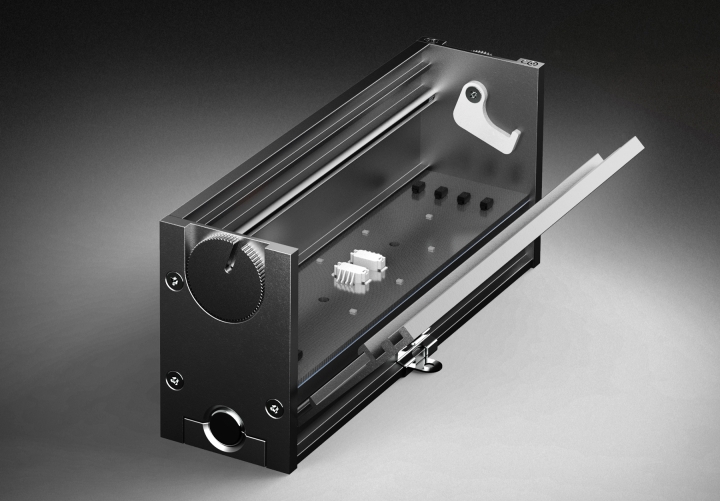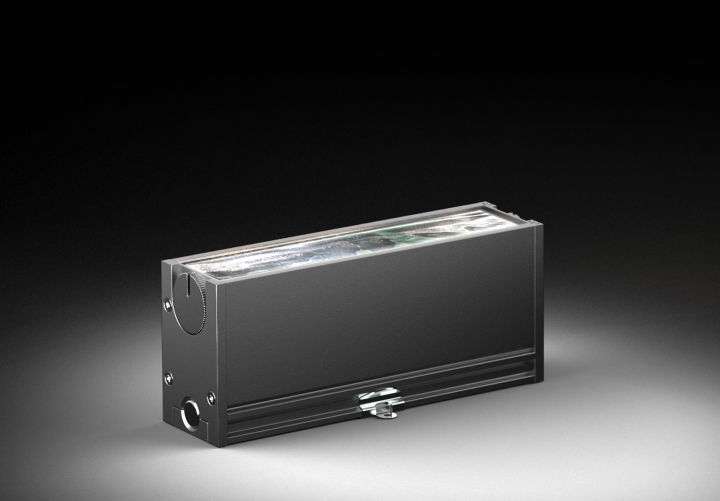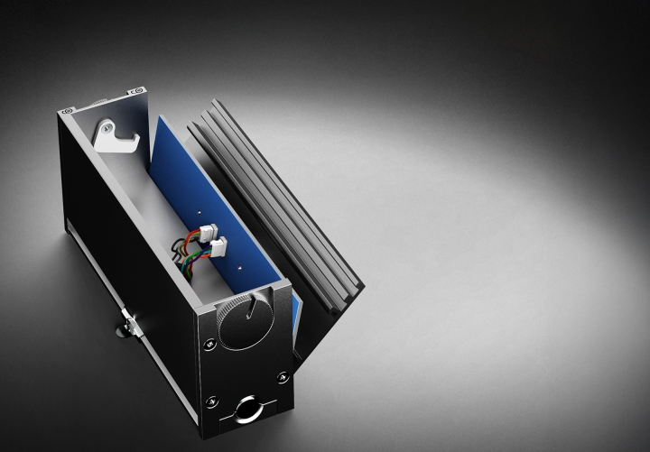 A clamshell design clamps the aluminium core light engines to the heat sink with a cam action, ensuring excellent thermal management.
