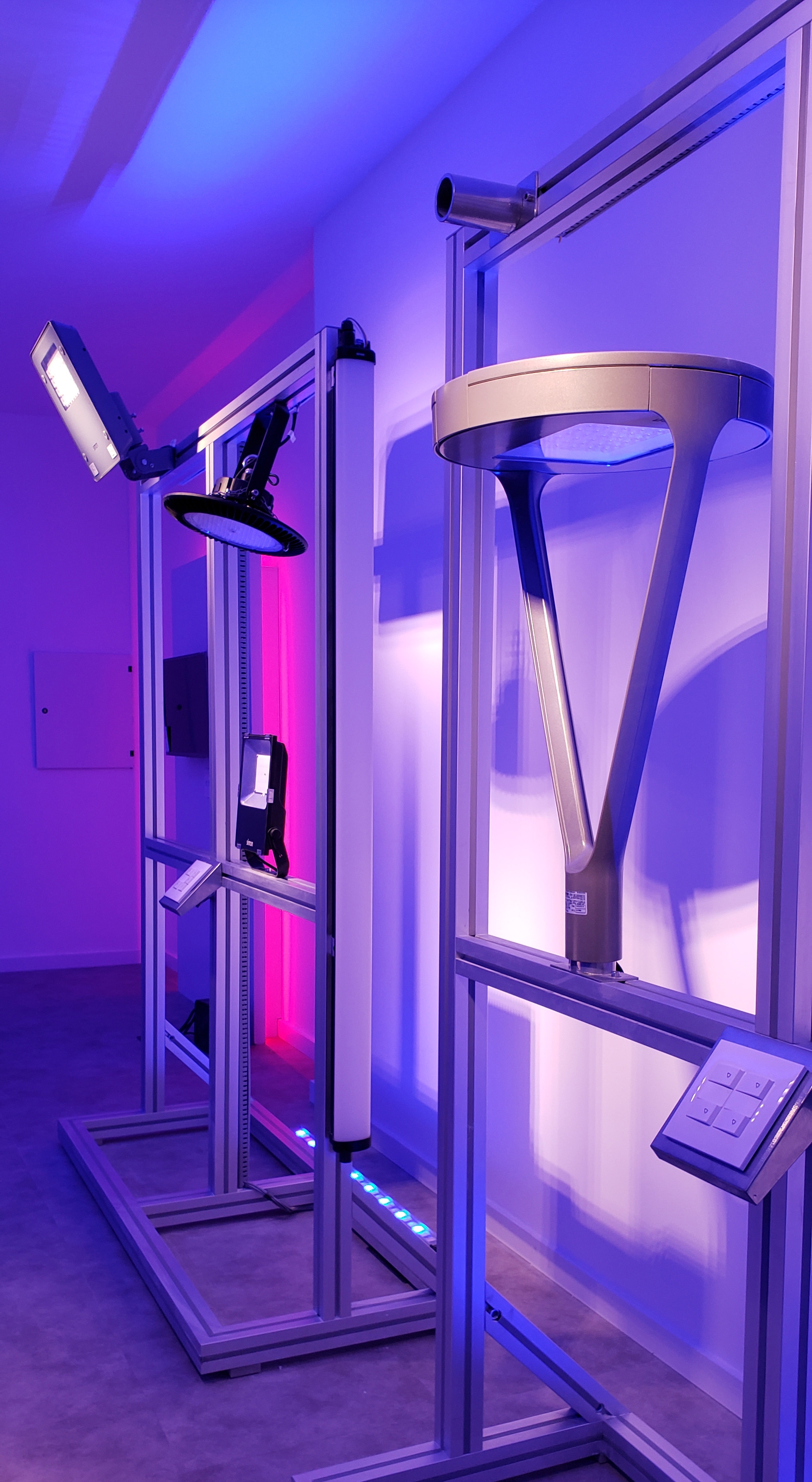 To standardize the overall visual perception, RGB were used as indirect and diffuse lighting. In this way it was possible to "camouflage" the less important elements, maximizing the highlighting of the points of interest by white light contrast. The entire installation has been painted white to ensure the desired lighting effect.