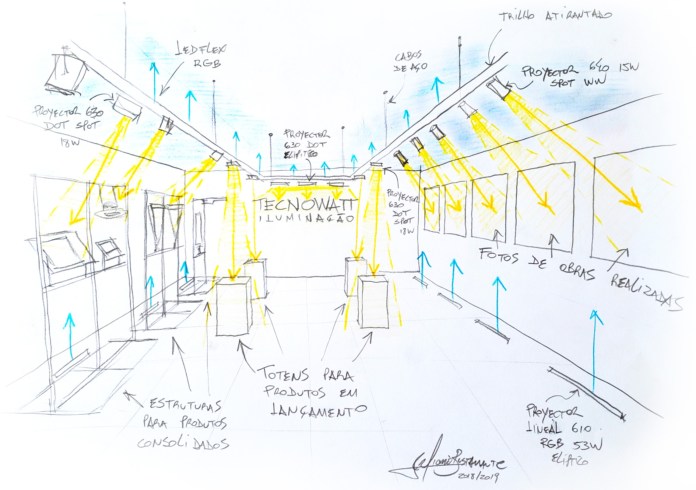 The general concept proposed was to define a new minimalist layout, allied to a lighting with scenic characteristics. The goal was to promote greater products prominence and company brand enhancement.