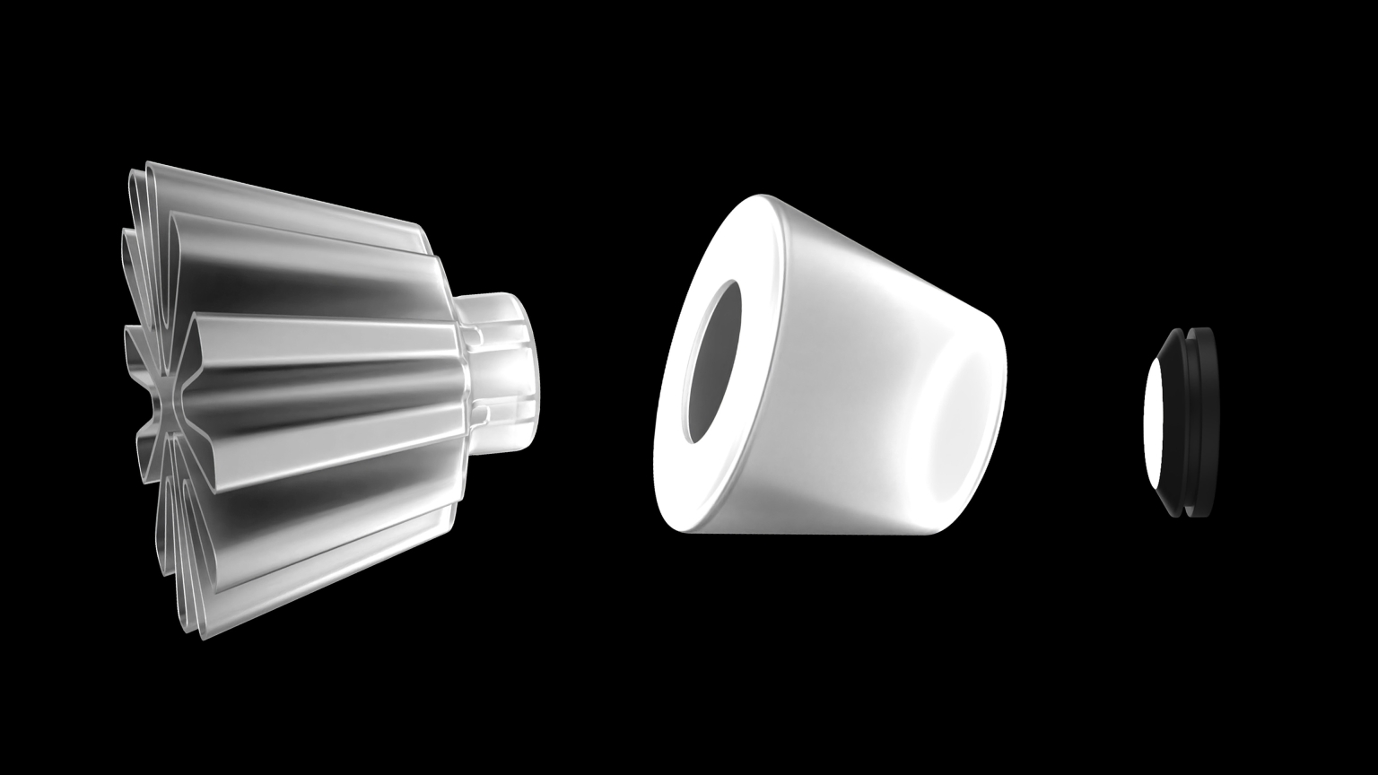The modular assembly allows for various crown elements to be designed and inserted in the future. The first version, as shown here, has a diameter of 220mm and a height of 285mm.