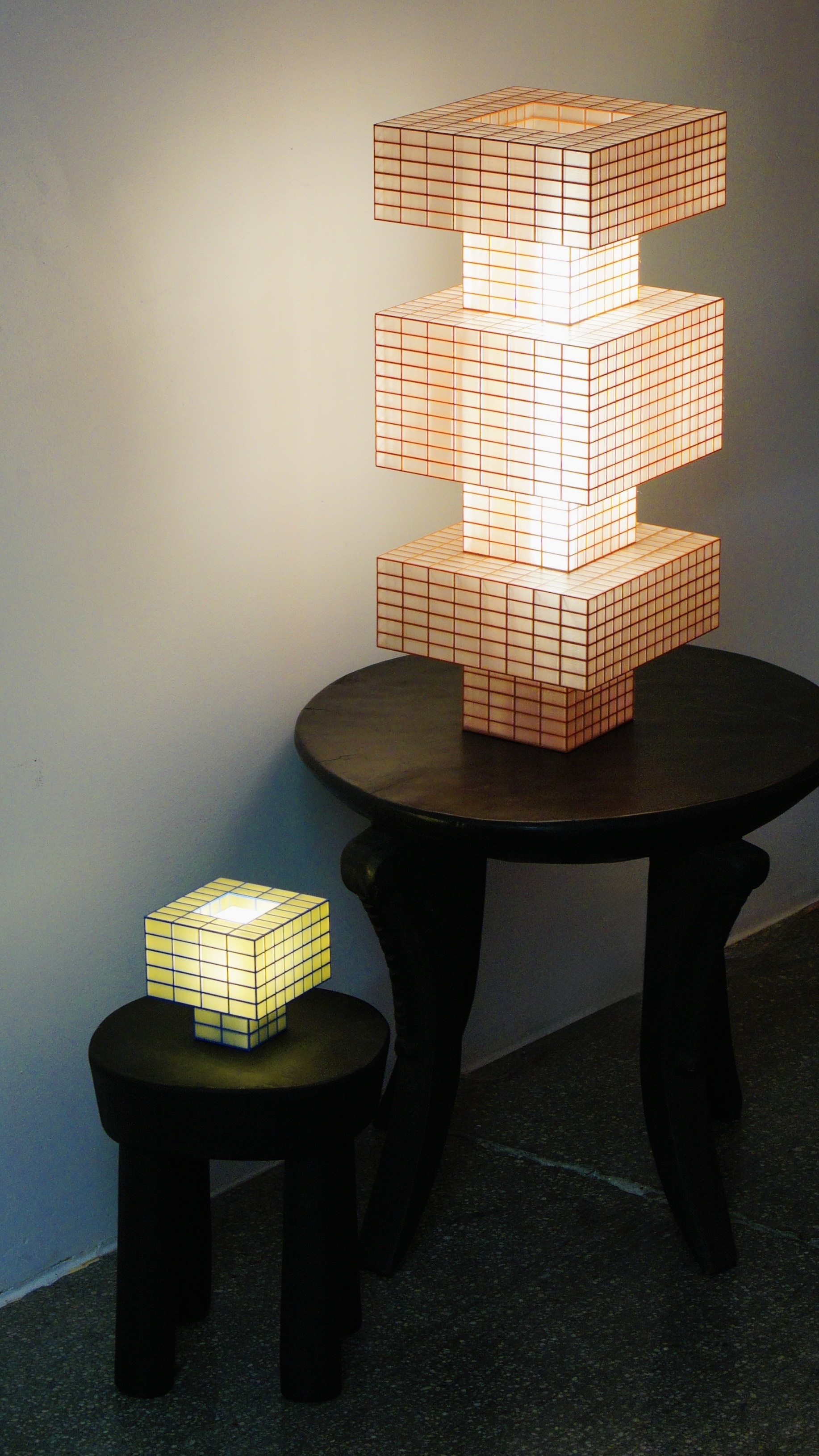 Entry DescriptionTesser is a sculptural lighting collection that redefines how we experience light in urban spaces. Inspired by fleeting glimpses of illuminated lives through New York City’s skyscrapers, Tesser transforms light into a spatial and emotional experience. Each lamp plays with perception, creating a dynamic interplay between presence and absence, form and illumination.