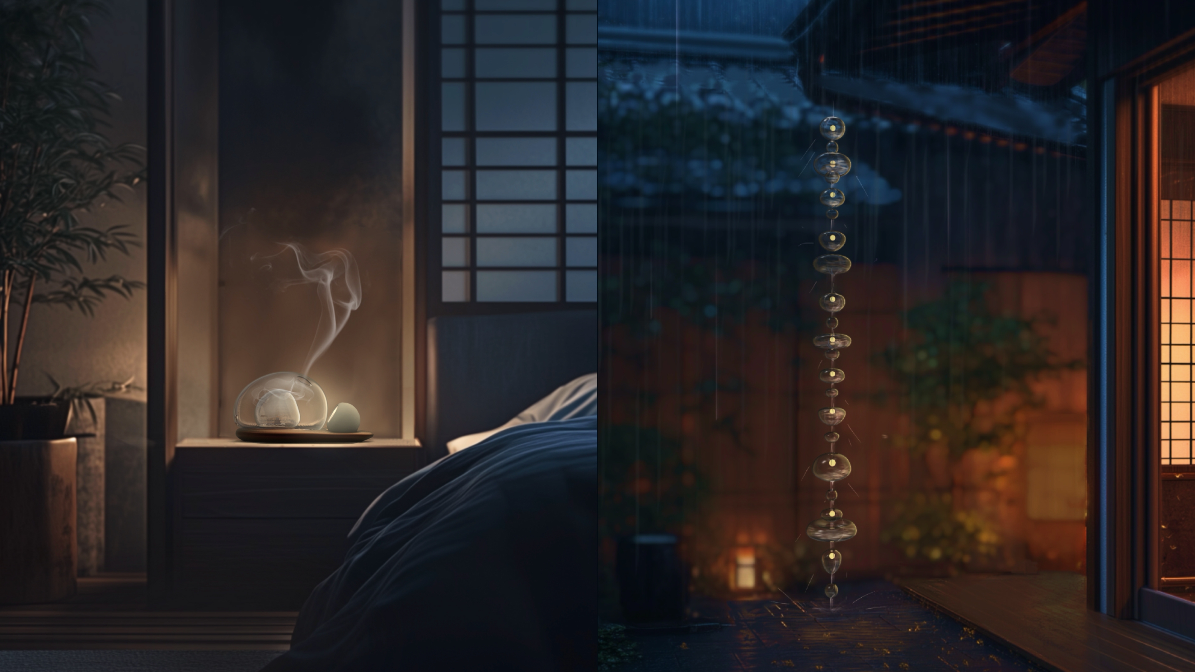 Sustainability ApproachThese two pieces explore sustainability not only through materials and energy but through presence and emotional continuity. Designed to last, to be felt, and to inspire stillness, they invite a slower, more attentive way of living. Cascade, the outdoor piece, is powered by solar energy and interacts with rainwater naturally—requiring no external electricity. Plume, the indoor light, offers soft illumination with minimal energy input and is designed for repeated use. Its glass components are washable and reusable, reducing reliance on disposable decor and encouraging long-term, mindful interaction with light and scent.