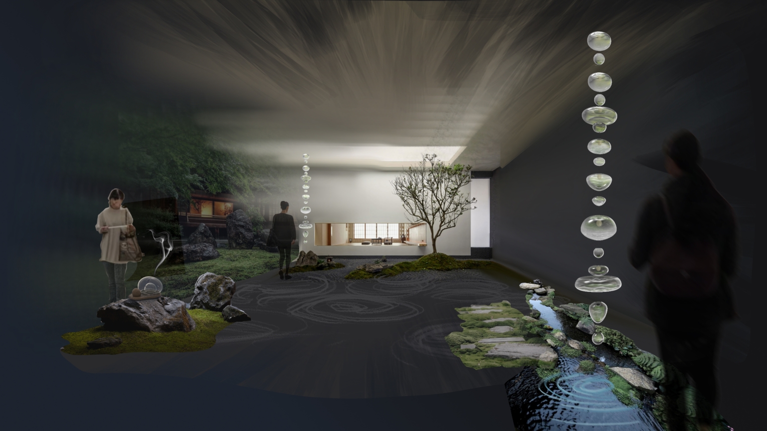 We believe that the mesmerizing power of fluid in nature lies in its ability to hold the observer still as itself moves and shifts. Through observing and interacting with the pieces, we hope people can take a momentary pause to appreciate the beauty of fluctuating fluid motion and experience a sense of mindfulness. Such quiet experience remind us that while each fleeting moment seems impermanent, together they form the order of nature — and within that order lies a sense of eternity.