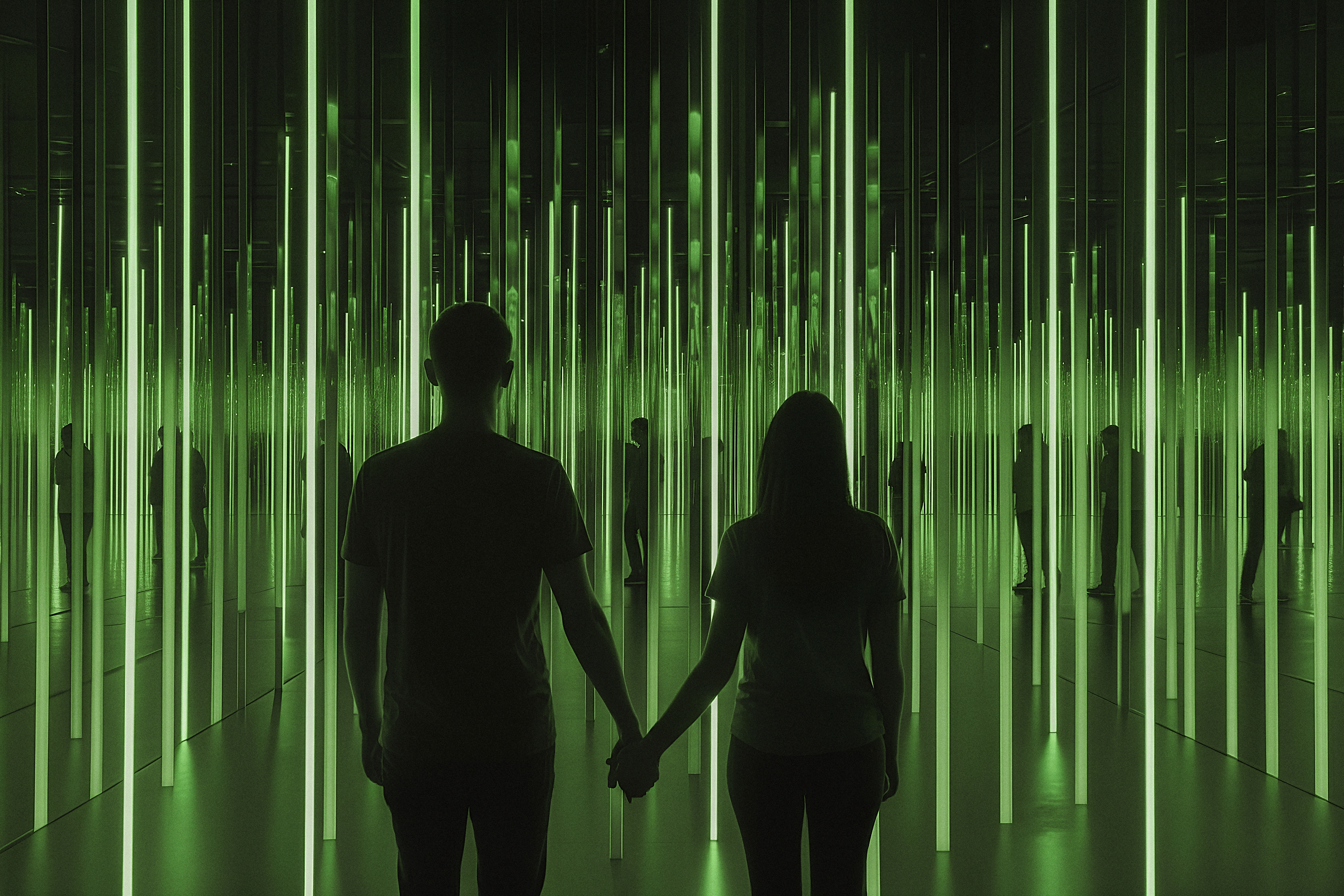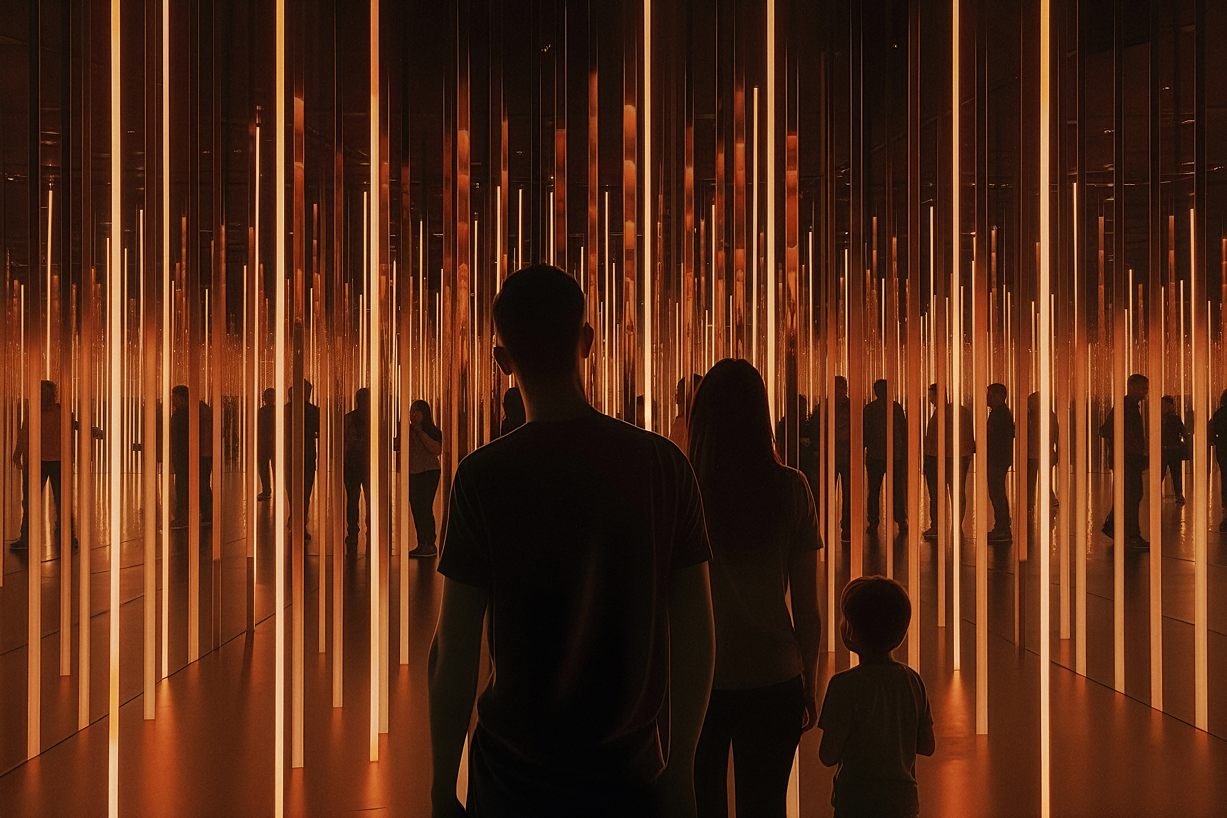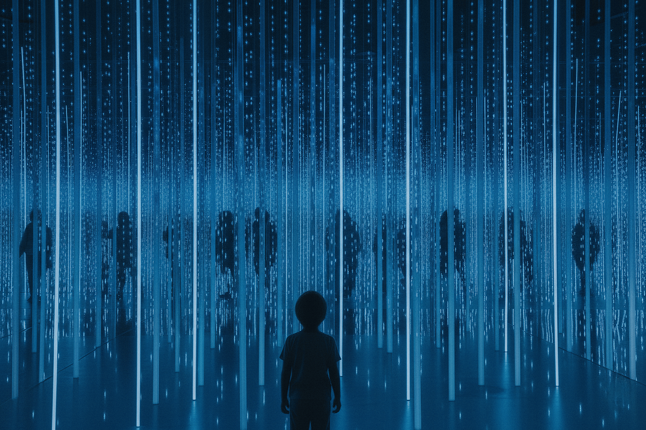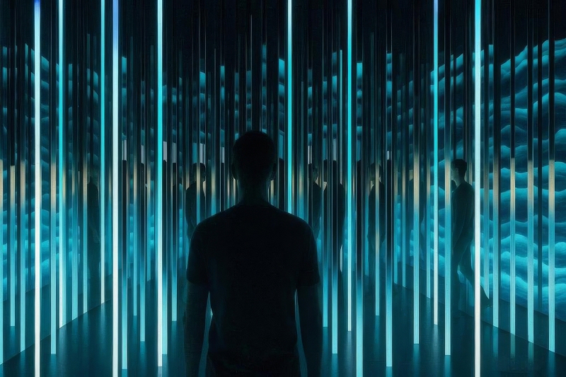 Within this mirrored landscape, the viewer becomes part of the installation. Every reflection creates a new self, fragmented, multiplied, and uncertain. The mirrors blur the border between reality and illusion, urging each observer to face the question: Am I the observer or the reflected image?