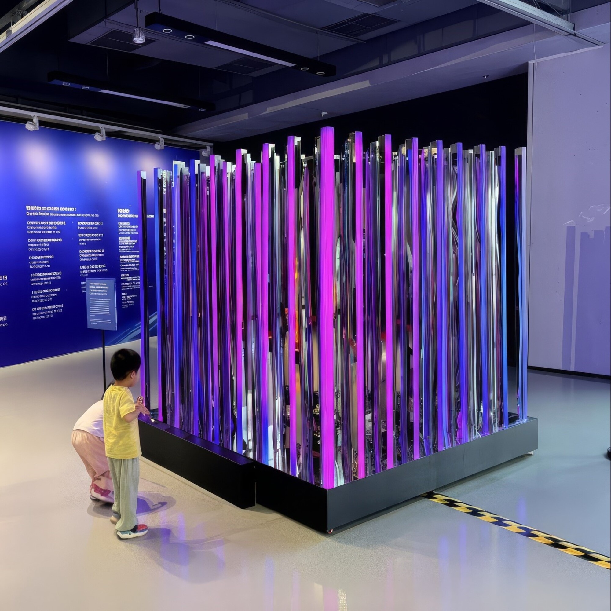 Sustainability ApproachPrismatic Self embodies sustainability both in concept and practice. The installation’s narrative follows the natural cycle of creation, destruction, and renewal, reflecting humanity’s fragile connection with the environment. Its modular structure is made of recyclable aluminum and energy-efficient LED lighting, minimizing material waste and energy consumption. The lighting system operates in programmed loops, echoing the regenerative rhythm of nature. Beyond materials, the work invites viewers to reconsider their personal impact, transforming awareness into an emotional experience. Sustainability here is not only a technical goal but a moral reflection, a call to preserve the balance between human progress and the living Earth.