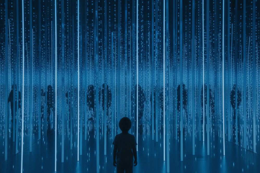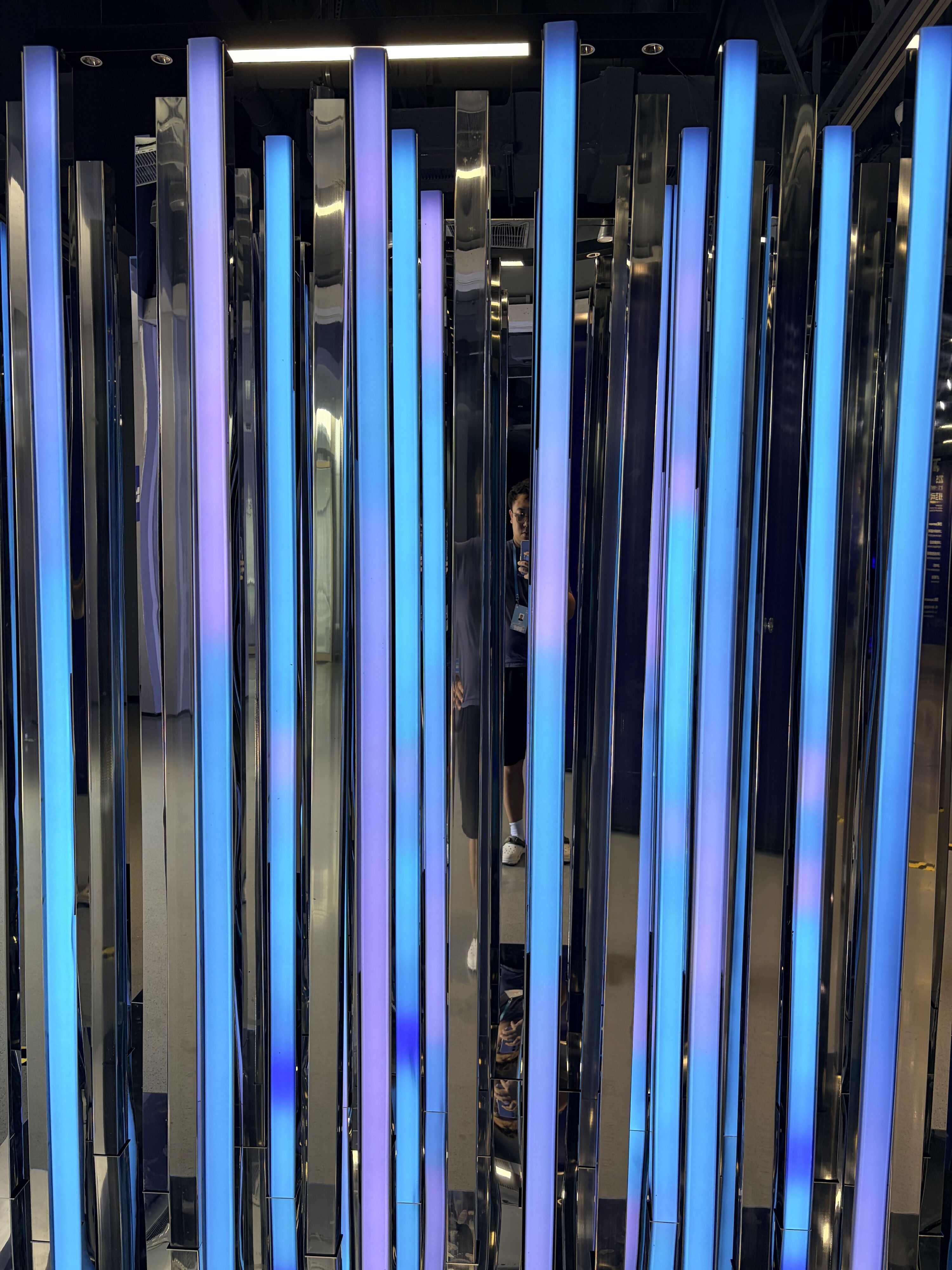 Entry DescriptionPrismatic Self is a light installation that transforms reflection into a space of dialogue between human presence and the living world. The work unfolds through a cycle of light scenarios, beginning with the rain of creation. Blue lights descend like falling drops, followed by green lights that rise upward, evoking growth, forests, and the pulse of life on Earth. As colors evolve and intertwine, nature gives way to the geometry of civilization. The vertical columns, once symbols of trees, now stand as man-made structures, embodying progress and confusion.