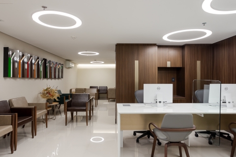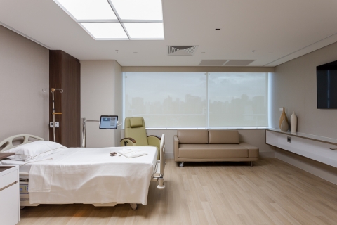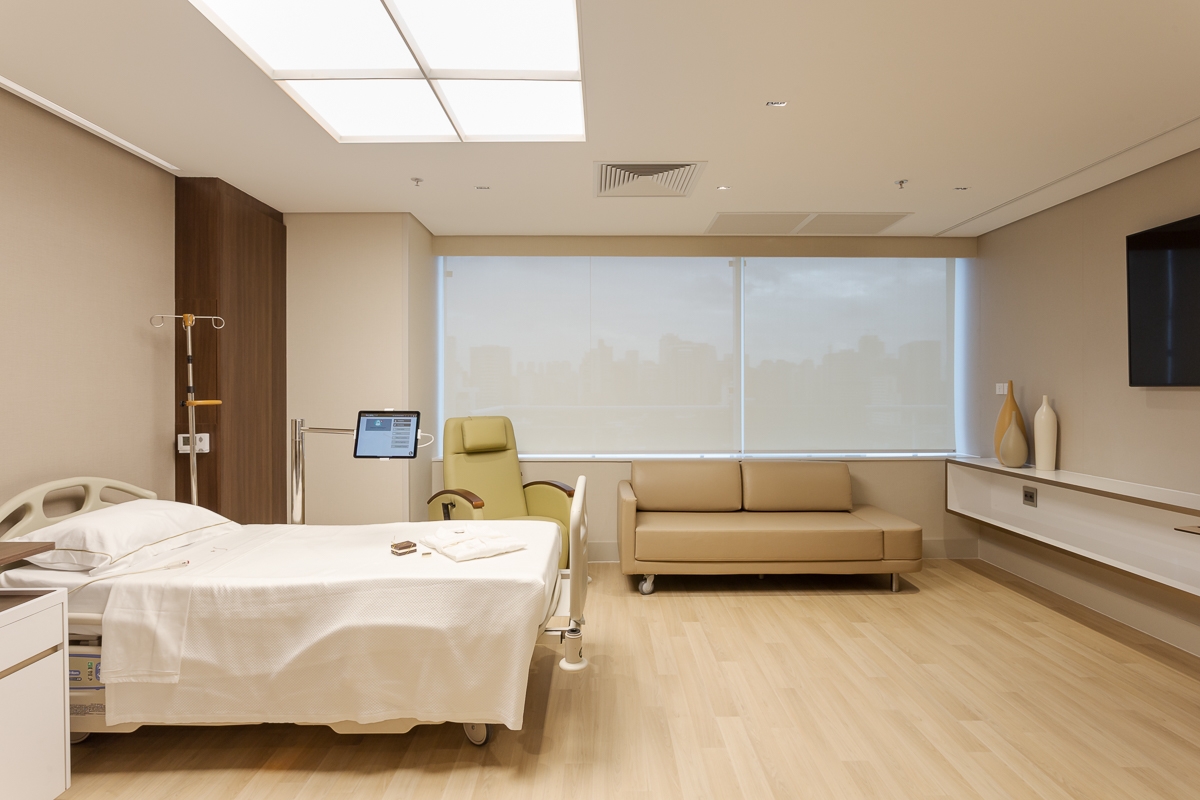 The patient’s comfort and well-being is one of the main goals of the architecture and lighting design project of Rede D'Or's latest hospital, Vila Nova Star - opened in May 2019 in the city of São Paulo - with very refined and sophisticated interiors. Intending to create a cozy space that resembles a Family house, the lighting design of the rooms – created by Mingrone Iluminação - presents an innovative proposal of Tunable White systems, which means it mimics the variation of sunlight during the day, keeping the circadian rhythm regulated. Circadian rhythms are kept in sync by some variables and light is a major factor. When it is in high frequency and intensity, it promotes alertness, while a lack of it signals the body to reduce energy and prepare for rest. Thus, by simulating circadian rhythm patterns inside of a hospital (where patients are indoors all day), artificial lighting can support a healthy cycle. The system can achieve this efficiency by automatically changing the brightness and hue of light throughout the day, reflecting external conditions and providing more comfort to the patient undergoing health treatment.