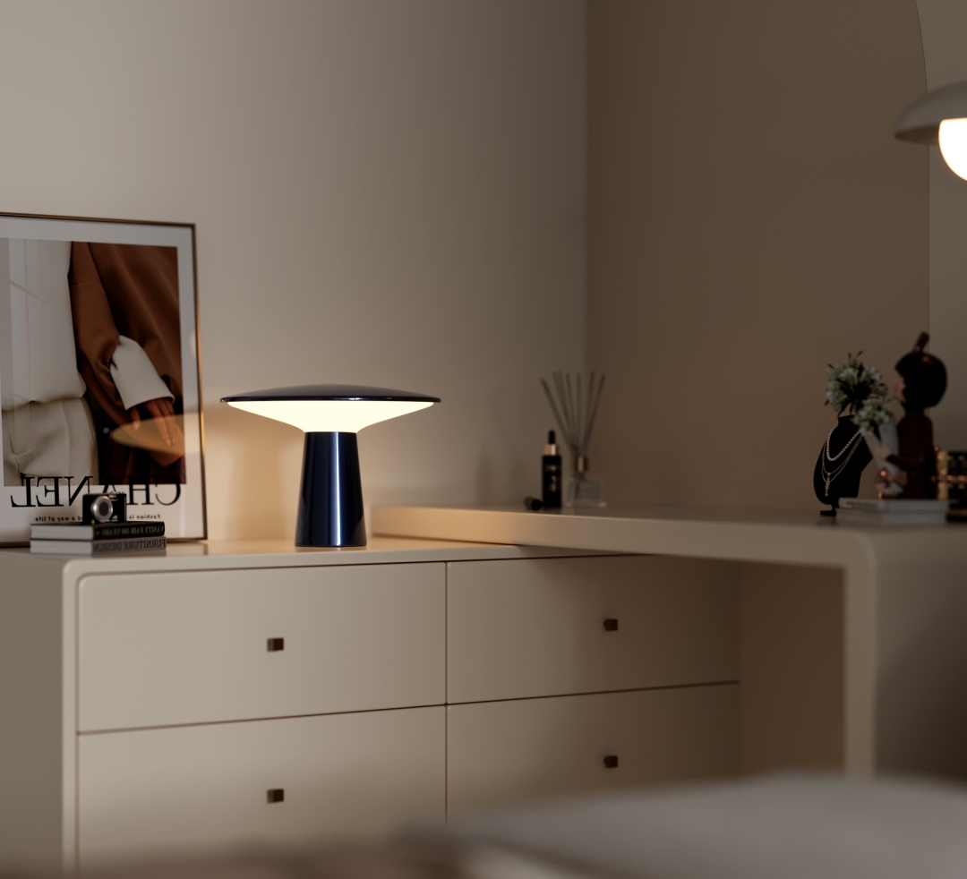 Sustainability ApproachMonir is built with sustainability as a core design principle. The base and upper dome are crafted from 100% recycled aluminum, offering both durability and a reduced environmental footprint. The diffuser is made from bio-based polycarbonate, a renewable alternative to petroleum-based plastics, ensuring full recyclability at the product’s end of life. Its cordless, USB-rechargeable design eliminates the need for disposable batteries, reducing waste and energy consumption. All components are designed for easy disassembly, enabling straightforward repairs or material recycling. By merging eco-conscious materials with a timeless, minimal form, Monir ensures longevity in both function and aesthetic—promoting a circular, low-impact approach to lighting design.