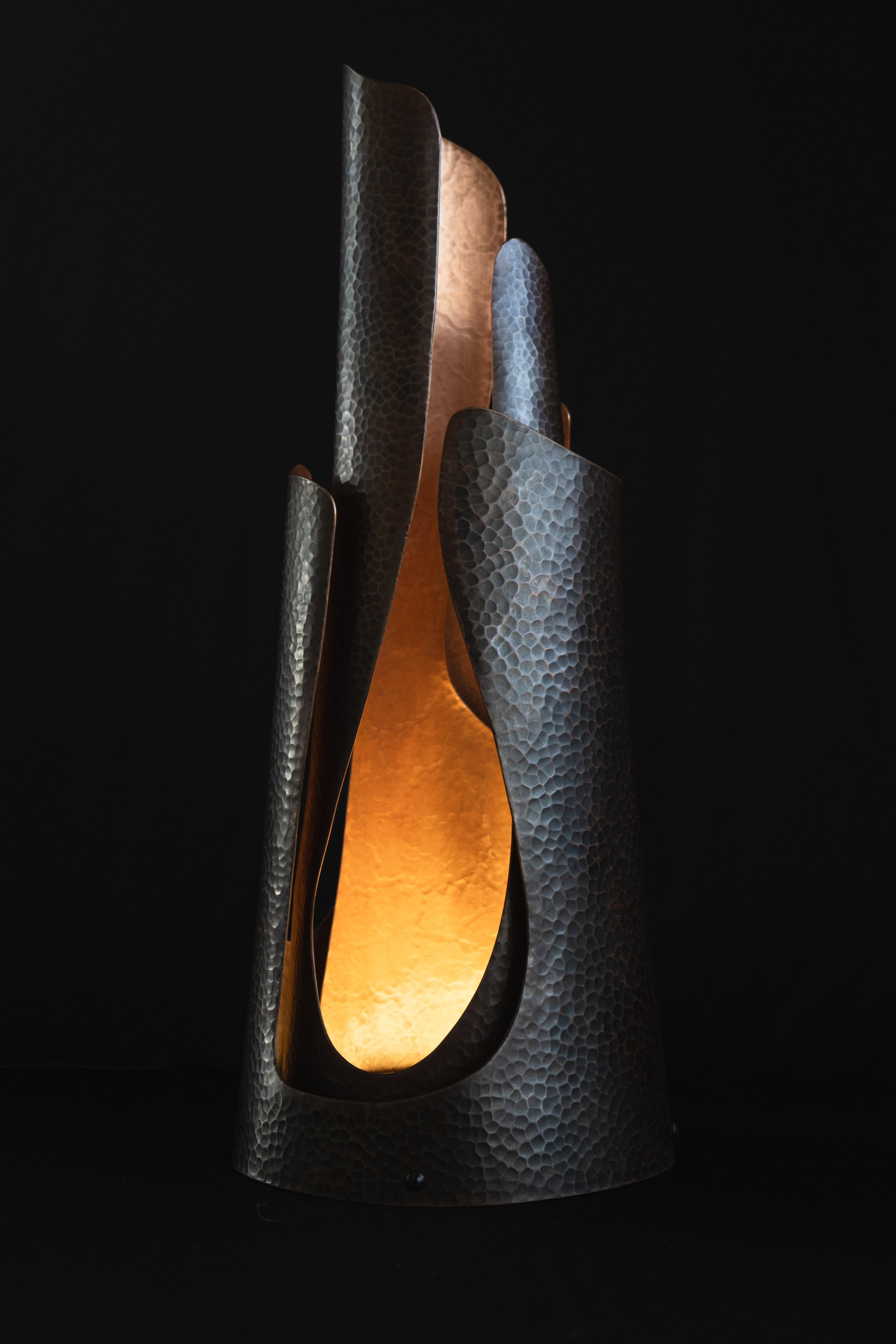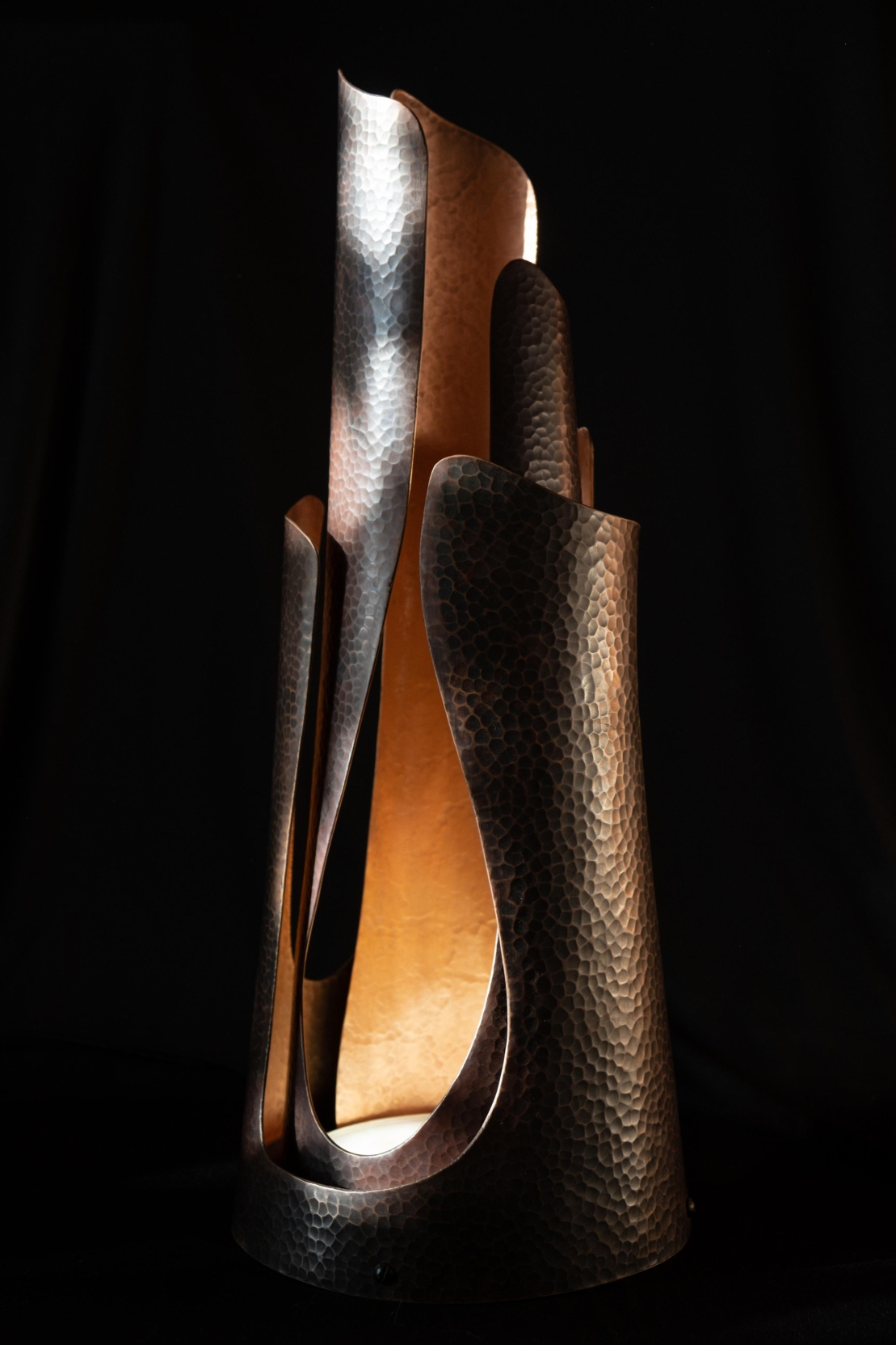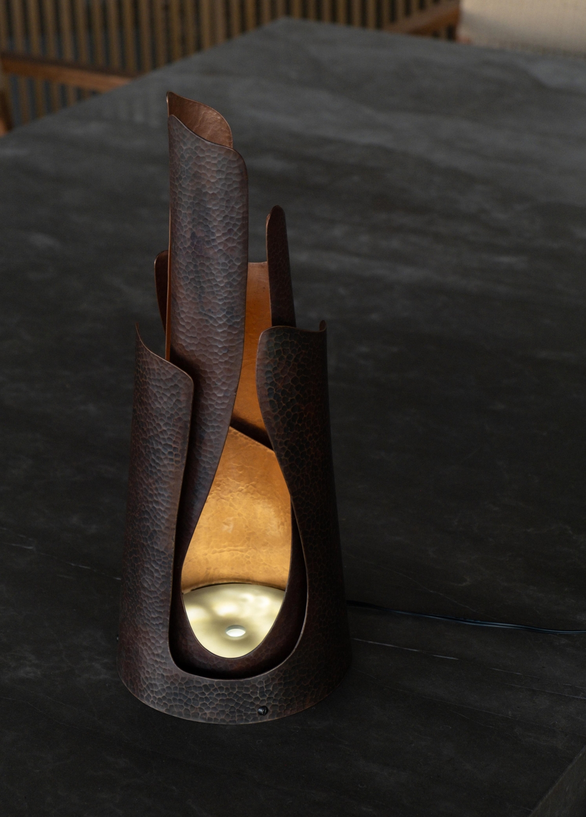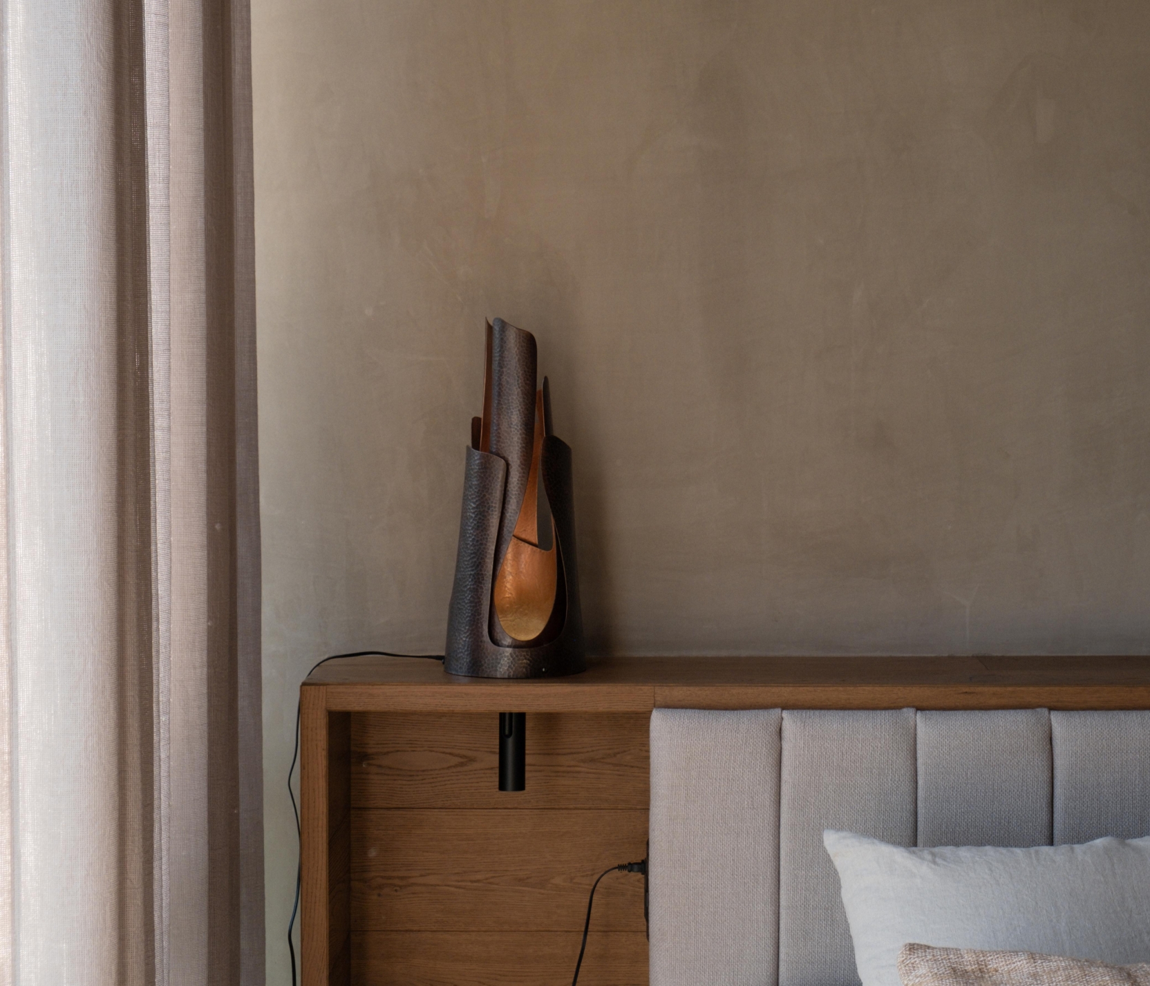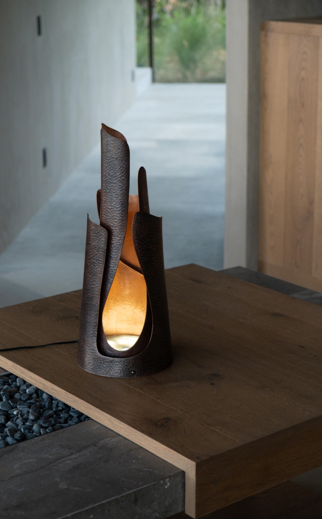 This piece focuses on an innovative lamp composed of two unique pieces, inspired by the fascinating movement of wind.