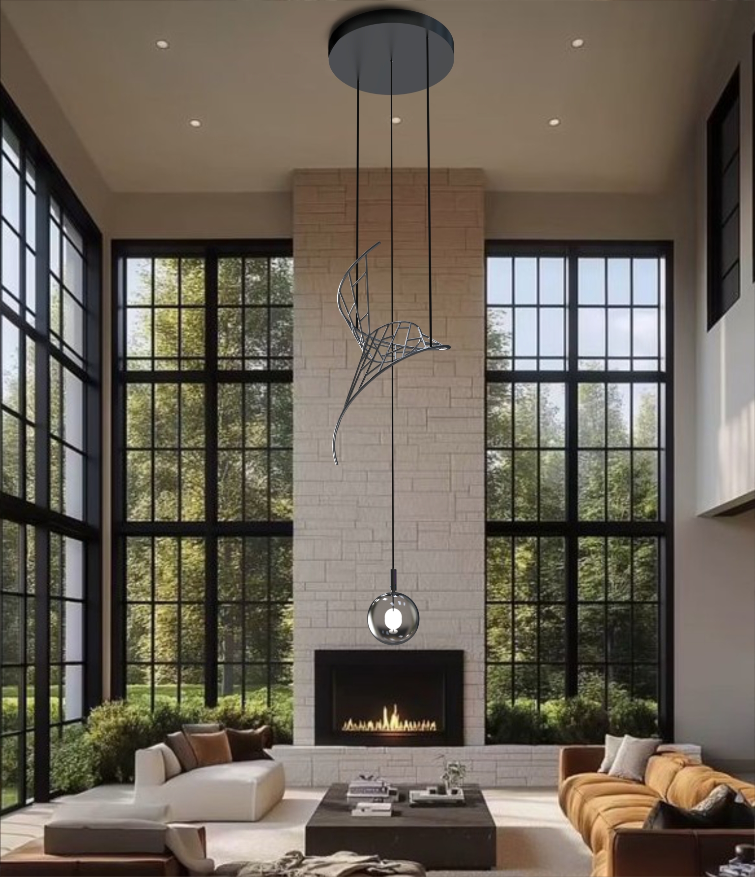 The integrated mist system simulates the humidity conditions that cause dew to form at dawn. It enhances the sensory experience while contributing to indoor air quality. A motorized pulley mechanism, housed in the ceiling-mounted casing, allows the user to adjust height and access the lighting and mist systems easily for maintenance.