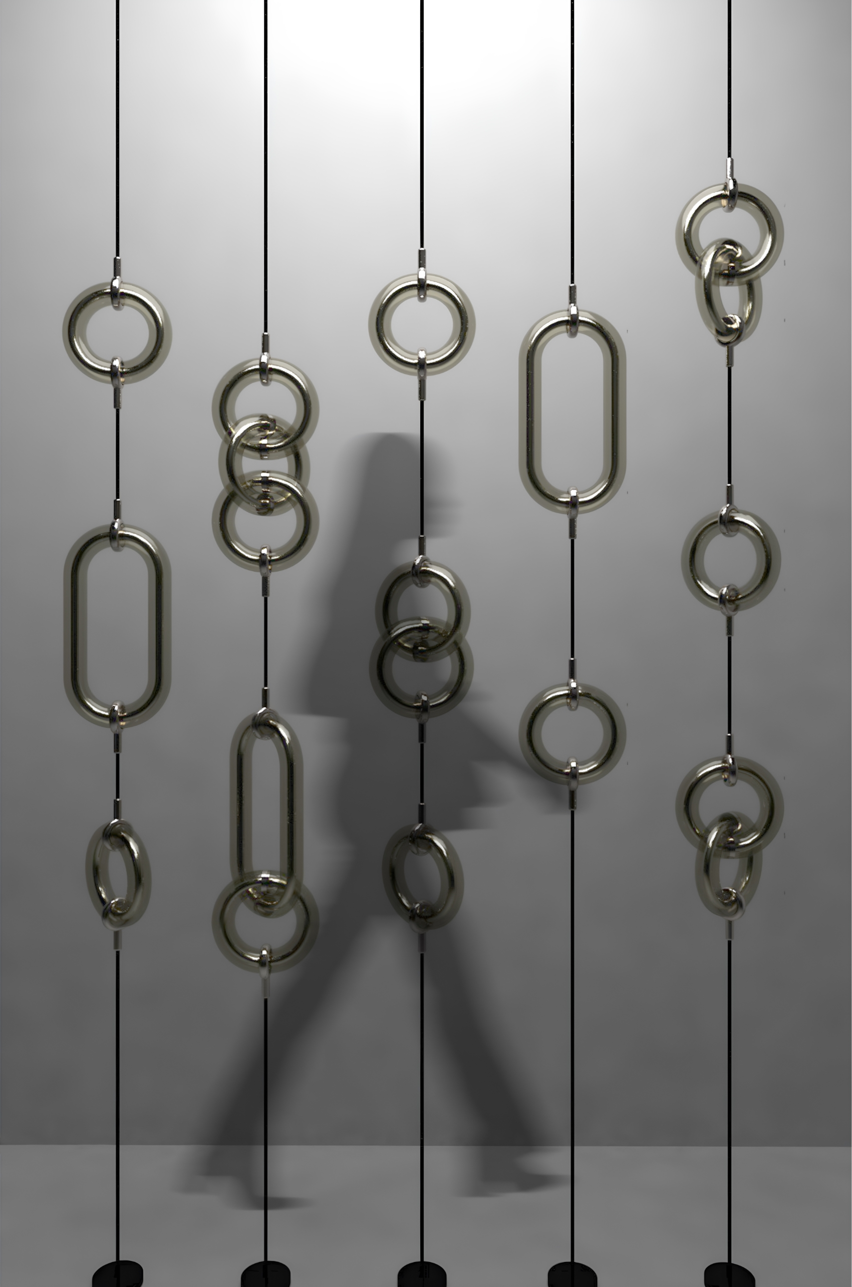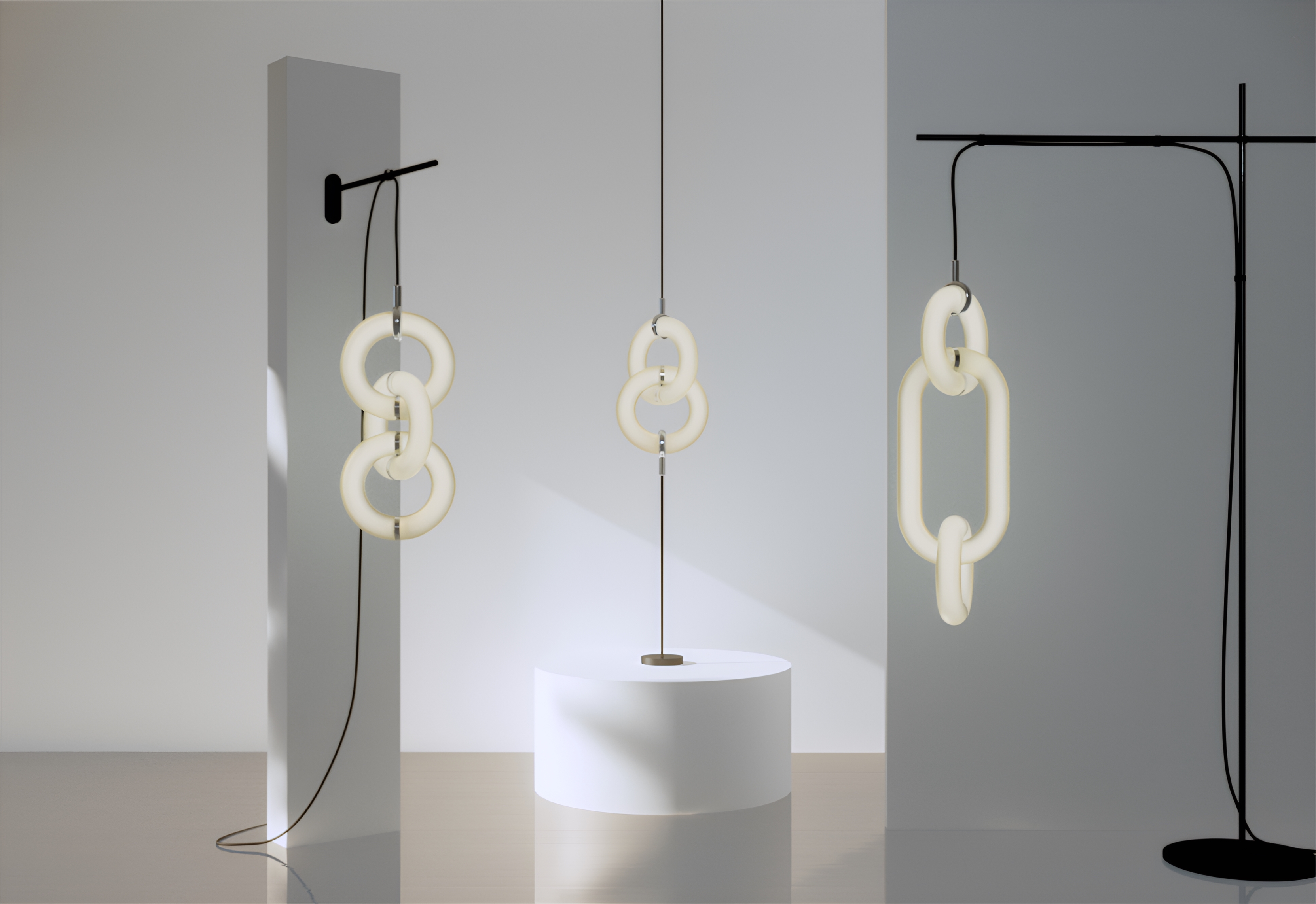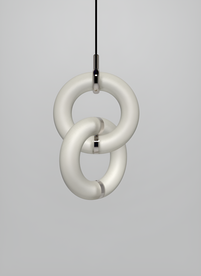 GLOO’s modular nature allows it to adapt across scales and settings. It can expand in length, shift in form, and be mounted in multiple ways: suspended as a pendant, fixed to a wall, stretched floor-to-ceiling, or positioned on a stand. Users are free to reconfigure their lamp over time, adding or rearranging rings without replacing the whole system. This sense of playfulness is intrinsic to its identity: light becomes dynamic, and personal, inviting ongoing interaction.