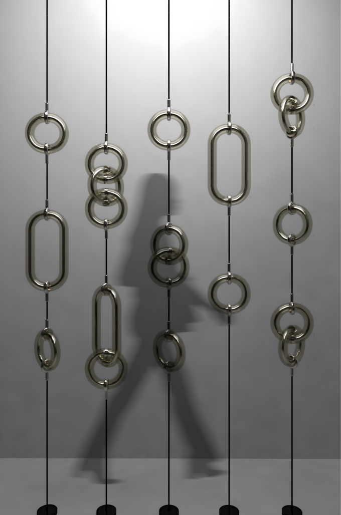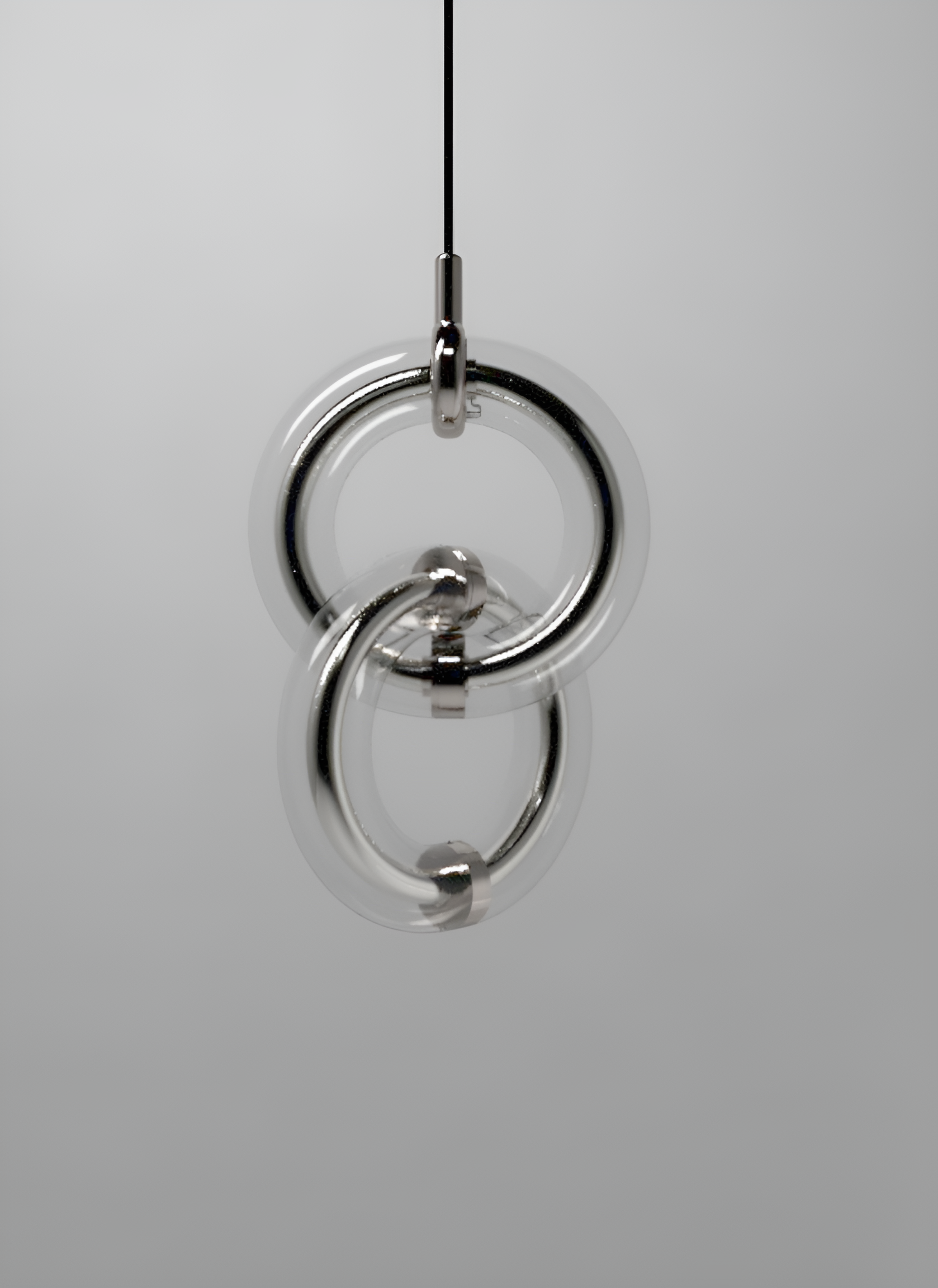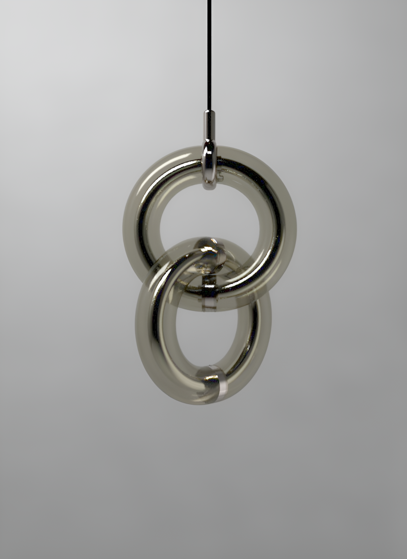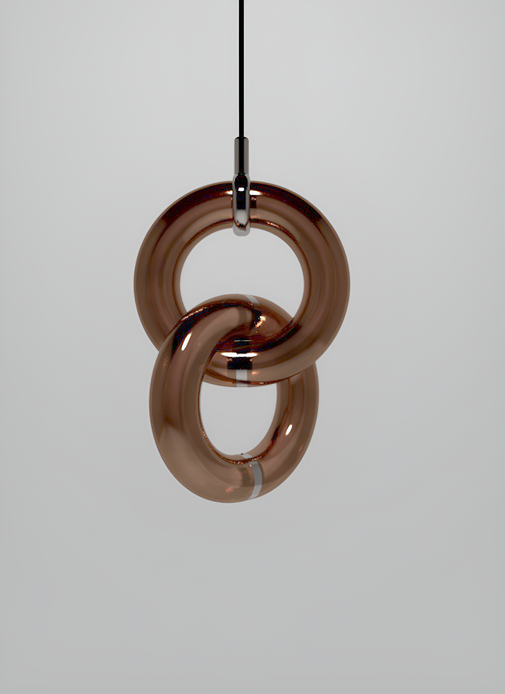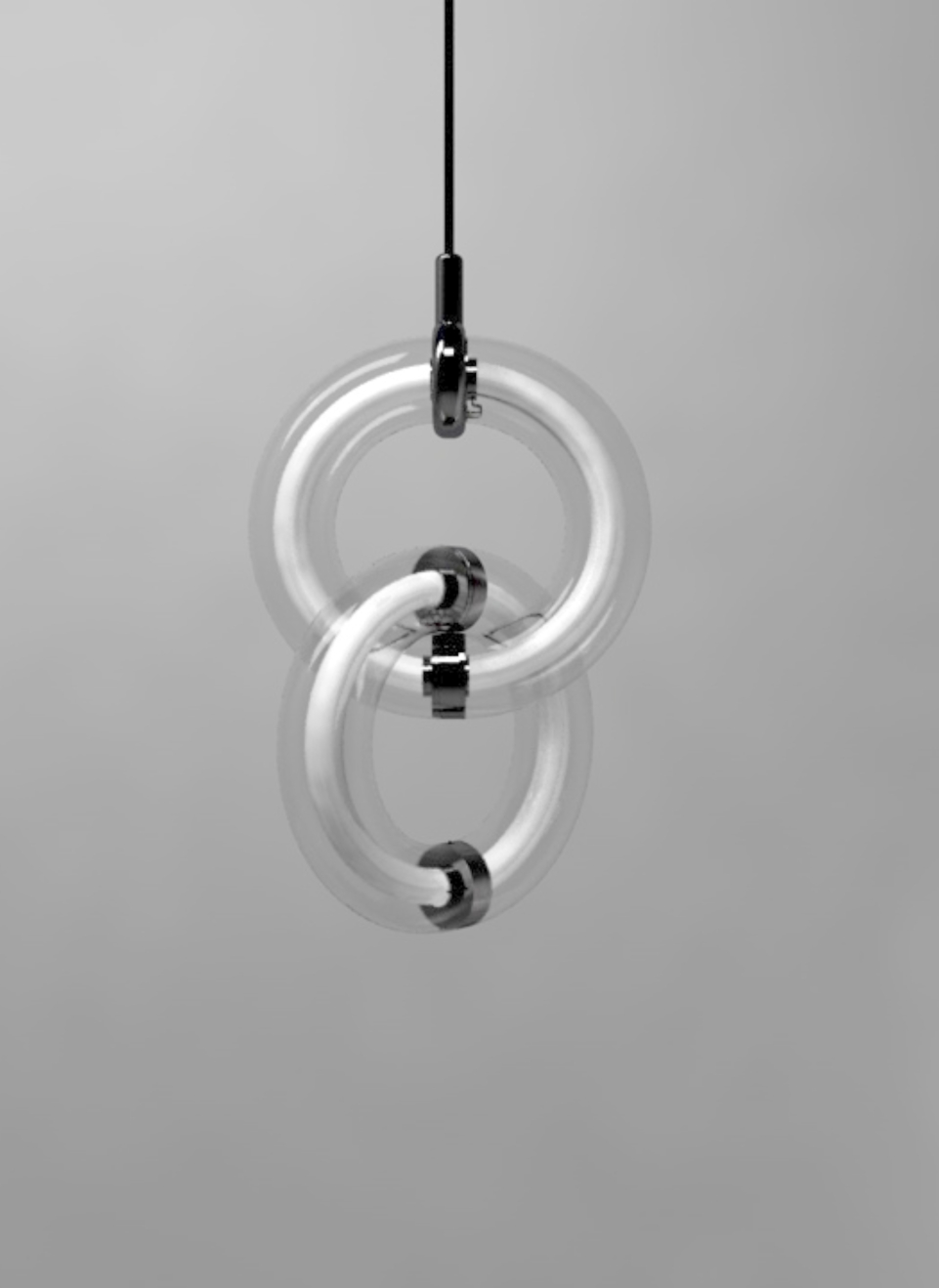 Each Light Ring is composed of a glass outer shell available in different colors and finishes, and an inner diffuser tube in either “Transchrome”, which shifts from metallic reflective to transparent when illuminated, or “Translucent-diffusive” for a softer glow.
