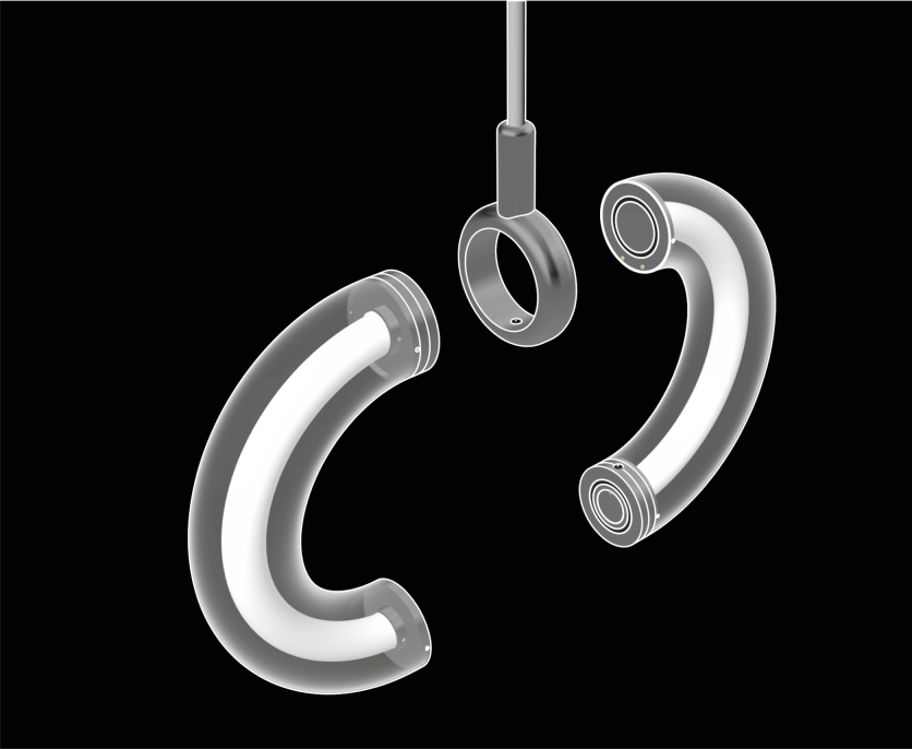 Entry DescriptionGLOO is a lighting system designed to evolve with its user and environment, based on a modular structure that allows continuous transformation. At its heart lies a simple yet versatile structure: a central Power Ring that connects to electricity, and modular Light Rings that attach magnetically, creating a seamless flow of energy without visible wiring. Each Light Ring consists of two halves that switch ON when joined and OFF when separated.