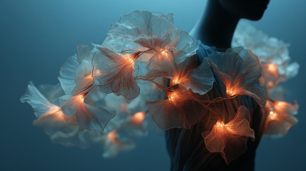 Entry DescriptionLuminara is a Wearable Lighting, This project explores a new dimension in lighting design by merging light with the human body. The wearable lighting piece transforms illumination from a static architectural element into a dynamic, living form that interacts with movement, emotion, and performance. Inspired by organic structures such as petals and ginkgo leaves, the design features translucent, flowing surfaces that glow from within. Each illuminated element resembles a delicate flower, with fine vein-like lines carrying light across the surface, creating a sense of vitality and growth. Unlike traditional garments, this piece is not only worn but also experienced as light itself—it blurs the boundary between fashion, art, and product design. It brings the poetic qualities of lighting into direct dialogue with the body, allowing the wearer to become both participant and performer. The garment is designed to be fully interactive. Lighting responds to the wearer’s movements, producing flowing animations as the body moves. This wearable lighting project redefines the role of light: It is no longer confined to objects, spaces, or installations. Instead, it becomes an extension of the human body, alive with expression and emotion.