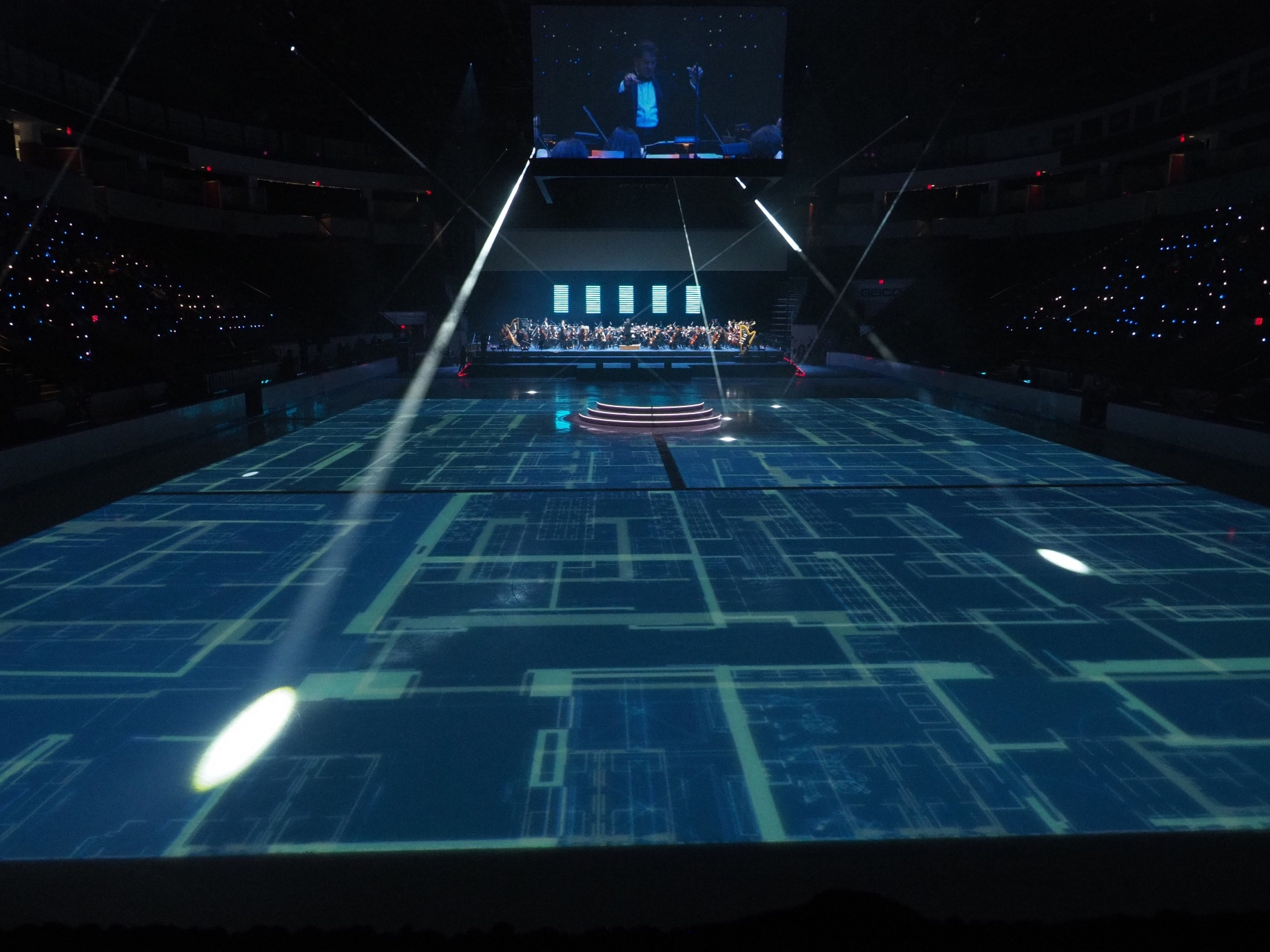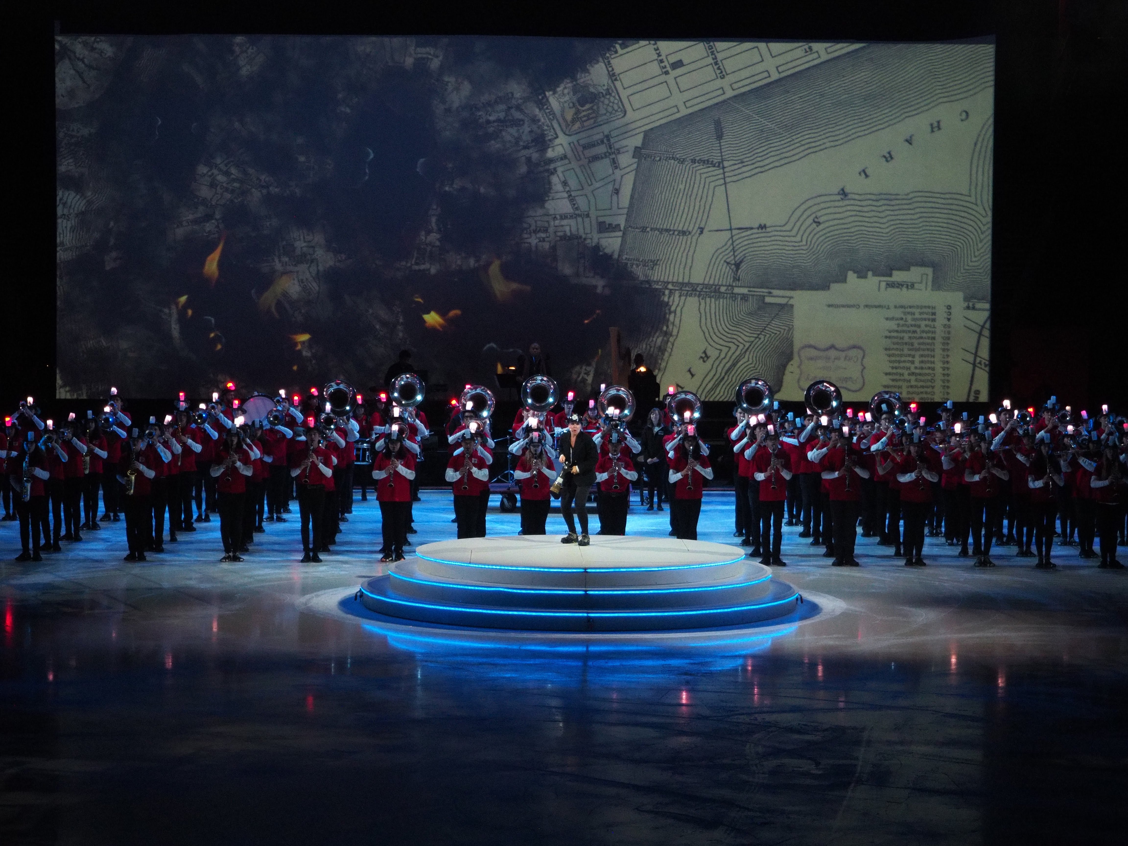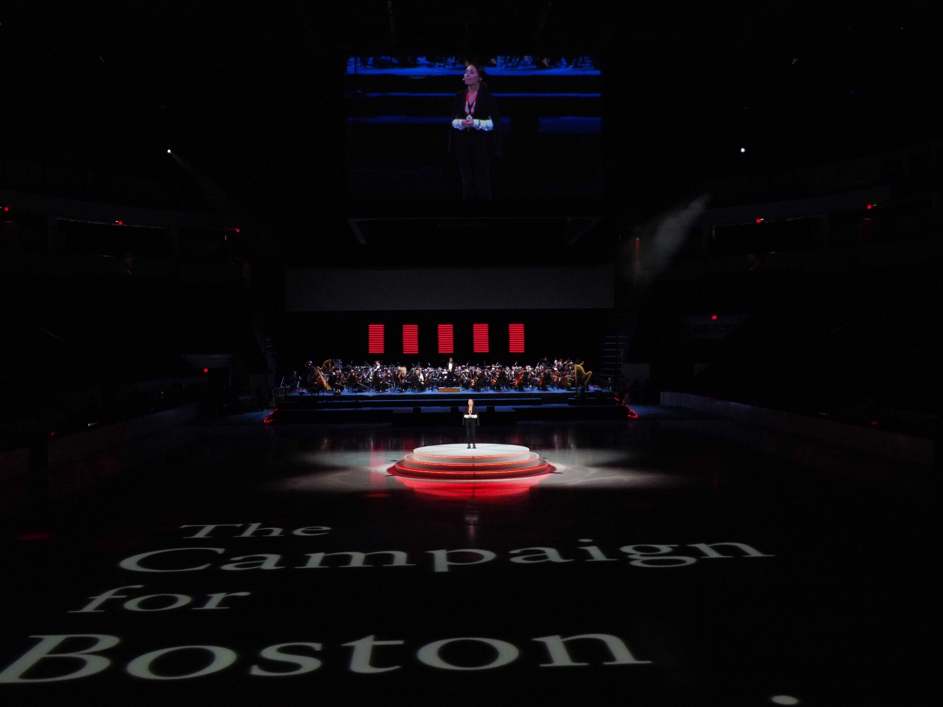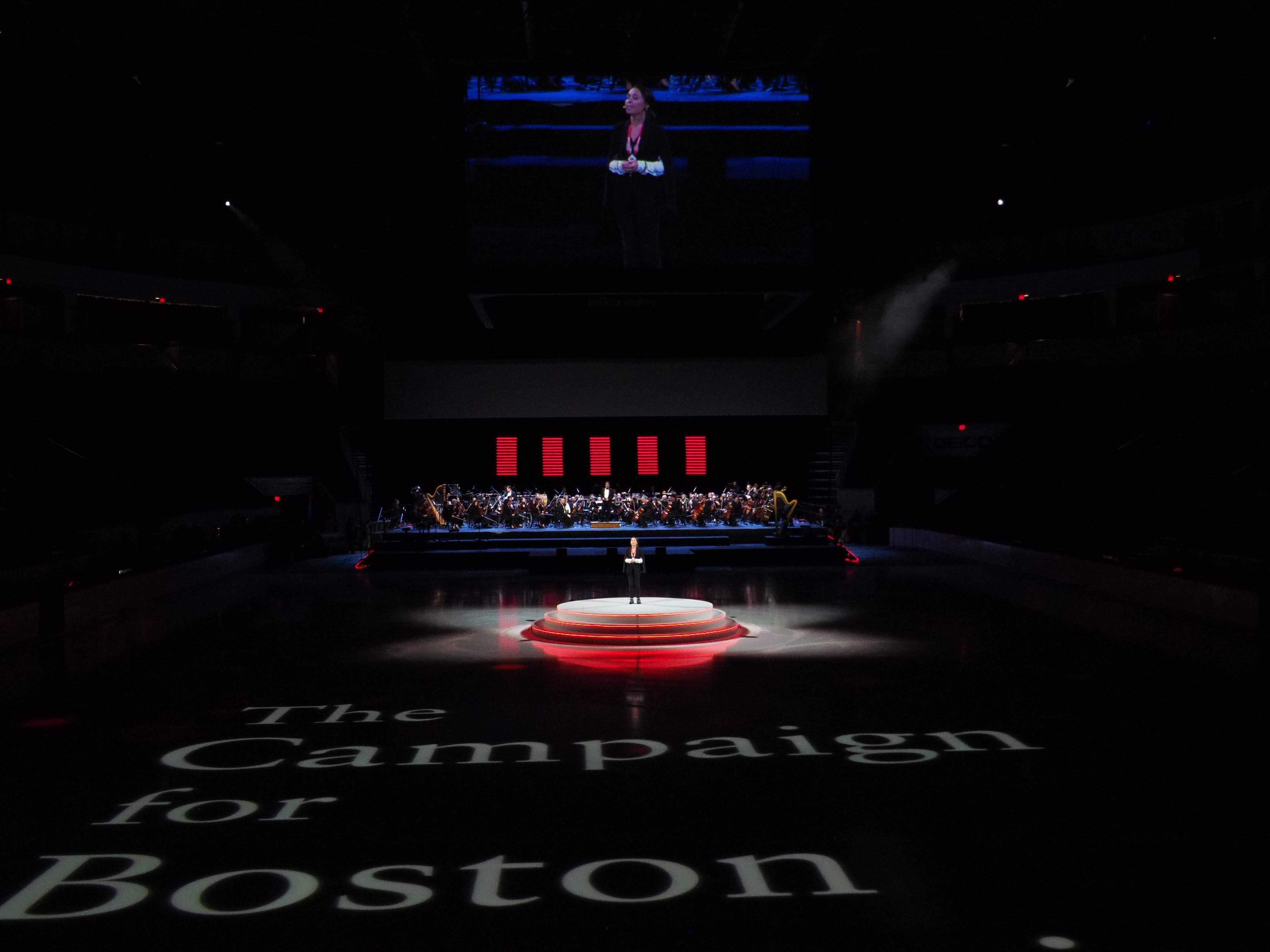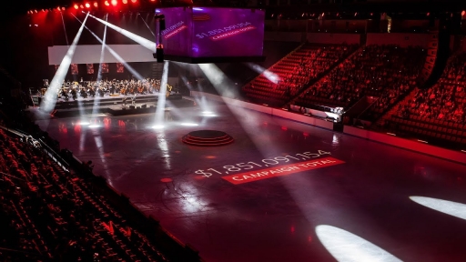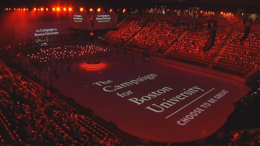 Entry DescriptionA celebration of raising over $1.85 billion Boston University held a ceremony complete with ice skating, aerialist, singers, historians, celebrities, and with added flair the Boston Pops to orchestrate the entire evening. This was an integrated lighting production fully emerged with video projections. With well over 500 lighting units, the celebration was an experience never to be forgotten. Utilizing wireless control, scenic units rolled across the subzero floor with full color changing ability, linear tilt/zoom controlled units lined the perimeter of the ice rink and were used to illuminate the skaters while video projections mapped across the entirety of the icy floor, and a mix of profile and wash moving lights helped enhance the atmosphere, energize the audience, front light the stage, and add texture throughout the space. In addition, the design was enhanced with an array of lighting tubes creating a background of visual interest behind the Boston Pops orchestra; feeding color, shape, and intensity through an illuminated background of pixel mapping tubes. A diverse design of multiple sources unified to create a vivid, colorful theatrical display of BU's successful campaign.