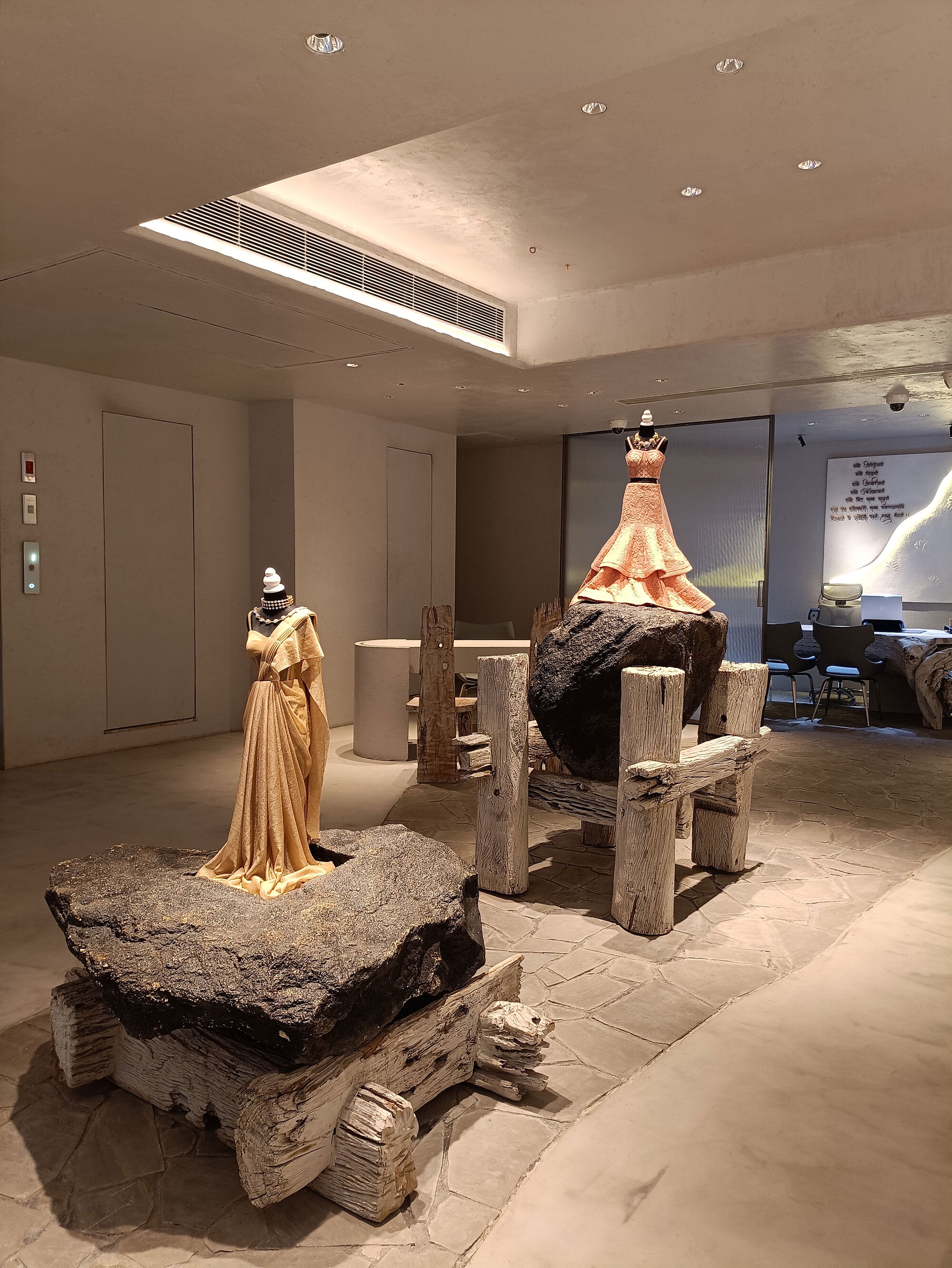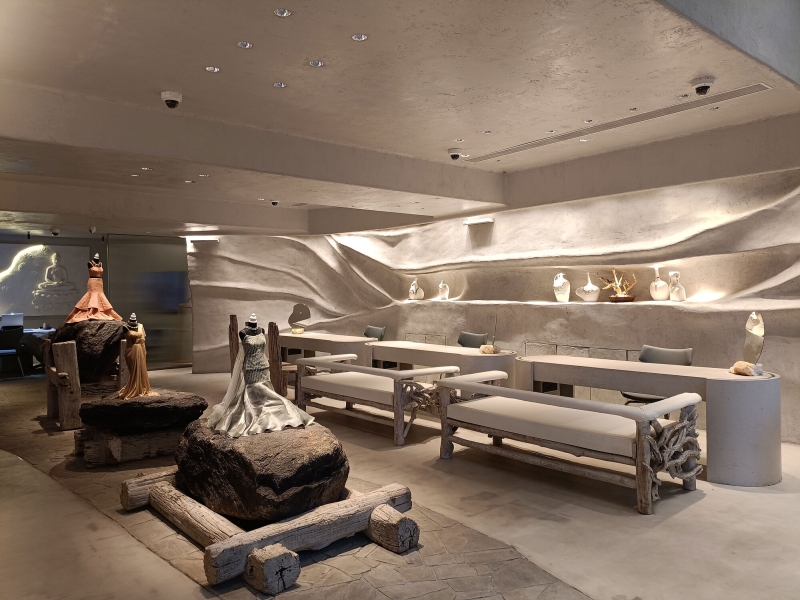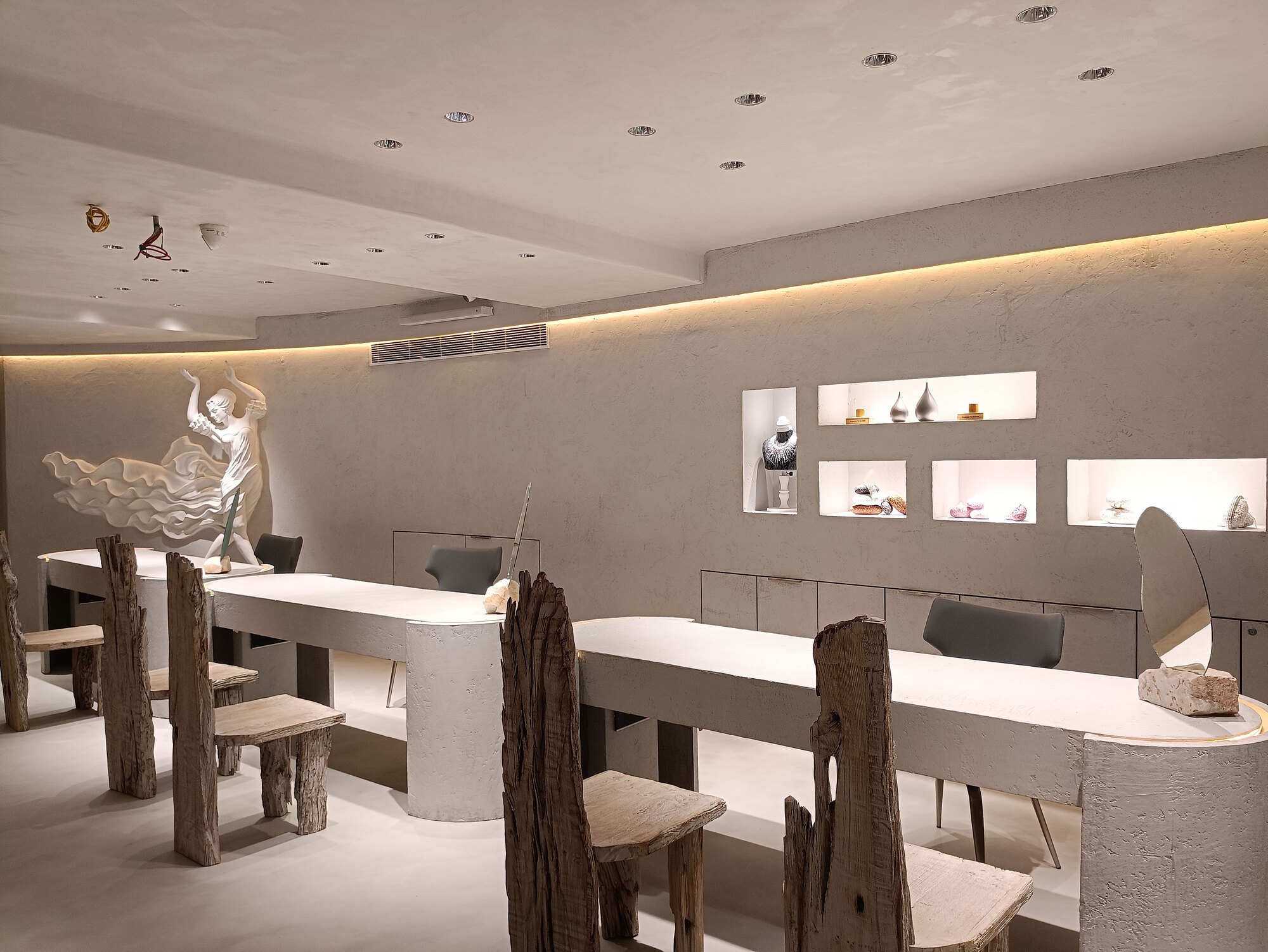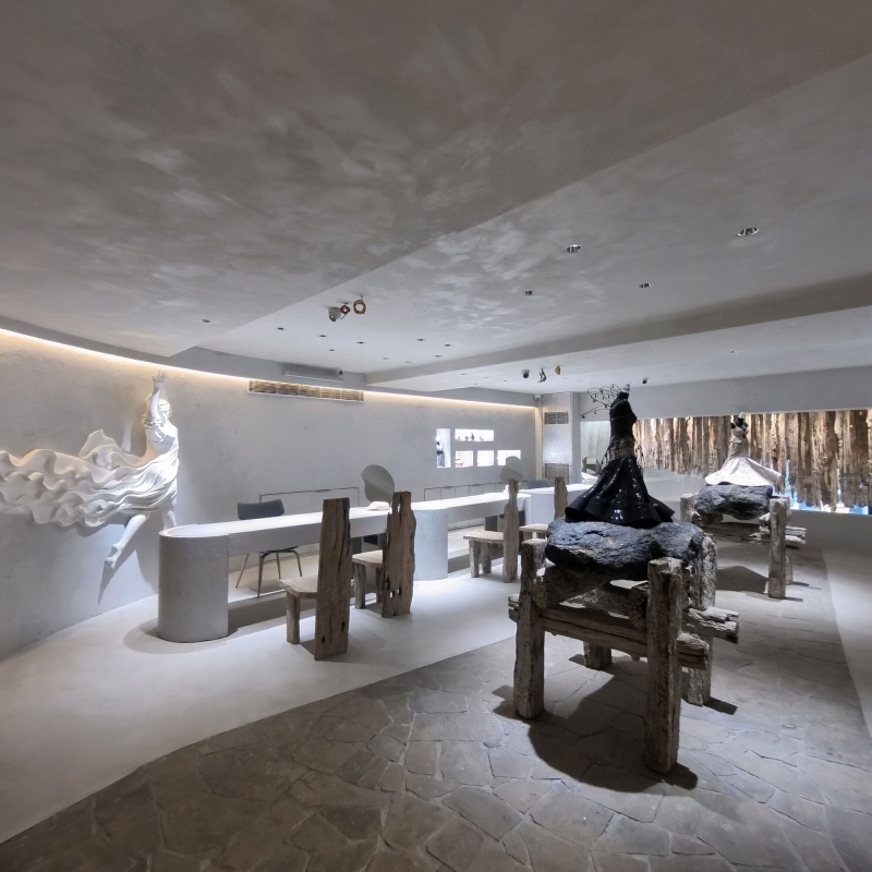 Entry DescriptionLa Solitaire’s design unfolds like a rediscovered diamond mine—raw, mysterious, and radiant. The space follows organic cave-like curves where light acts as a delicate excavation tool. Warm grazers gently wash over the undulating walls, revealing textures that seem carved by time. Niches emerge as shimmering vaults, illuminated with high CRI, glare-free precision that lets every diamond breathe brilliance. Recessed spotlights on mannequins and counters add sculptural depth, while sleeper-wood logs softly grazed by tiny downlights evoke the earthy rhythm of a mine.