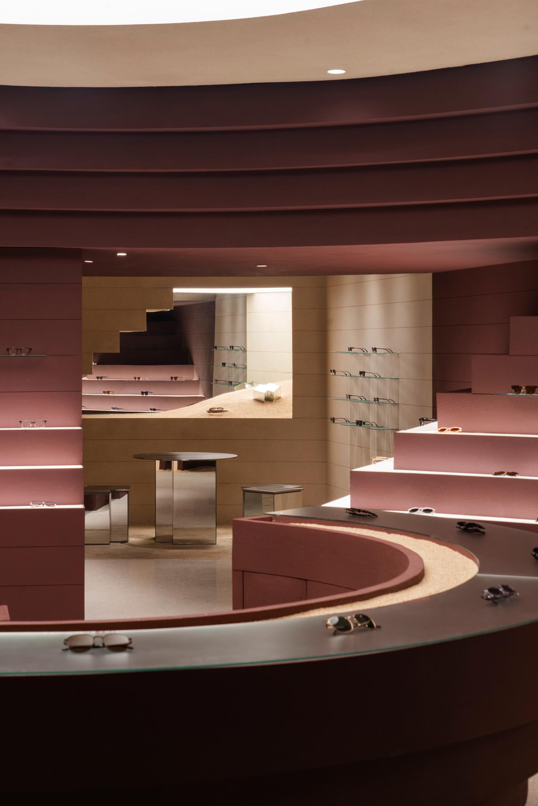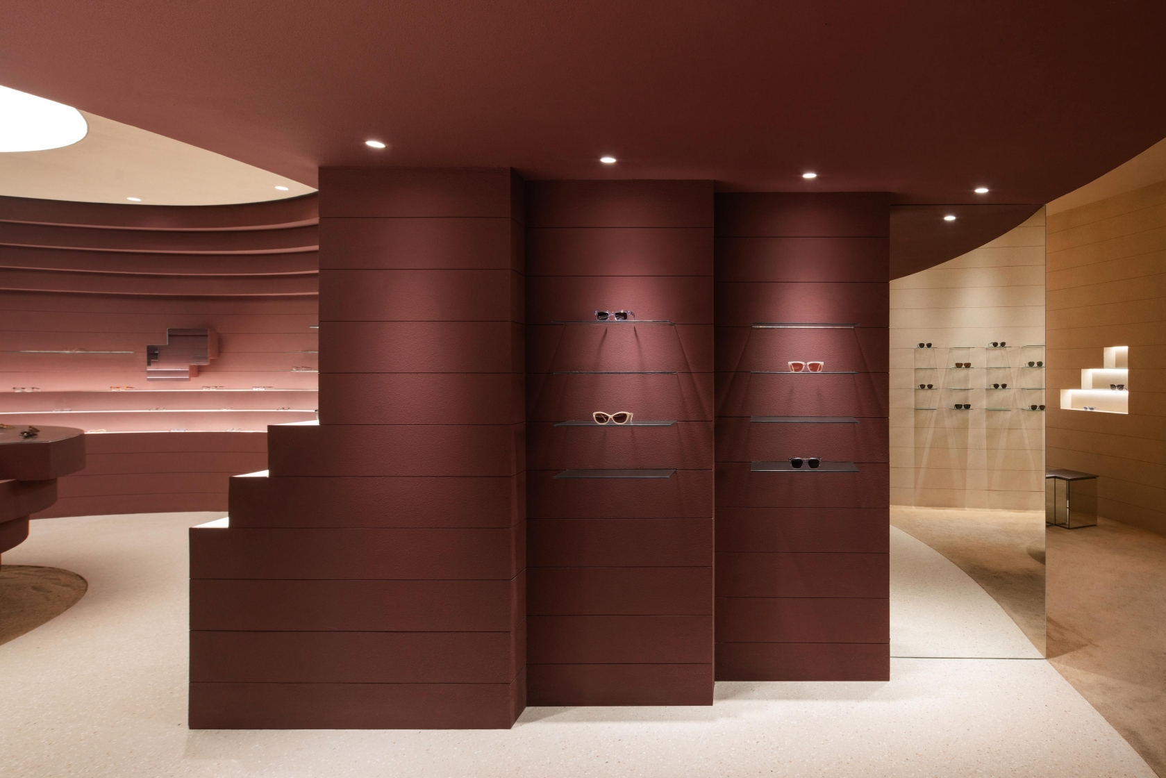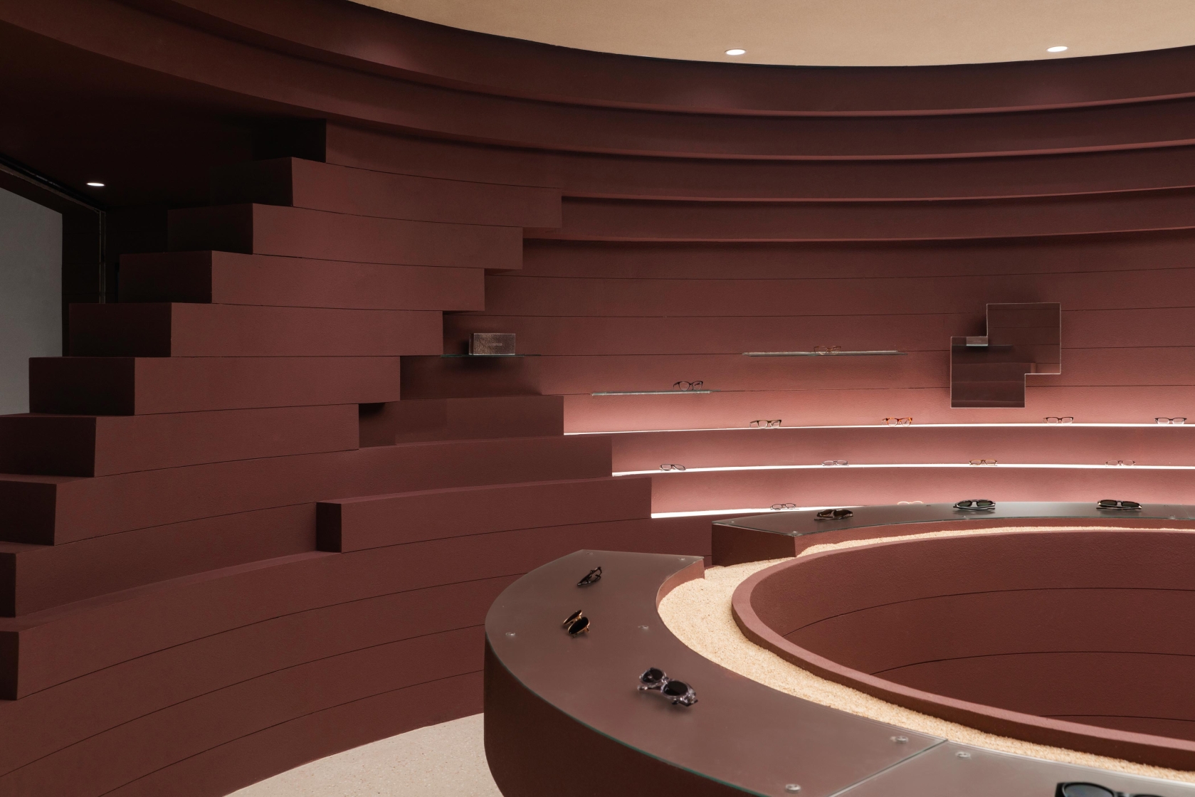 A layered scheme blends recessed ambient washes, pinpoint accents, and concealed linear grazers. These elements trace the store’s sculptural curves, carve depth into its concentric forms, and create a visual rhythm that moves seamlessly from architectural gesture to product display.