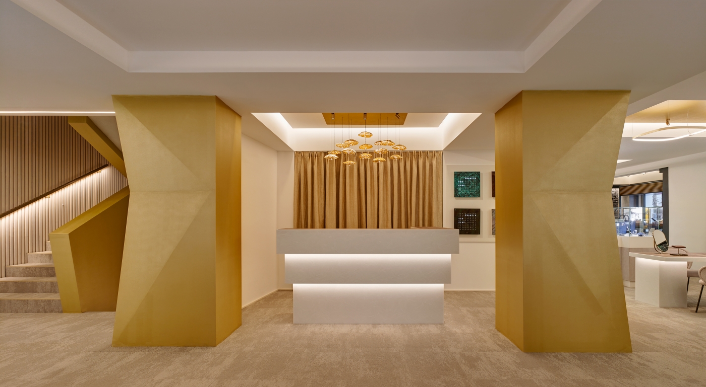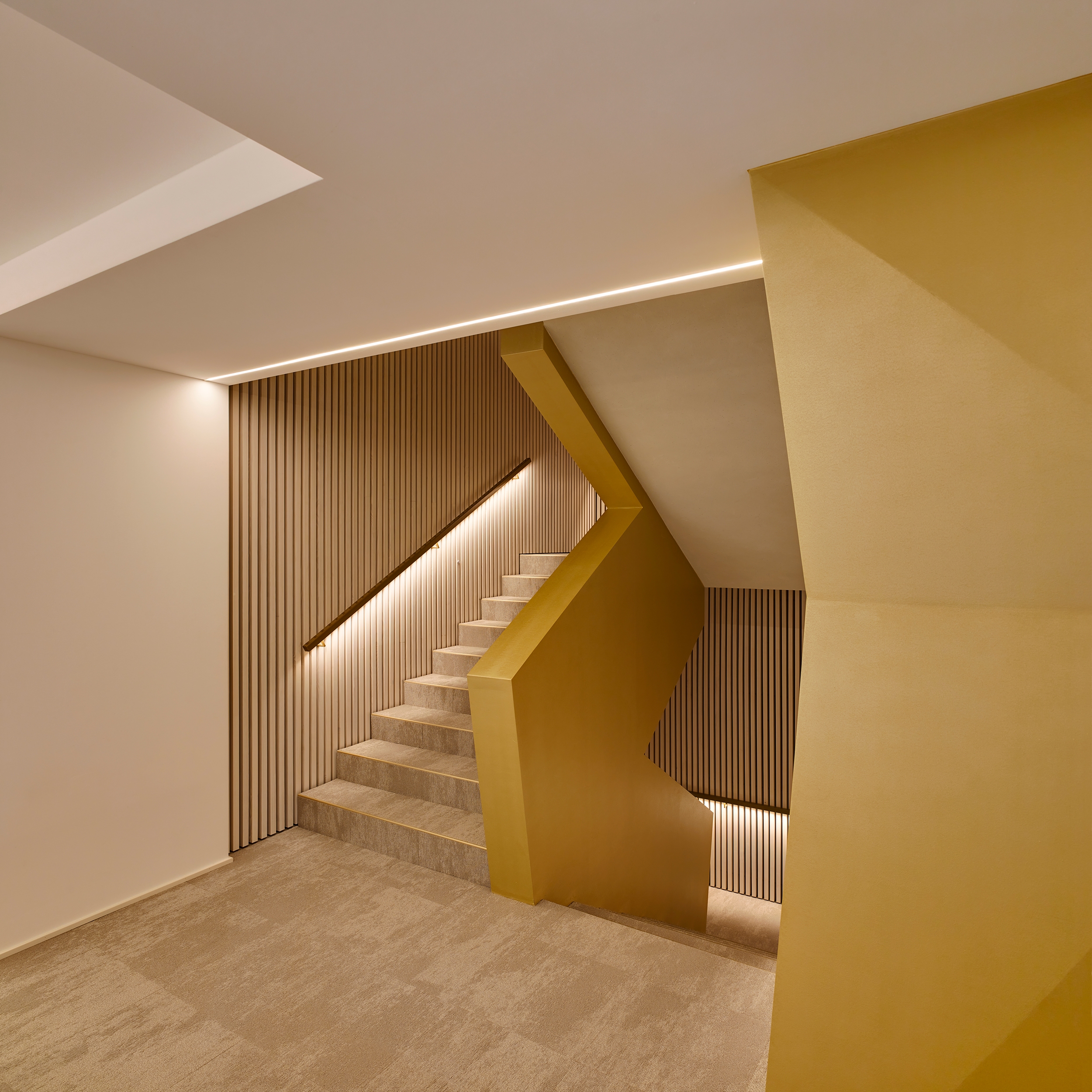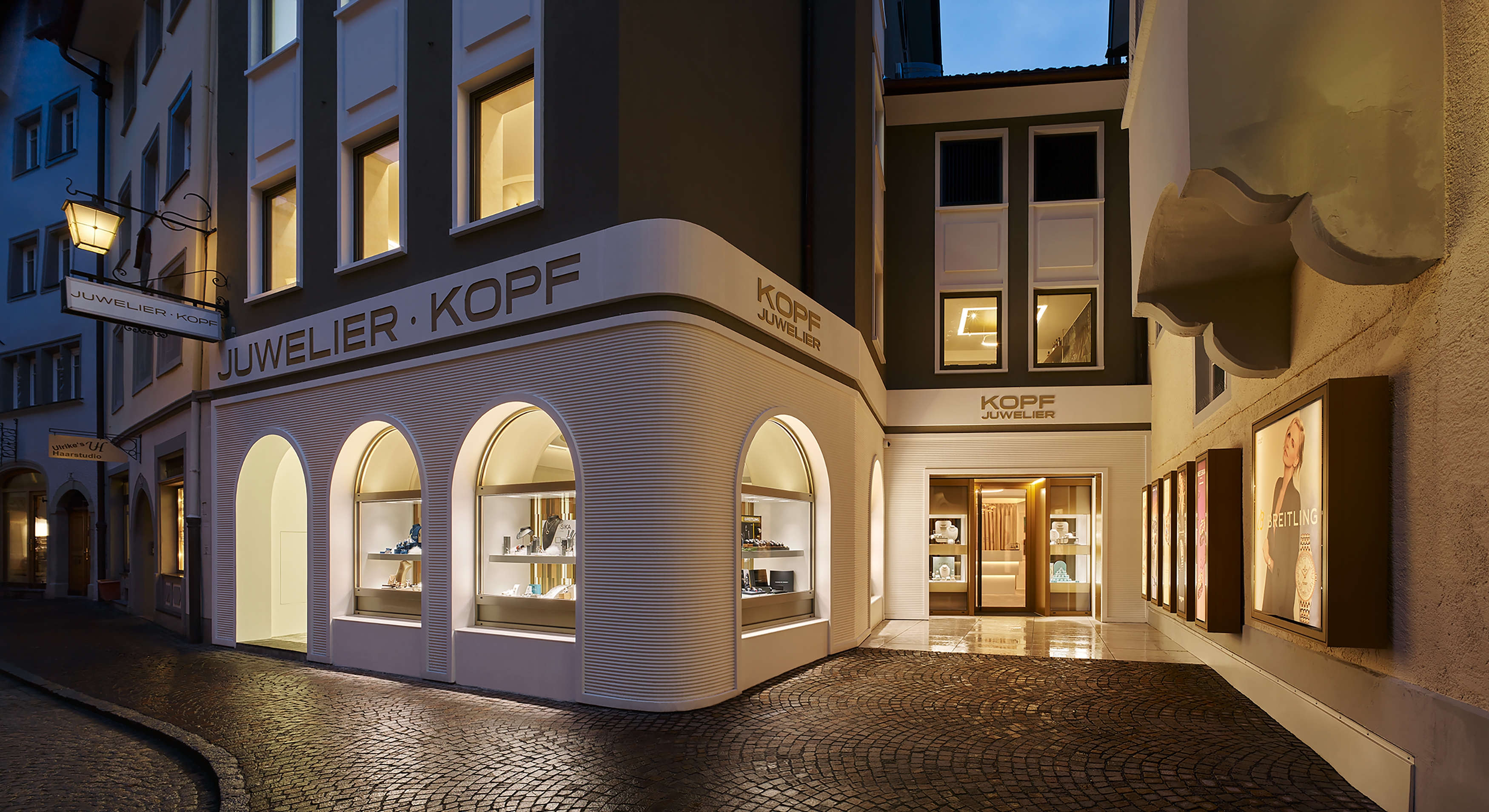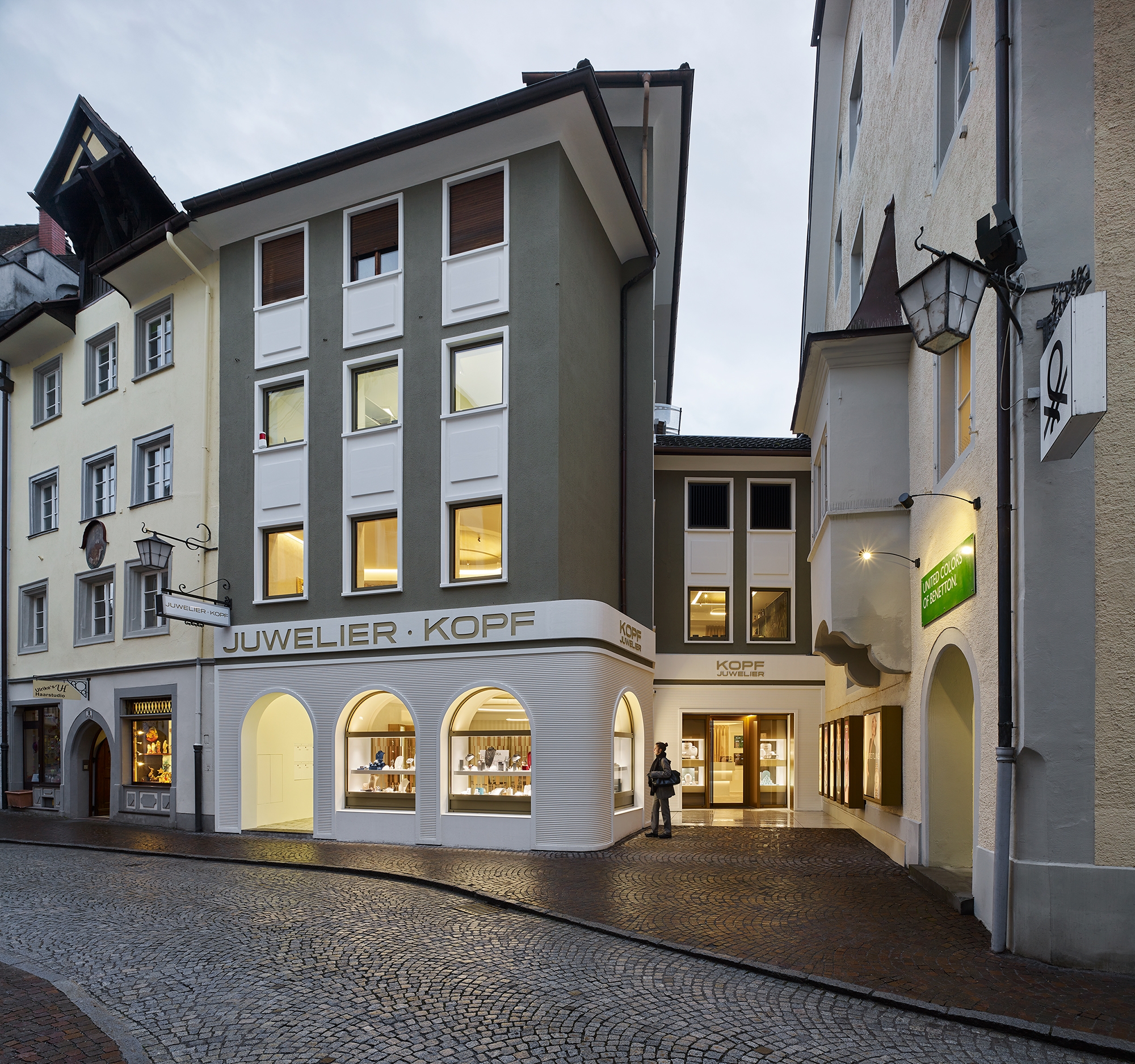 A historic town house in Feldkirch Austria, was converted into a modern jewelry store with great care and attention to detail. Zones requiring high demands for light are created. With a combination of direct and diffuse light, the lighting does justice to the space while discreetly being integrated into the outstanding architecture. In the showcase and exhibition vitrines, lighting fixtures are concealed, yet variable and highly precise to illuminate the exquisite products. The materials and colors of architecture and lighting merge as one identity.