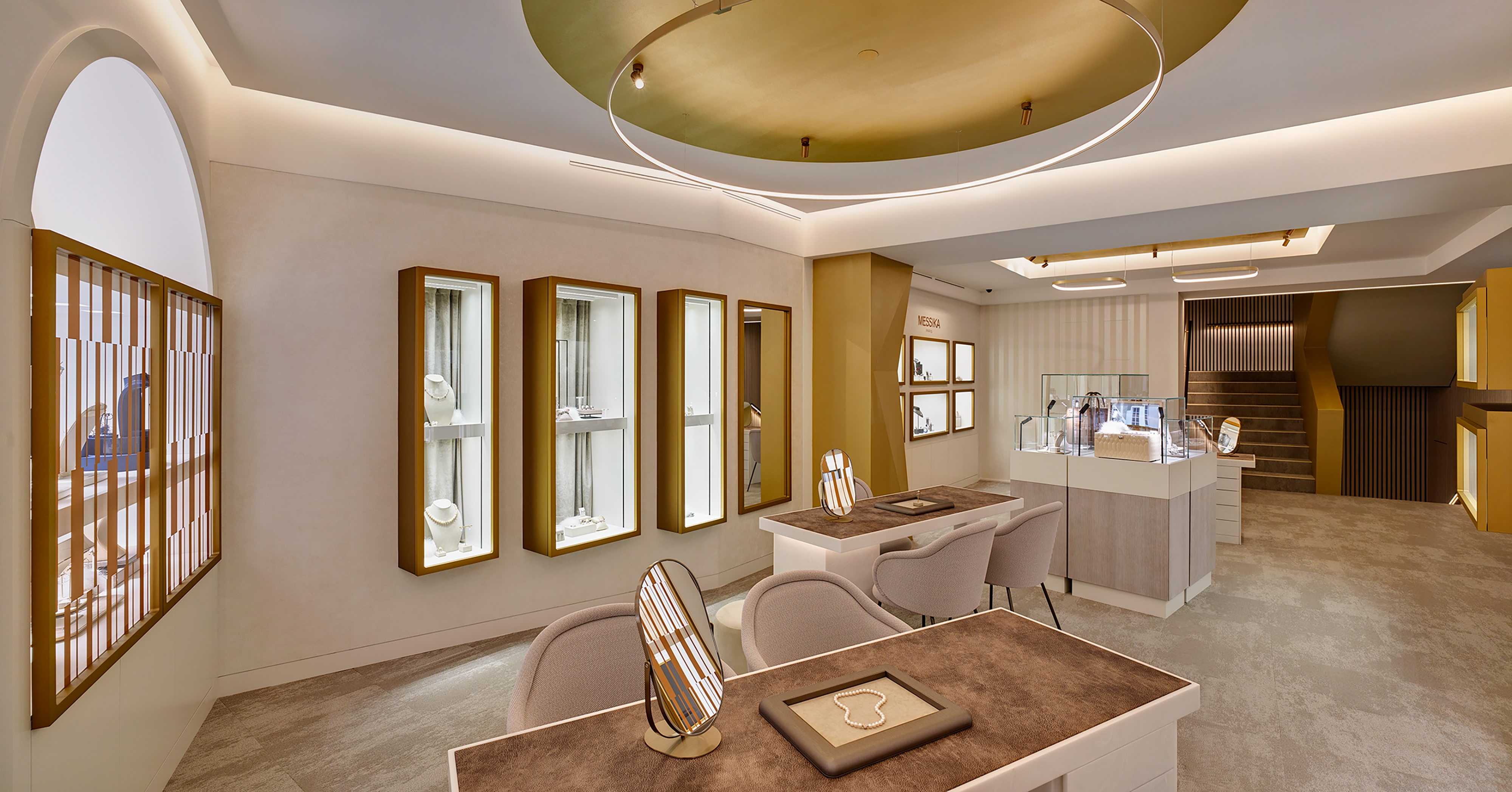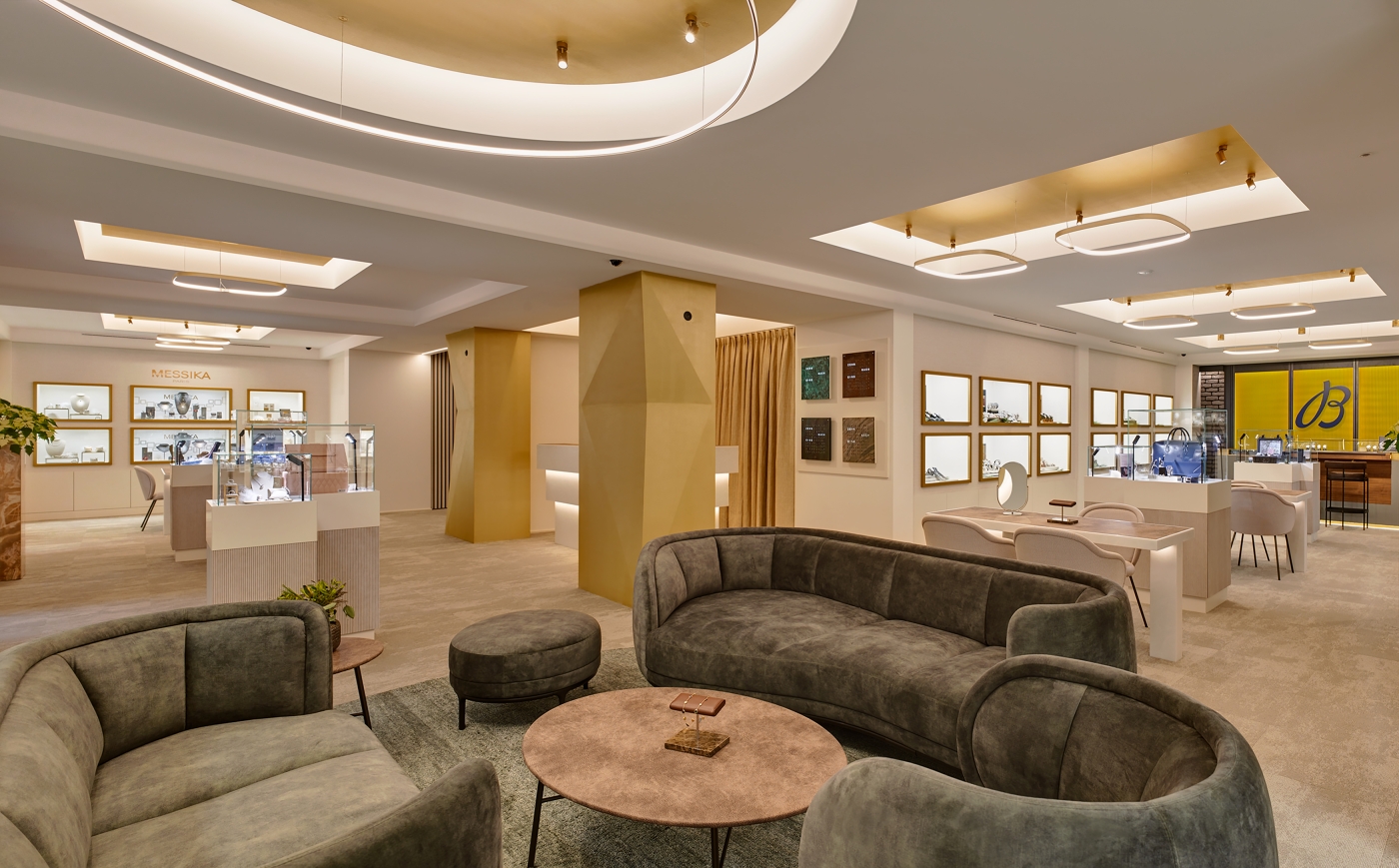The planning included the lighting of all central areas of the jewelry store, including the sales floor, the elegant display cases, the shop windows and an integrated bar. The latter was designed as an atmospheric retreat - a so-called “black box” - that invites customers to enjoy a drink in a relaxed atmosphere. Each of these zones was equipped with a specific lighting solution that optimally supports its respective function and immerses the room in a luxurious ambience.