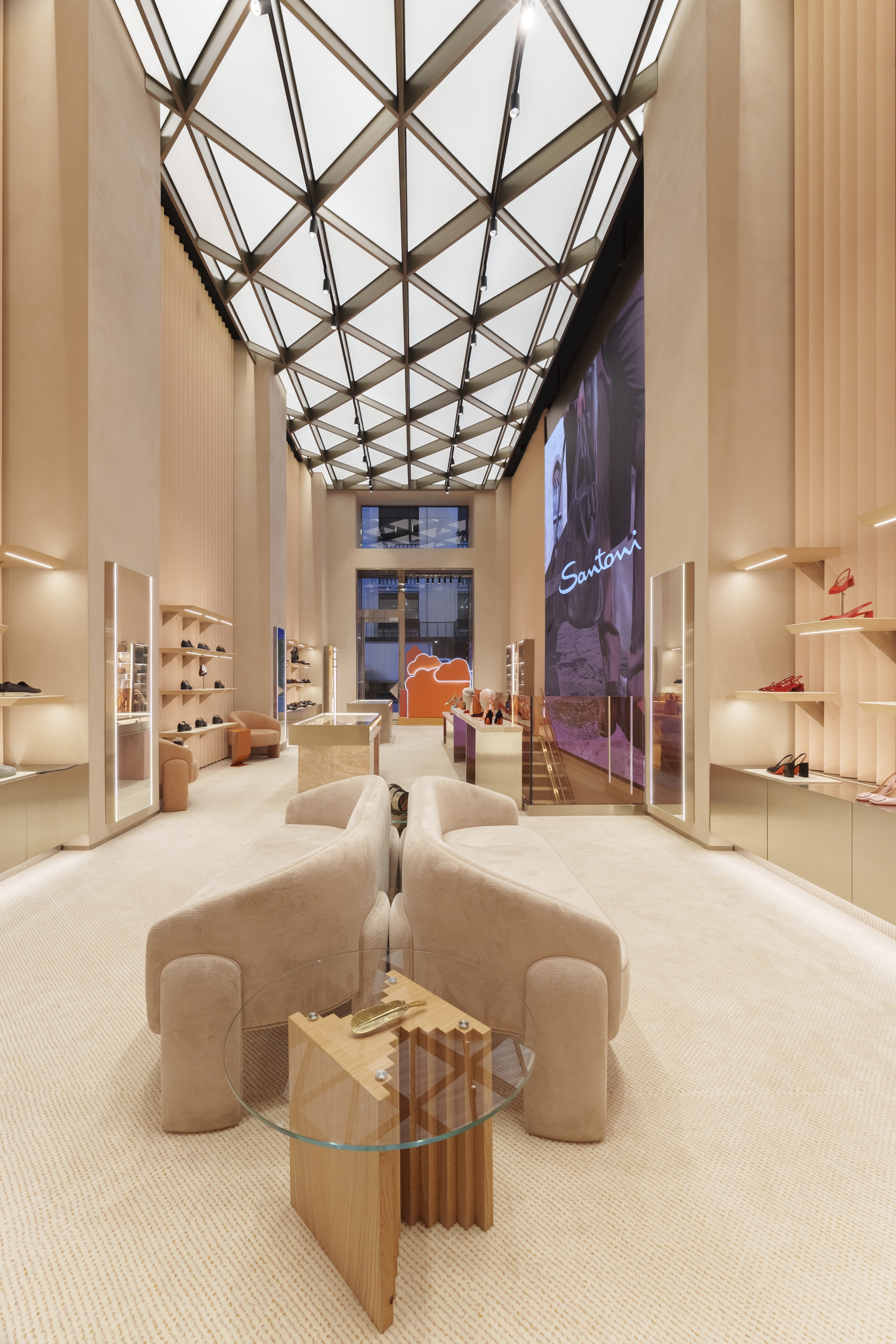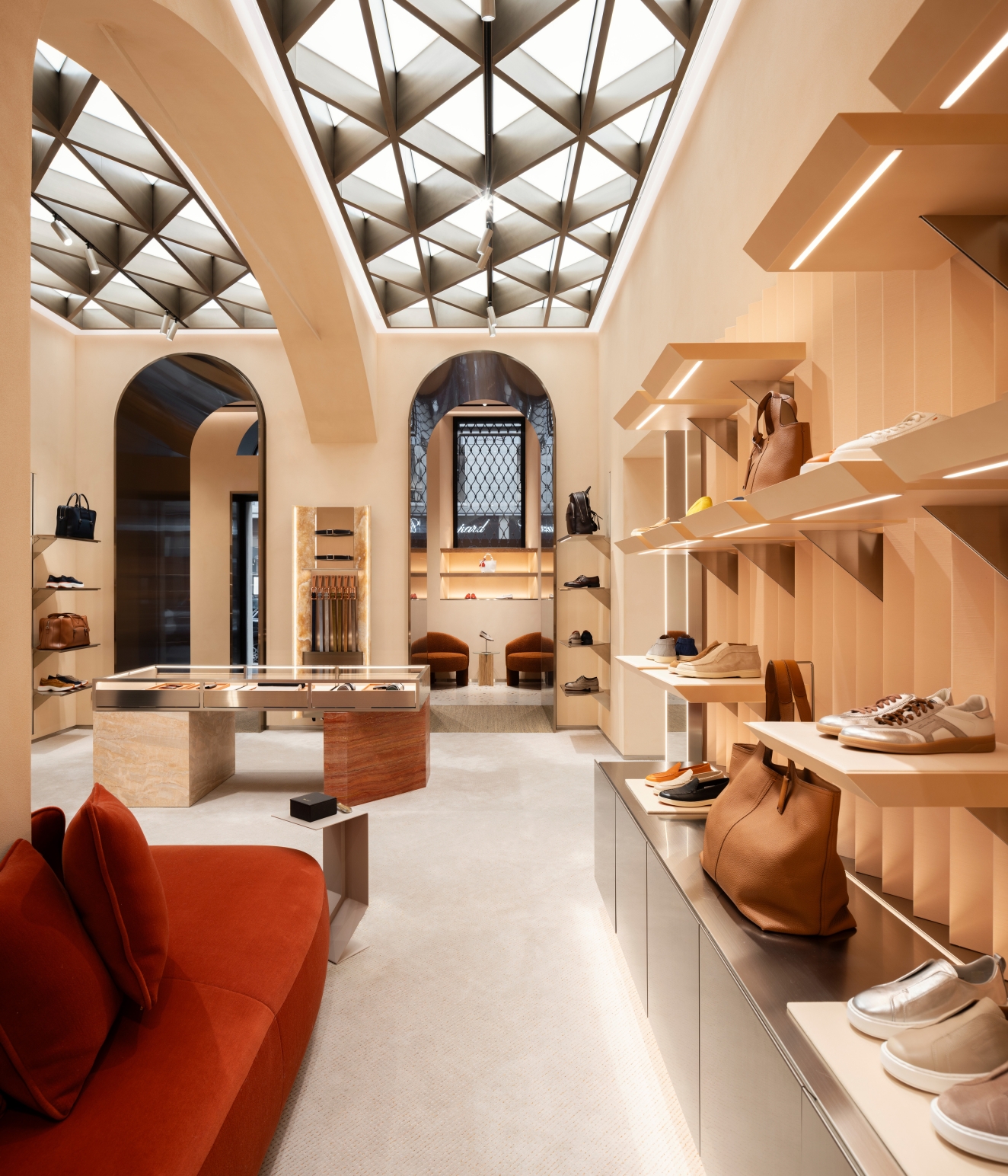 Entry DescriptionWe have designed a double-height space where vertical illuminance was conceived as a genuine layering of light articulated through different types of illumination.The first type is general lighting, where a thin luminous ceiling, nestled between the exposed beams, simulates uniform daylight, generating a warm, and welcoming atmosphere. Immediately below, adjustable LED spotlights with optics that concentrate the visually compact light beams, featuring a high CRI, are positioned on a multi-phase track recessed into the ceiling beams to faithfully render the natural colours of the products.A comfortable ambient lighting and a product accent lighting merge in perfect harmony, embodying the brand's spirit of innovation while maintaining the connection to the artisanal tradition that defines it.Small luminous profiles with controlled optics have been integrated, underneath the shelves. These elements coexist with the architectural geometries, thus clearly articulating the visual hierarchies of the space and comfortably directing attention.The entire system was designed with controlled dimmable LED technology, ensuring artificial light complies with natural light, with the possibility of creating various lighting scenarios throughout the day within the showroom.In this way, the design is enhanced, and maximum results are guaranteed with minimum energy consumption.